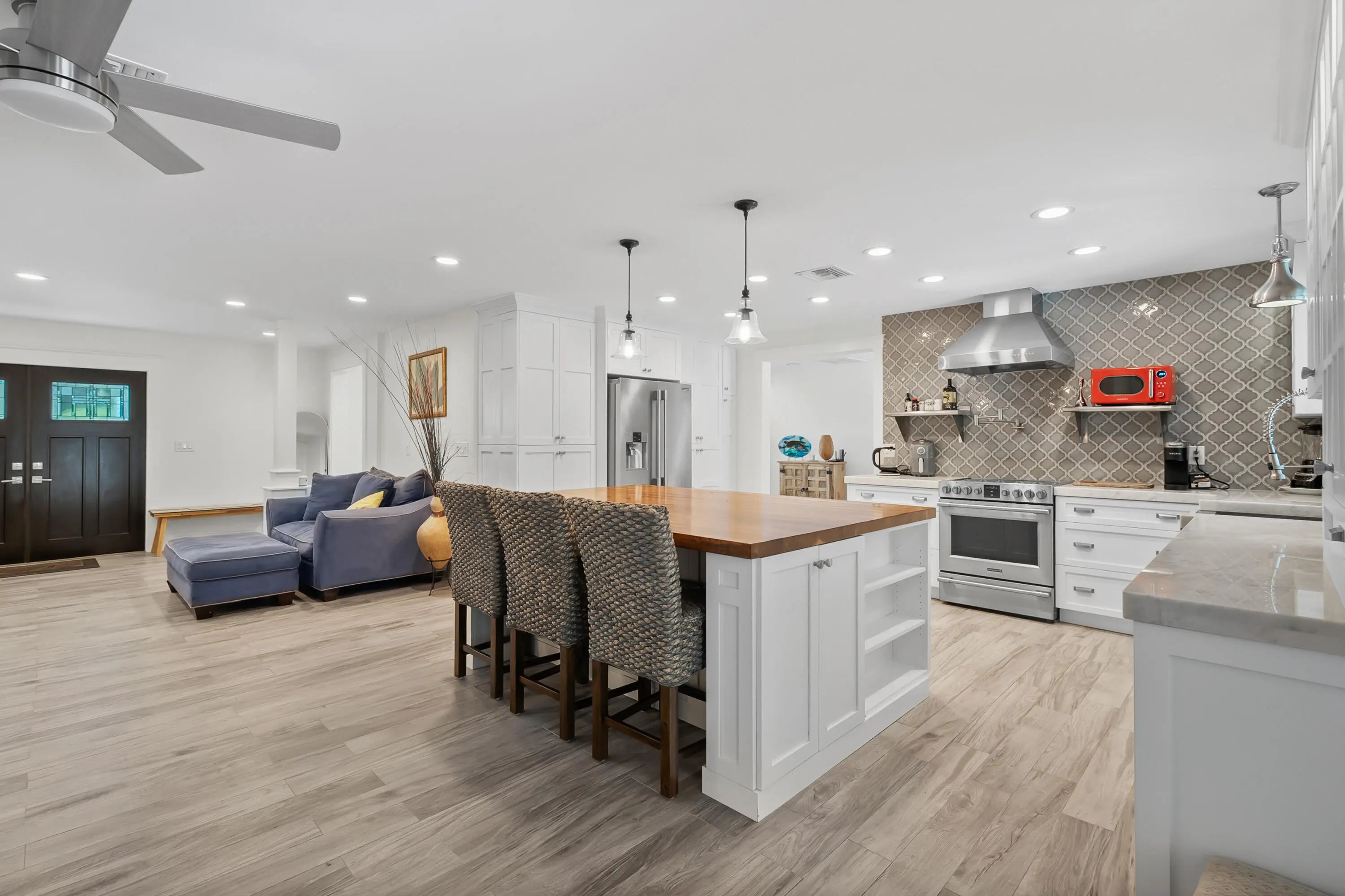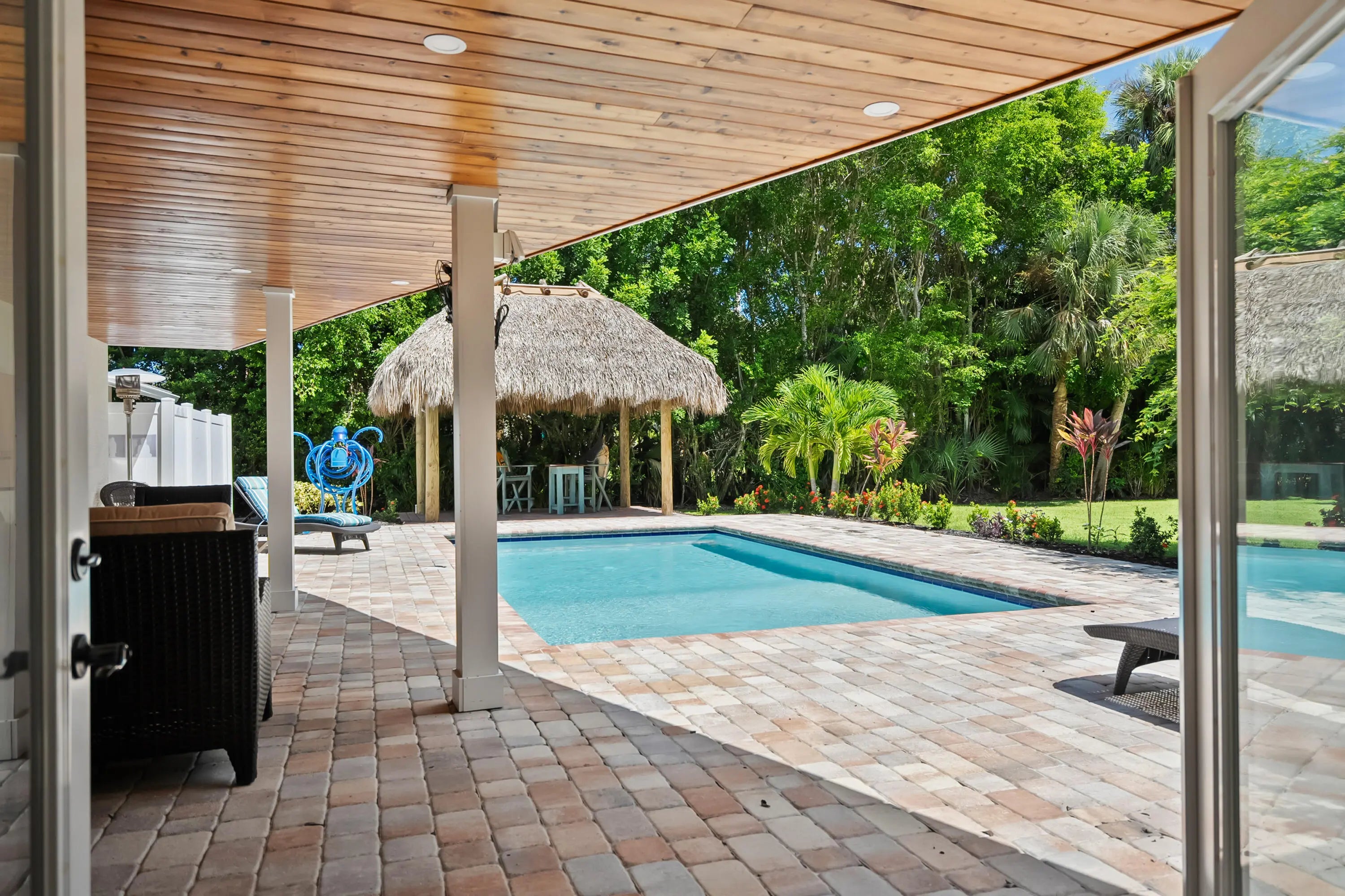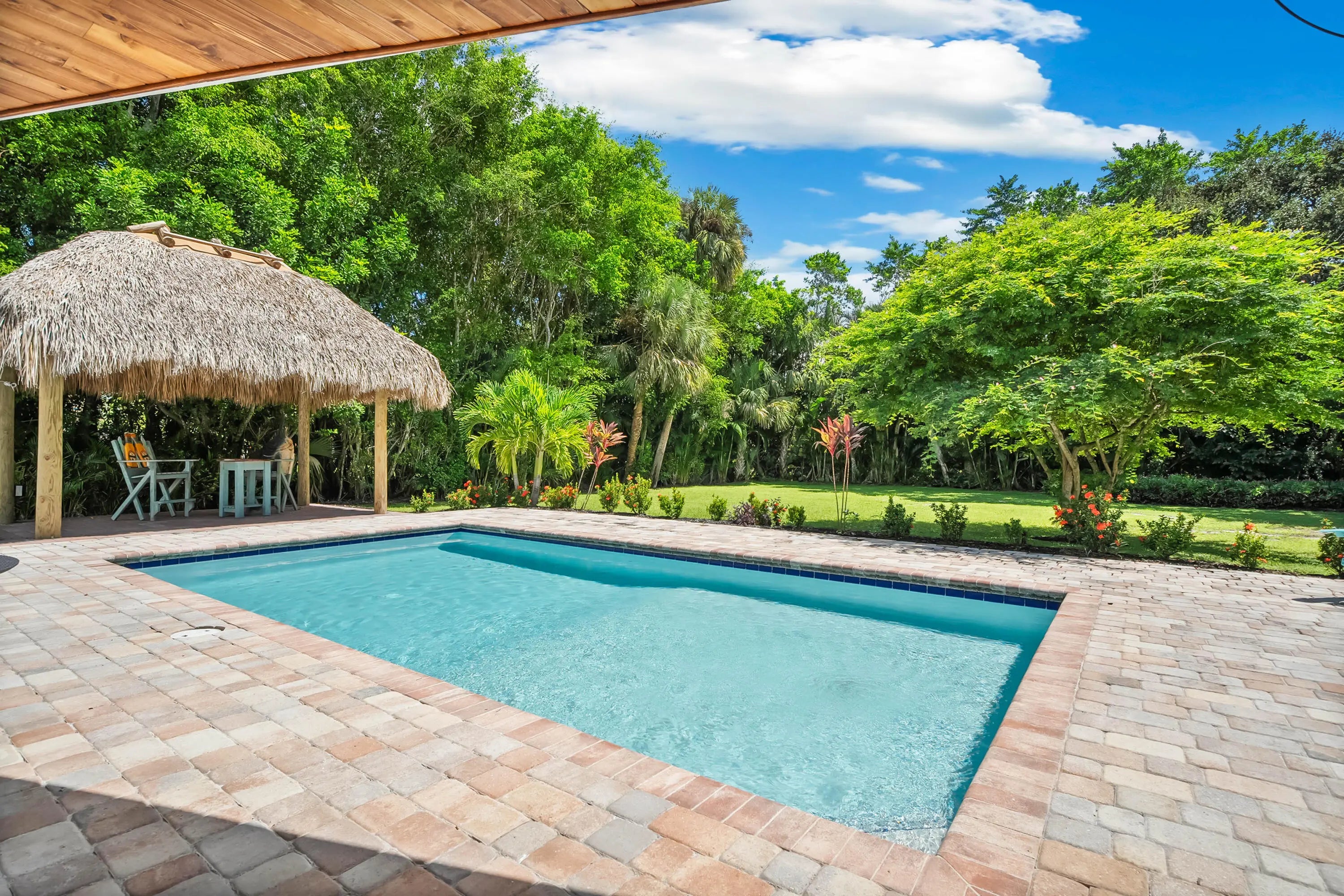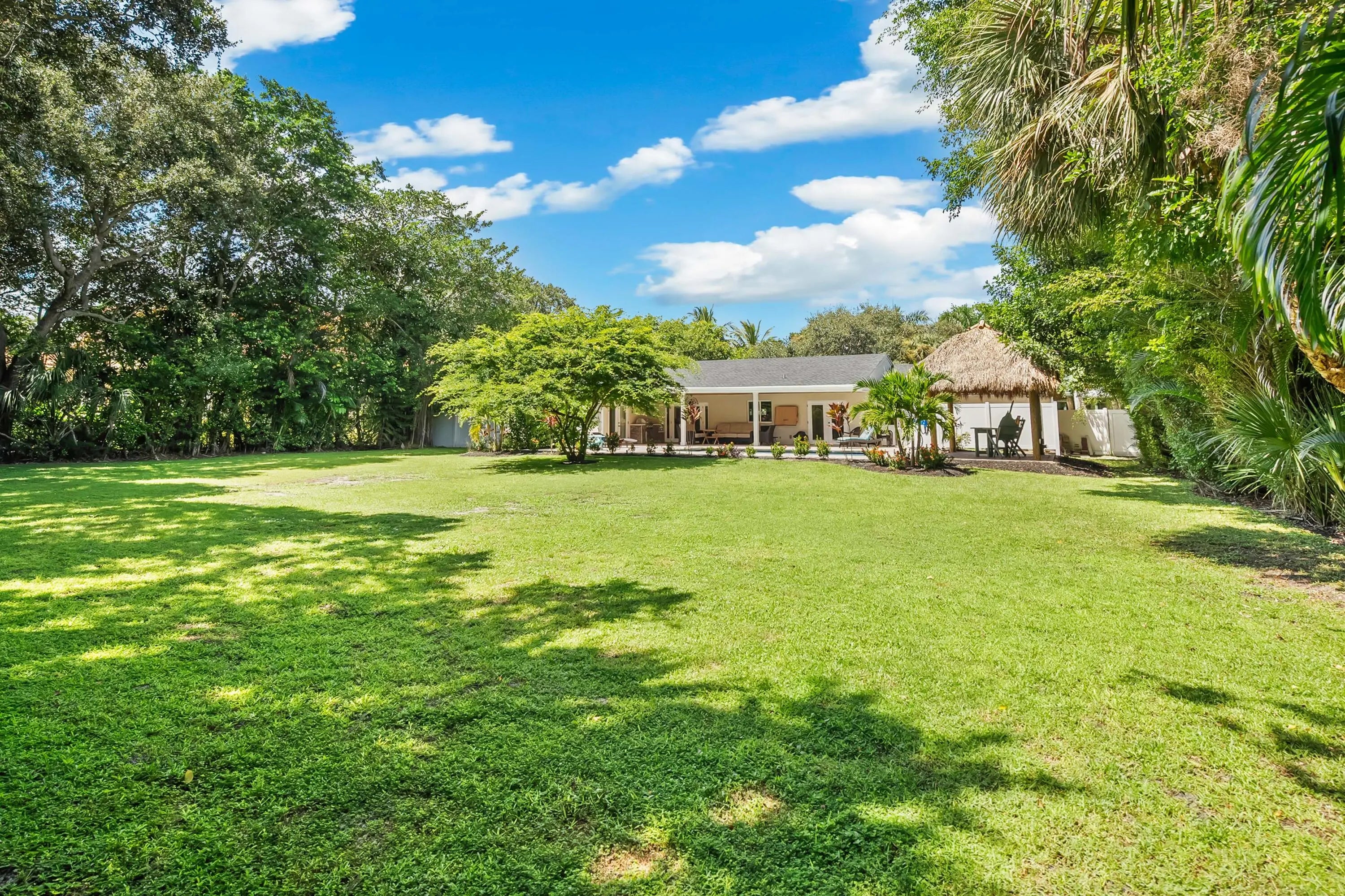 Unique opportunity in Sewalls Point featuring lush, mature landscaping and a serene setting in the sought-after Mandalay neighborhood. This very modern, upgraded three-bedroom, two-bath home sits on a large lot offering exceptional privacy in a secure, established location.Recent improvements include a new septic system, custom tiki hut, and an expansive outdoor kitchen and barbecue area ideal for entertaining. The property also features a circular paver driveway, private pool, and well-designed outdoor living spaces. New plantation shutters are featured throughout, with furnishings negotiable. Ideally located between the Intracoastal Waterway and the St. Lucie River, and just minutes from beaches, boating, and dining.
