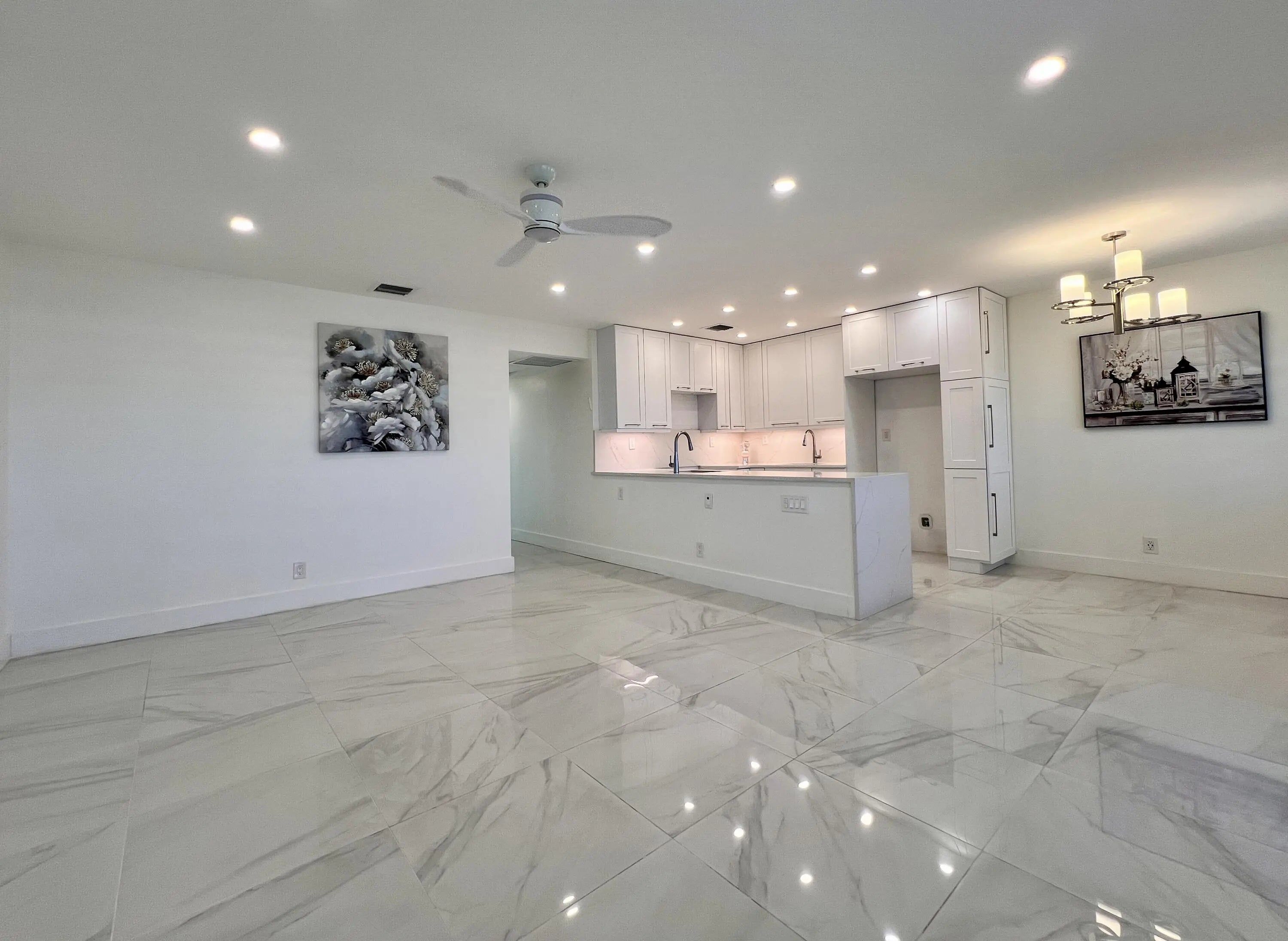 SPECTACULAR IN 55+ CENTURY VILLAGE! Gorgeous & Completely Updated Water View Two Bedroom /Two Full Bath Located In The Convenient Bedford Section. Updated & Open Kitchen, Designed To Maximize Space, Features White Cabinets, Expanse of Solid Surface Counters, Large Island, and Two Sinks. Two Updated Full Baths. Water View Bedroom Suite W/ Ensuite Bath. Long Enclosed Lanai W/ Floor to Ceiling Impact Windows. Gleaming Tile Flooring Flows Throughout. Popcorn Removed From Ceilings. High Hat Lights In Living Area. Custom Designer Window Treatments. Impact Windows Front & Back. Fantastic Location Close to the Haverhill Entrance, Main Clubhouse, and the Somerset Pool! Century Village Is A Vibrant 55+ Community Centrally Located In Beautiful Palm Beach County, Florida! Enjoy Resort Style...