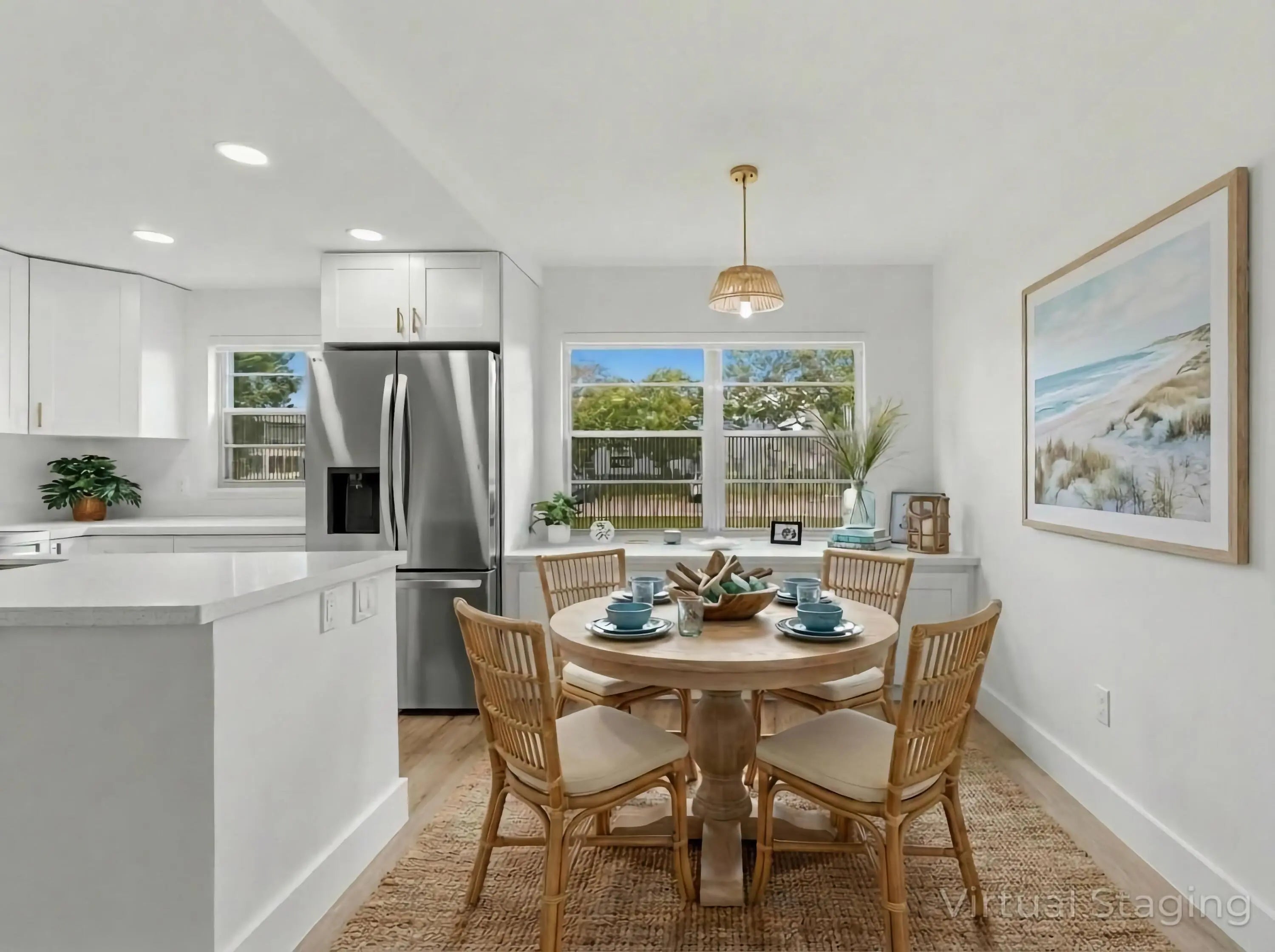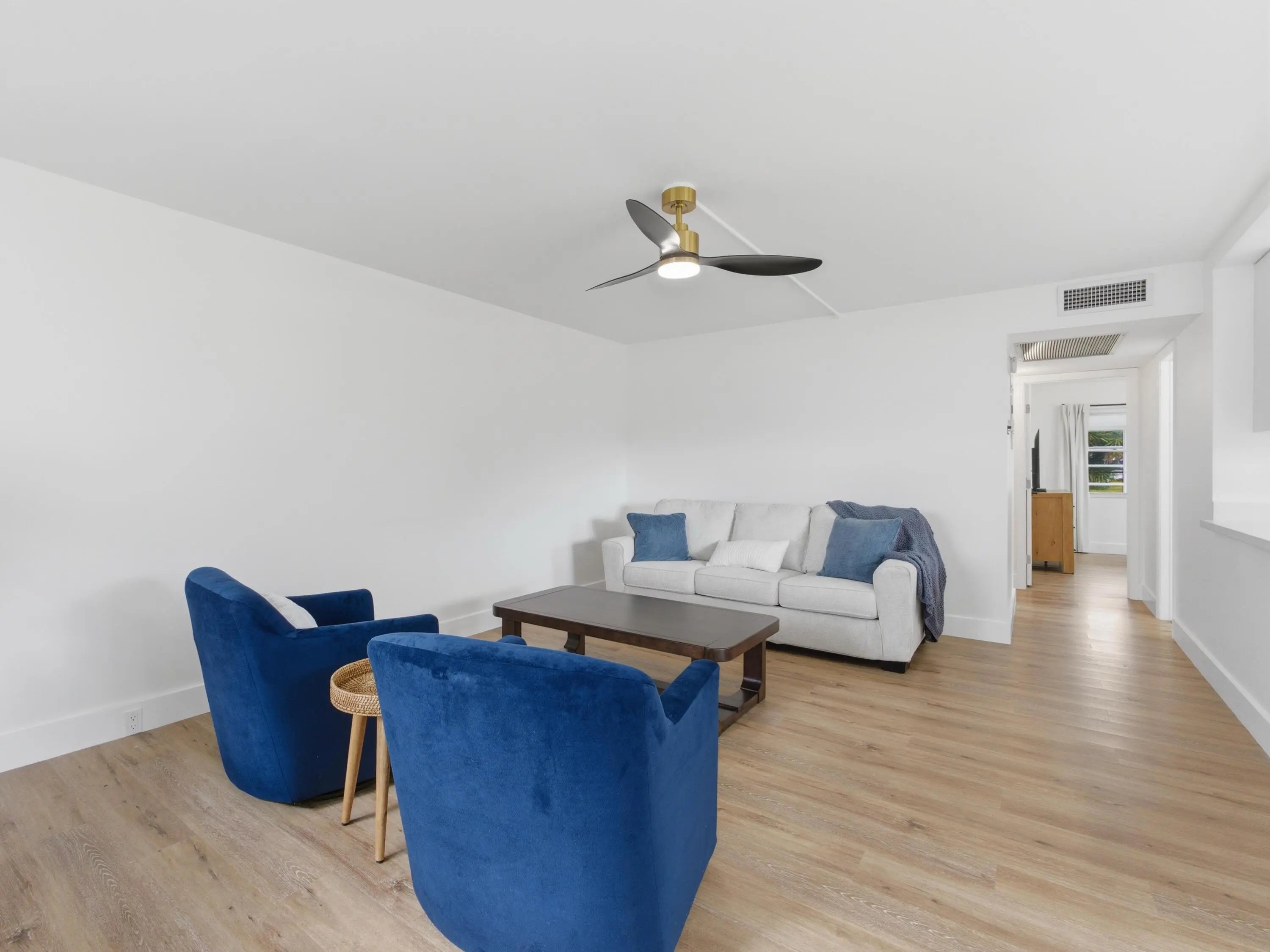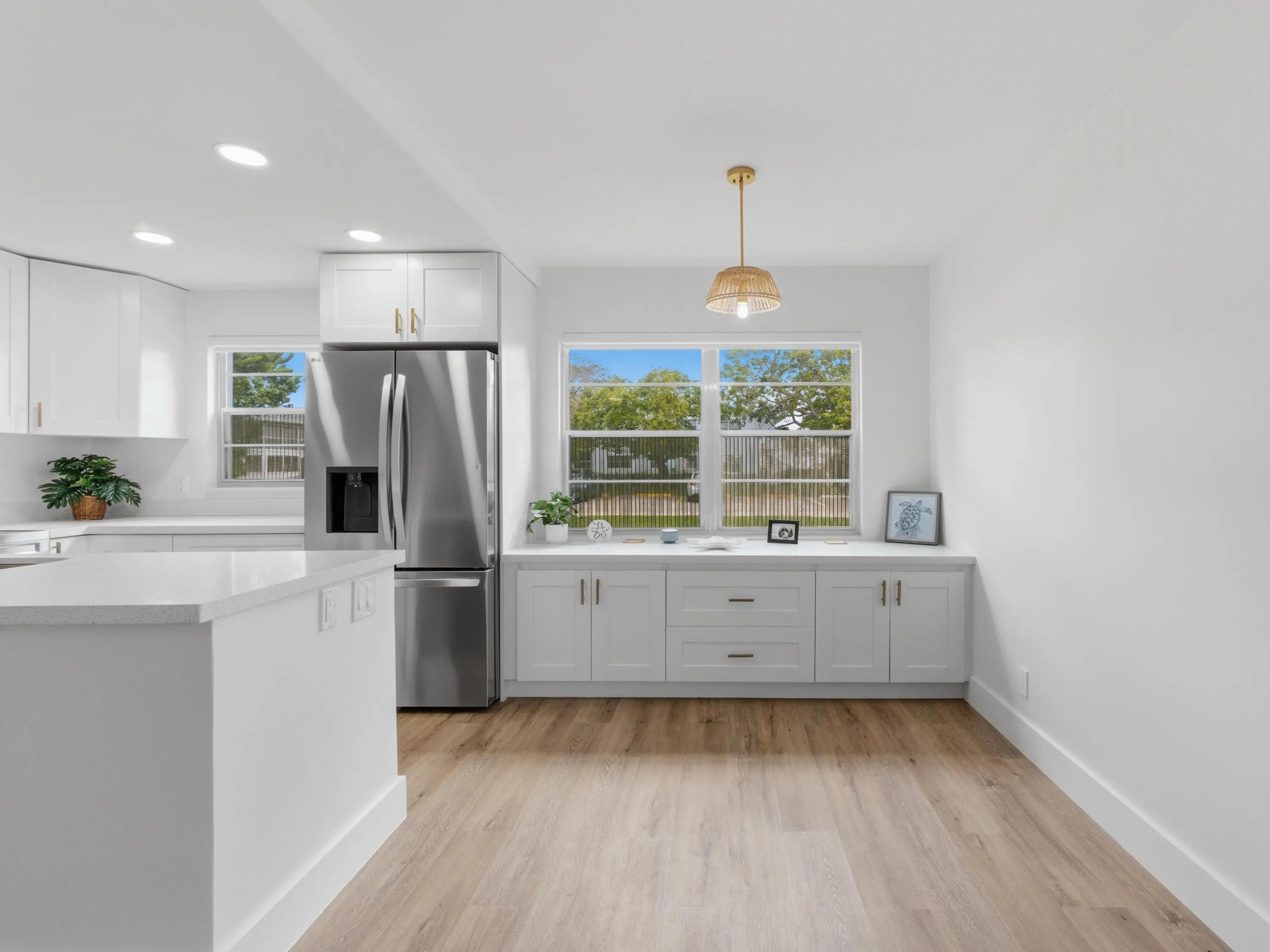 Beautifully remodeled 2 bedroom 1.5 bath first floor true corner unit. The kitchen has been completely updated and features ample cabinetry, quartz countertops, a pot filler, spice cabinet and lazy Susan, along with newer stainless steel appliances. Enjoy luxury vinyl flooring throughout and modern zebra blinds. Additional upgrades include central AC, a newer water heater, and updated electrical system. Both bathrooms have been tastefully renovated, and the enclosed patio provides the perfect space to relax and unwind. Located 15 minutes from the beach, the community has a theater, gym, pickleball courts, buses, fitness, and pools. Don't miss out on this update Condo!! Its a must see!!