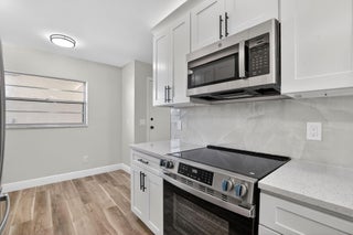 Completely remodeled and fully permitted, this secluded 2nd-floor Boca Barwood condo offers peace, privacy, and modern upgrades throughout. Features include a brand-new kitchen with quartz countertops, new appliances, fully renovated bathrooms, new washer and dryer, new A/C, new electrical panel, and Honey Oak luxury vinyl flooring. Boca Barwood is a well-maintained 55+ community surrounded by mature landscaping and offers a clubhouse, heated pool, sauna, tennis and pickleball courts, shuffleboard, walking paths, and an active women's club. Conveniently located near shopping, dining, golf, and beaches--ideal for full-time or seasonal living.