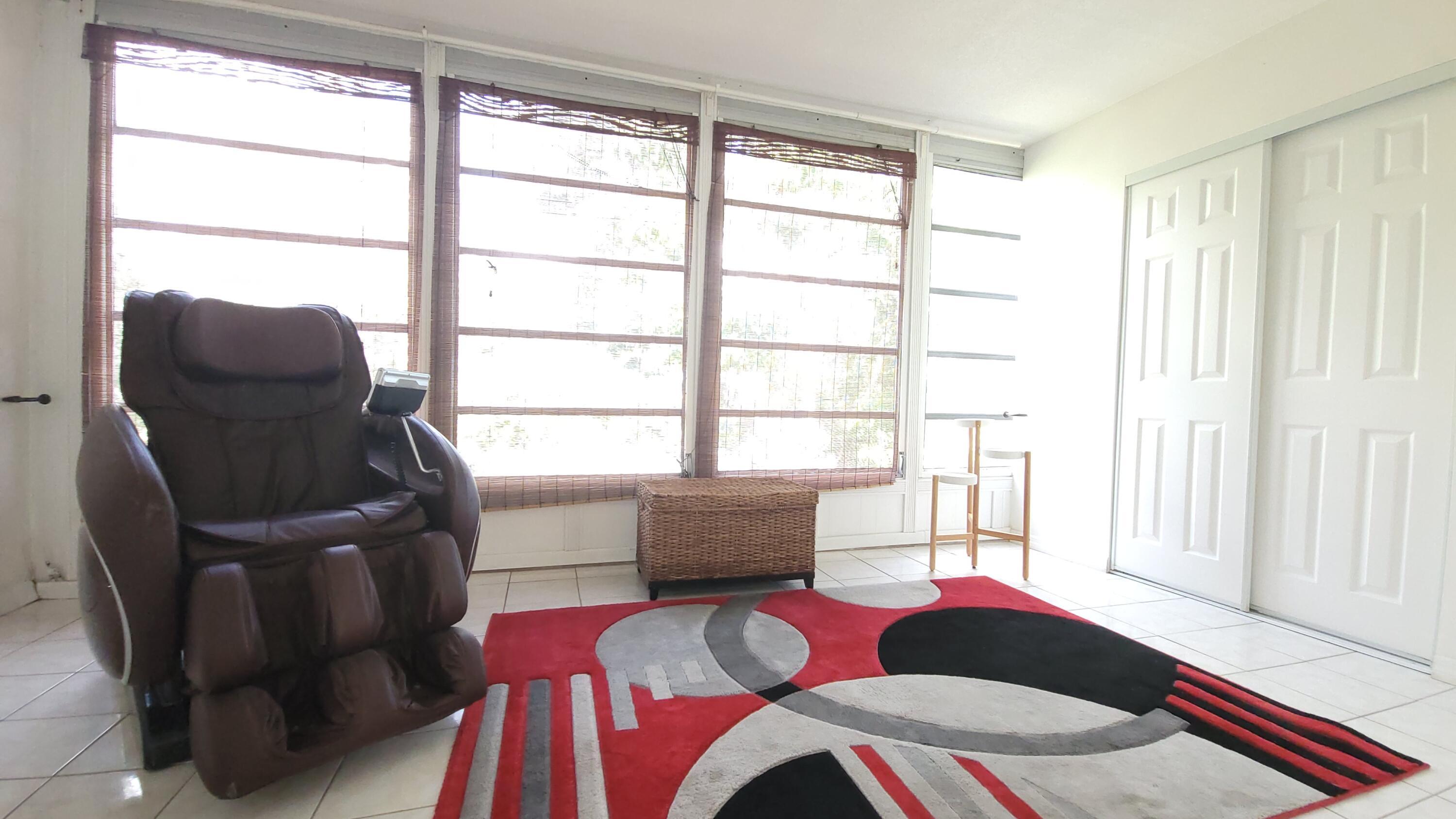 Gorgeous, updated condo on the top level of this four-story building. One bedroom and one and one-half bath with a large Florida-room that has a beautiful view. Fully furnished and ready for your full-time or seasonal enjoyment. All tile floors, open kitchen concept with updated cabinets and appliances. Impact windows and freshly painted. A/C is 9 years old and the water heater is 3 years old. No assessments and association has good reserves. Welcome to the paradise of South Florida, resort-style social living at its absolute best. When you become the proud owner of a Century Village condominium, you begin the journey to experience the distinct Century Village "way of life" with luxurious recreational facilities and abundant social activities. Century Village West Palm Beach is an age restricted (+55) active adult community with 24- hour security and manned gated entrances. Century Village is situated on 29 acres, securely fenced just East of Florida's Turnpike with its two manned gates, one located on Okeechobee Blvd. and East Drive, and another on Haverhill Road and Century Blvd. Century Village is within 5 miles of the Palm Beach International Airport, Florida's Turnpike is less than one mile, I-95 is only three miles away, the Intracoastal waterway, and our pristine world-famous beaches are within 8 miles. Also within 5 miles is Rosemary Square (AKA City Place), our downtown entertainment, dining, and shopping hot spot. Palm Beach, one of the most beautiful and desirable locations in the world, is within a 20-minute drive. The Village boasts 7,854 units in 356 buildings with 309 associations (corporations). There is no master association which is unique in the state of Florida. Rather, the United Civic Organization (UCO) acts as an advisory group to the associations which send delegates to UCO meetings. The community newspaper is the UCO Reporter which is operated by the UCO Board. The magnificent 92,000 square foot Clubhouse features amenities including barber, beauty parlor, fitness center, theater, billiards, library, card playing and activity rooms, as well as an indoor pool and saunas. The newly remodeled 1209-seat theater hosts current run movies and live entertainment. Free private bus transportation within the village as well as frequent trips to shopping venues and other activities outside of the village. There are fifteen pools ensuring everyone has the possibility of living within walking distance to a pool. Other activities include tennis, petanque, shuffleboard, biking, sailing, canoeing, or just riding around in your golf cart. There is even an on-site drug store, limited medical services and free ambulatory services. The restoration of the clubhouse (which was damaged by Hurricane Frances) took many months and approximately 6 million dollars to complete. Most impressive is that this renovation required no special assessments to the members. The building is now complete and boasts a magnificent theater offering live shows by well-known entertainers and current run movies. There is a large party room that seats 512 people with a large dance floor and stage, card room, meeting rooms, hobby and craft rooms, billiard room, sewing room, music room, two exterior swimming pools and one indoor heated saltwater swimming pool, as well as shuffleboard, handball, bocce, and racquet ball courts. This beautiful new building was completely remodeled, upgraded and rebuilt to current code, including impact windows so there is no need for hurricane shutters on the building. The clubhouse is not owned by the associations, but by Beneson Capital Partners in New York, and is managed by WPRF, Inc. In addition to the clubhouse there is a large fitness center in the Hastings section of the Village that has free weights, exercise classes, various exercise machines, a resistance pool, and a regular swimming pool where water aerobics are offered. Also, for our residents we have a courtesy bus system which takes residents throughout the Village as well as to nearby stores, malls, restaurants, houses of worship and various excursions.