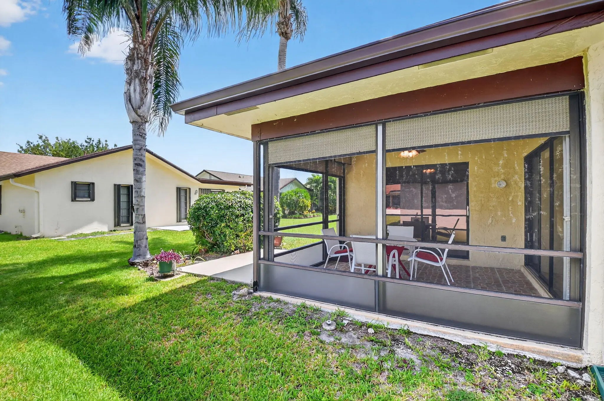 Enjoy easy Florida living in this 2-bedroom plus den home located in the desirable 55+ Buttonwood West community in Greenacres, FL. Relax on the screened-in, covered patio or soak up the sun on the open patio. Updates include a 2019 roof, 2016 A/C, and 2014 water heater. The community offers a guarded entrance at night, an on-site clubhouse manager, and a wide range of amenities including a pool with evening hours, fitness center, pickleball, tennis, bocce, shuffleboard, billiards, jacuzzi, and card room. Ideally situated near shopping, dining, parks, beaches, the Turnpike, and Palm Beach International Airport.