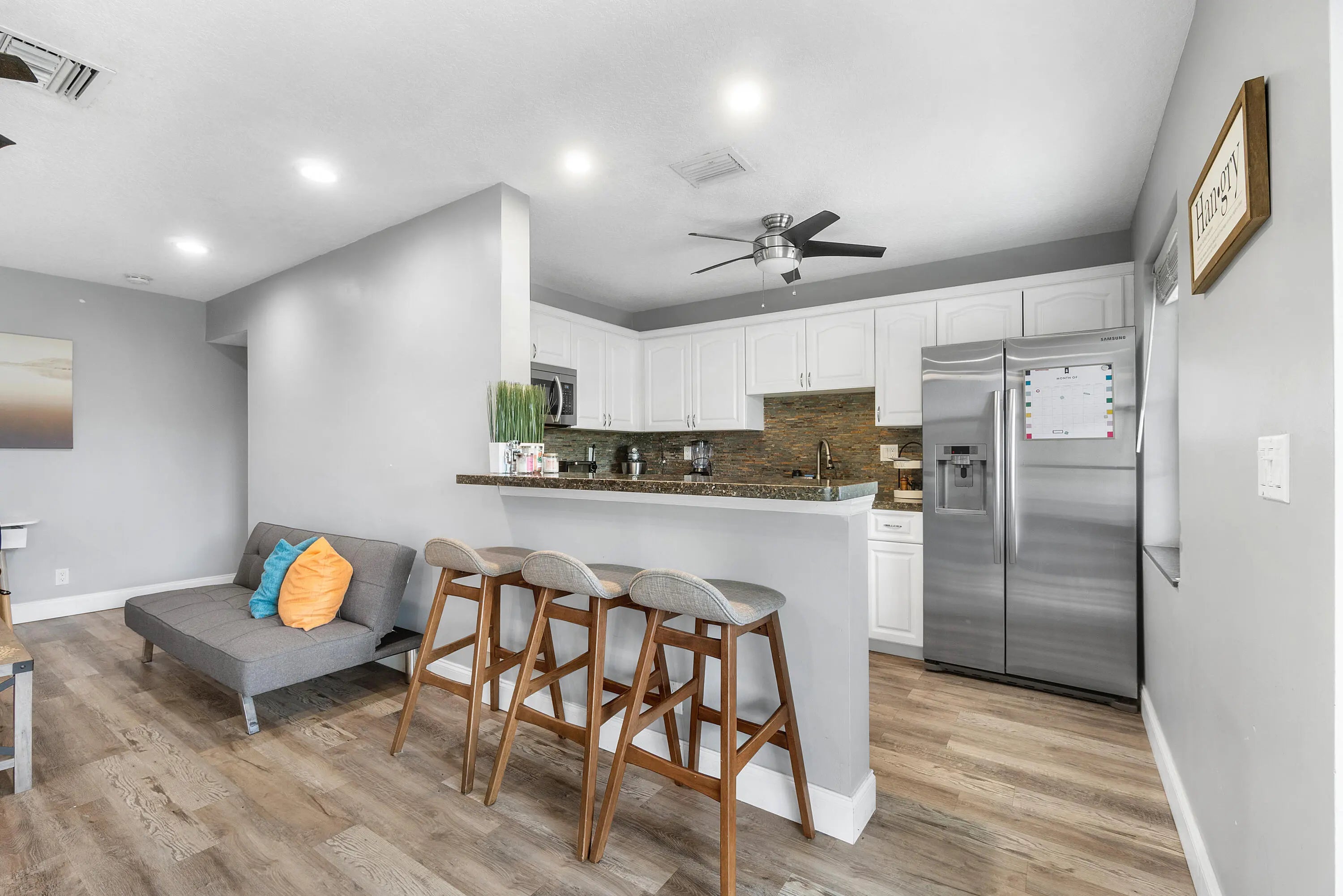 Charming and fully furnished 1-bedroom, 1.5-bath condo available for short term rental in Royal Palm Beach. Located on the second floor, this unit features a spacious walk-in closet, peaceful canal views, and a comfortable layout. Enjoy being right across the street from the scenic Veterans Park. The community offers a pool, one assigned parking space, and guest parking. Convenient location close to shops, restaurants, and local amenities. All payments due before move-in. Condo application $150 per married couple.