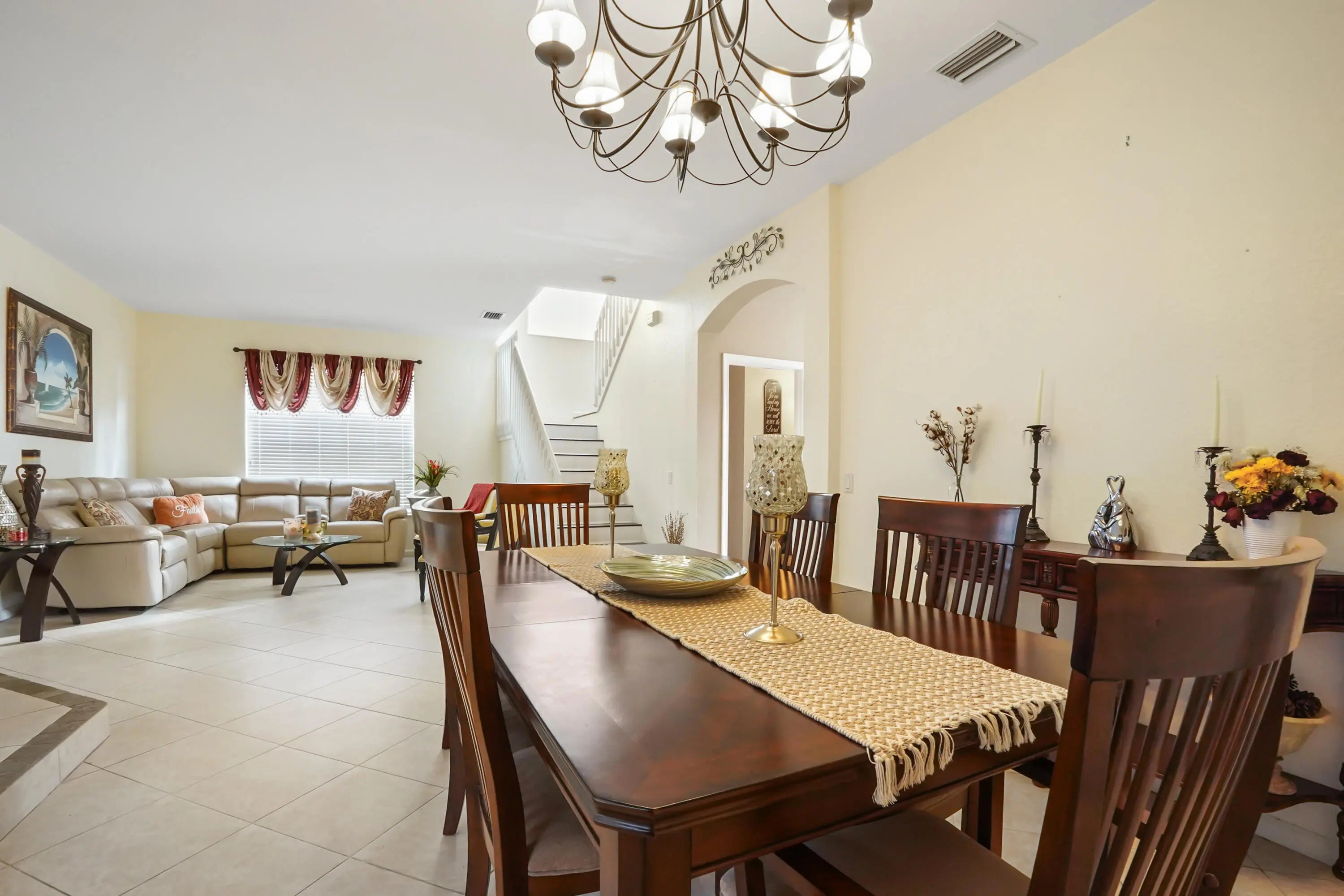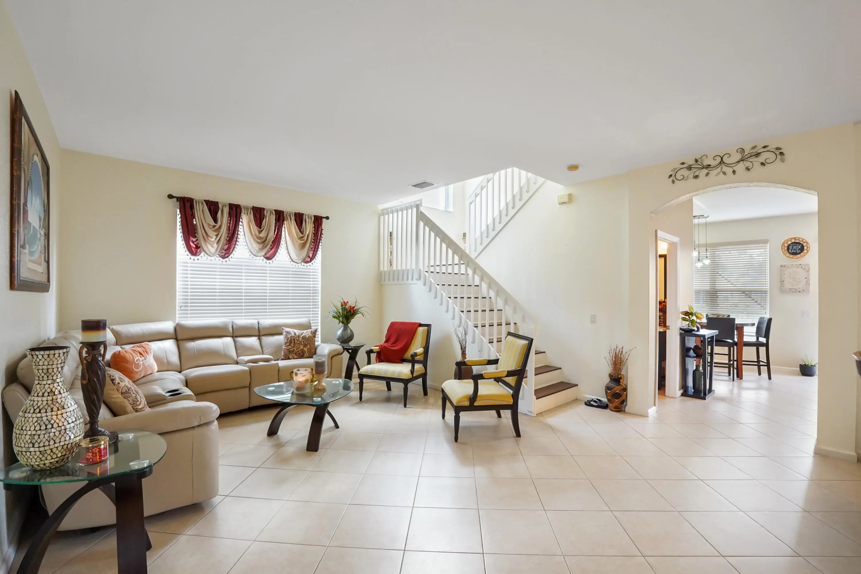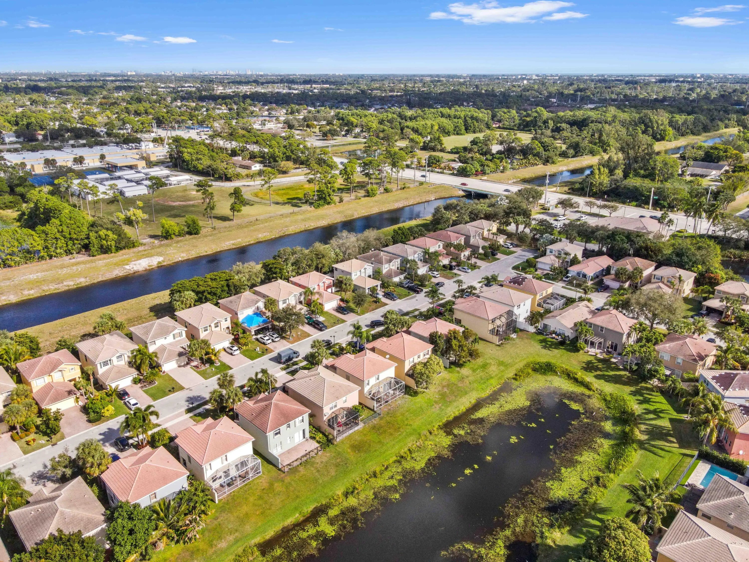 Discover a spacious and serene retreat in this beautifully maintained single-family home, perfectly positioned on a lush waterfront lot in Greenacres. Curb appeal abounds with a paved driveway and a welcoming front entry that invites you into a bright foyer. Inside, the home unfolds with an open and airy layout, featuring elegant diagonal tile flooring that flows seamlessly through the main living areas. The heart of the home is the open-concept kitchen, featuring rich dark wood cabinetry, stainless steel appliances, and a convenient breakfast area that overlooks the family room--perfect for casual dining and entertaining.