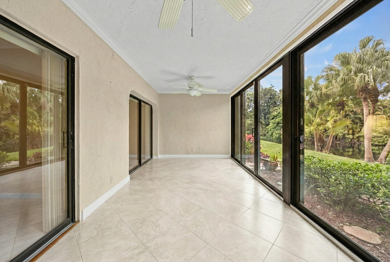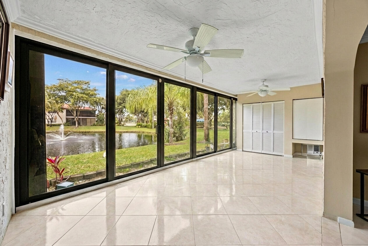 Welcome to 21691 Tall Palm Circle, Boca Raton, FL 33433, a beautifully maintained lakefront residence located in the desirable Boca Lago 55+ community. Upon entry, you will appreciate the open and inviting layout with tranquil lake views that create a relaxed Florida lifestyle. The spacious living and dining areas flow seamlessly into the sun room, where impact-resistant sliding doors fill the space with natural light while offering added storm protection. The front of the home is equipped with accordion shutters for safety and peace of mind.The home features two bedrooms plus a den, with the den serving as the third bedroom. This flexible space is ideal for a home office, guest suite, or additional living area. Two full bathrooms and generous room sizes complete the functional floor plan. Boca Lago offers a premier country club lifestyle centered around a 27-hole championship golf course designed for players of all skill levels, featuring scenic fairways and water views. Full and seasonal memberships are available. Membership at Boca Lago includes participation in the ClubBenefits and XLIFE Play Away program at no additional cost. Members enjoy privileges to play golf, dine, exercise, swim, use tennis facilities, entertain family, friends, and clients, and celebrate special occasions at more than 300 private clubs across the country. Community amenities include golf, tennis, pickleball, multiple swimming pools, a fitness center, activities center, poolside bar, dining venues, and a full-service clubhouse. The clubhouse also hosts weddings, private celebrations, and special events. Boca Lago is known for its vibrant social calendar, including special dining events with live entertainment such as tribute band nights, themed galas, dinner parties, and poolside cookouts with DJs. Residents enjoy Thirsty Thursday social hours featuring cocktails and bar foods, along with arts and culture programming such as lectures, movie nights, book clubs, trivia nights, bingo, and card parties. The men's and women's card rooms offer beautiful golf and pool views and feature a refreshment bar and kitchen. Games include Bridge, Gin, Canasta, Mah Jongg, Poker, Pinochle, Cribbage, and space for private gatherings. The community includes dining, social events, swimming, fitness facilities, an activities center, and a poolside bar. Boca Lago maintains a zero pet policy. Conveniently located near Boca Raton Regional Hospital, West Boca Medical Center, and Delray Medical Center. Nearby restaurants include Max's Grille, Houston's, Rocco's Tacos, Abe & Louie's, The Capital Grille, Farmer's Table, and a variety of cafés and bistros. This lakefront home offers the ideal combination of comfort, convenience, and an active Boca Raton lifestyle. This home is available immediately and may be offered fully furnished or unfurnished.