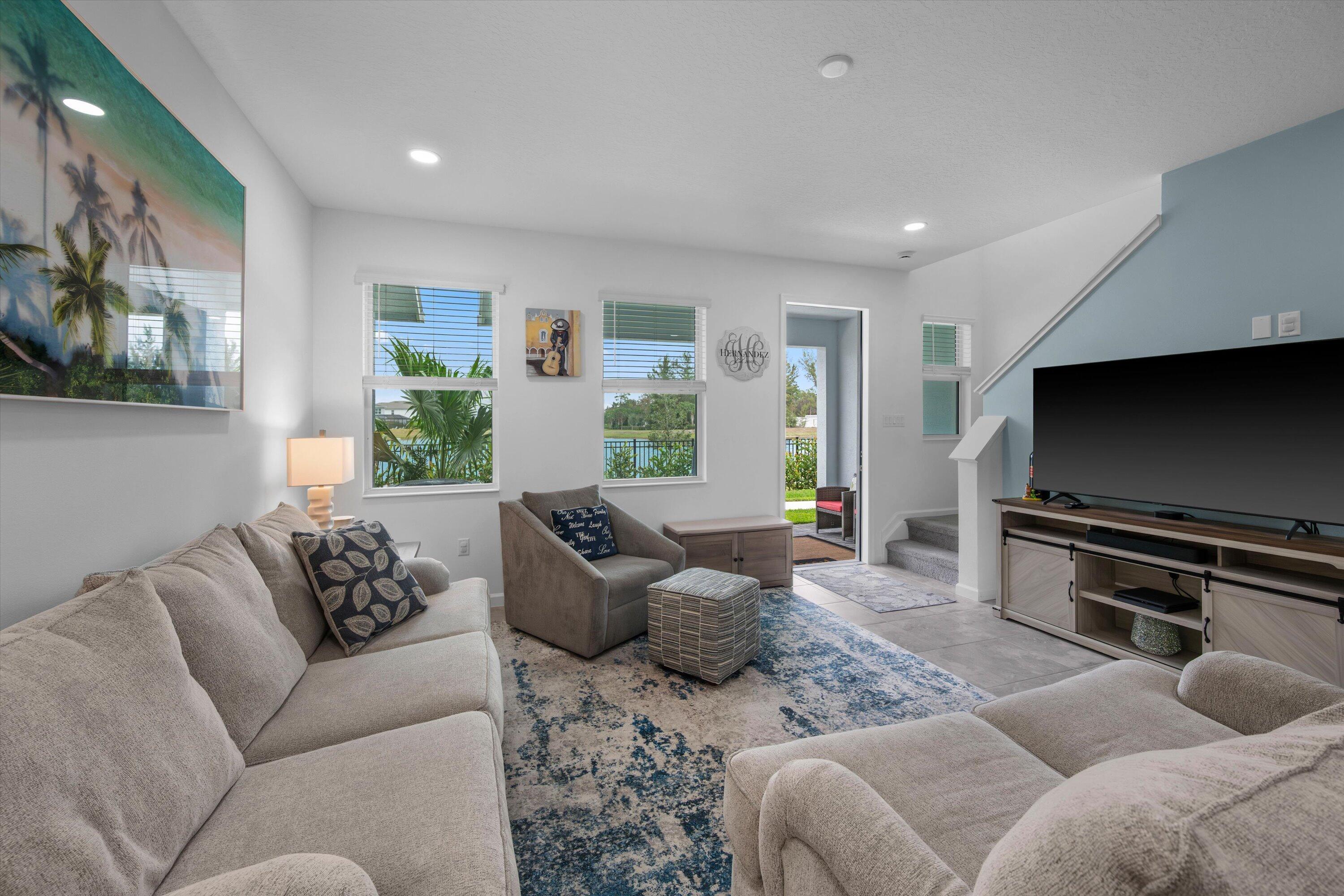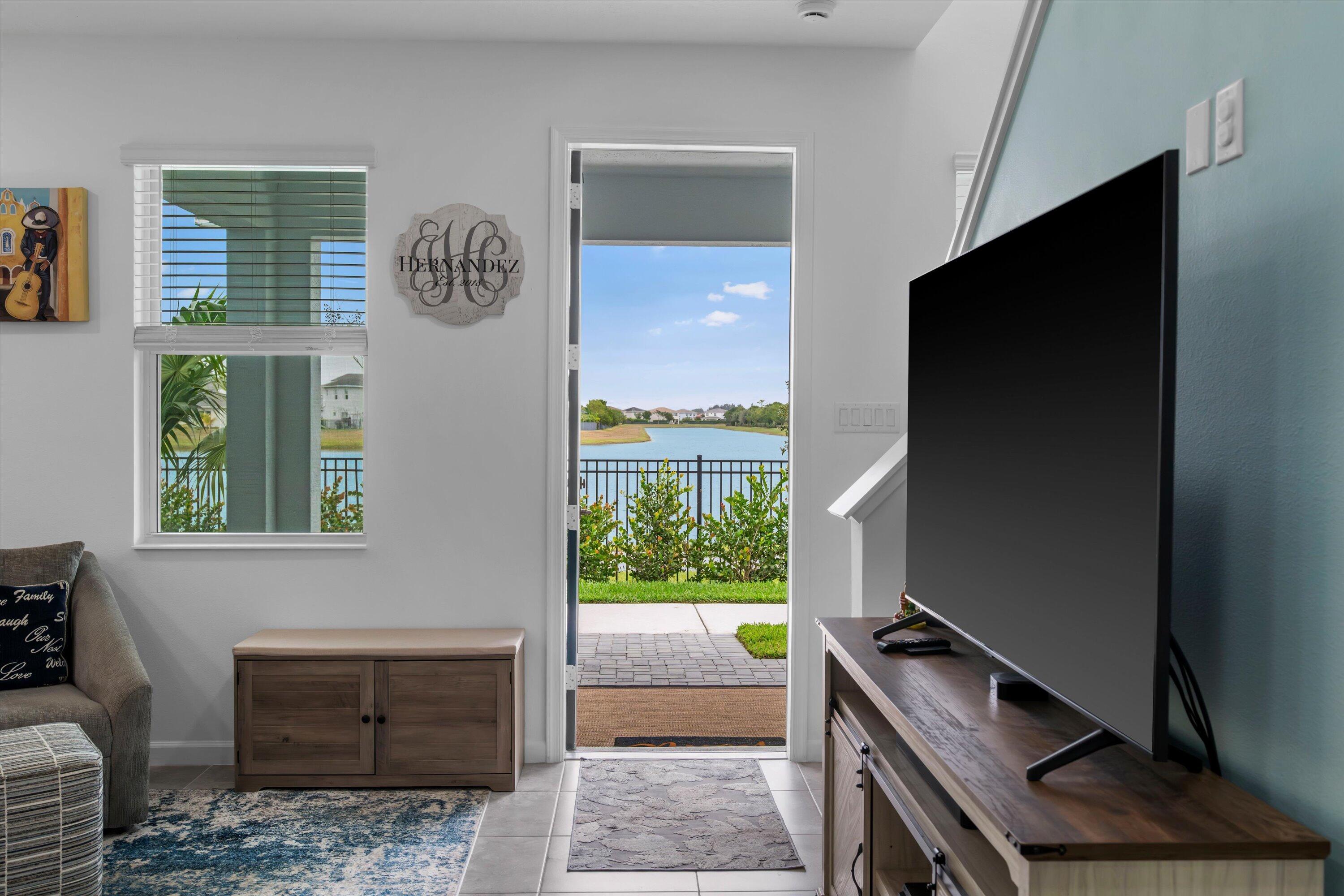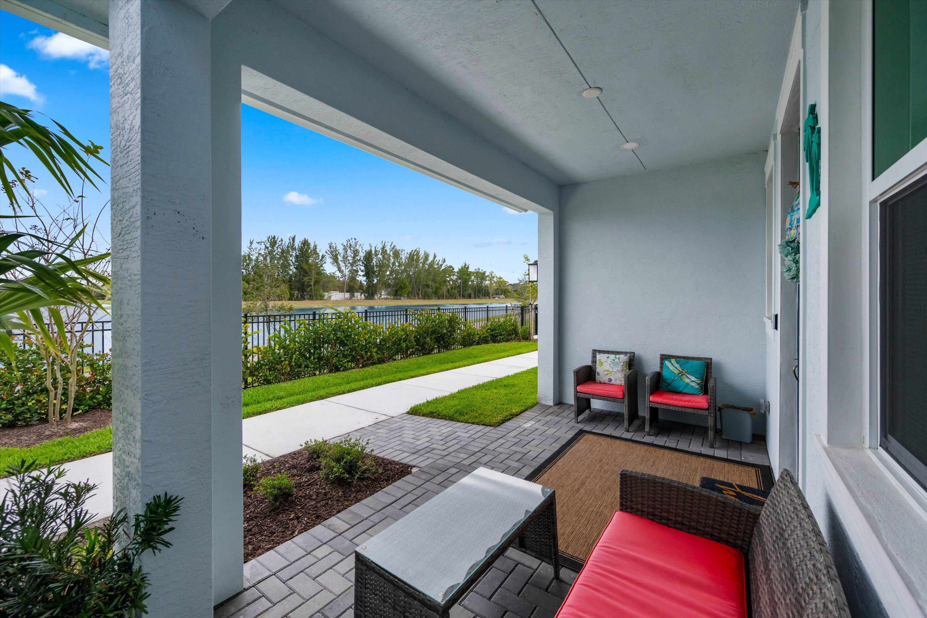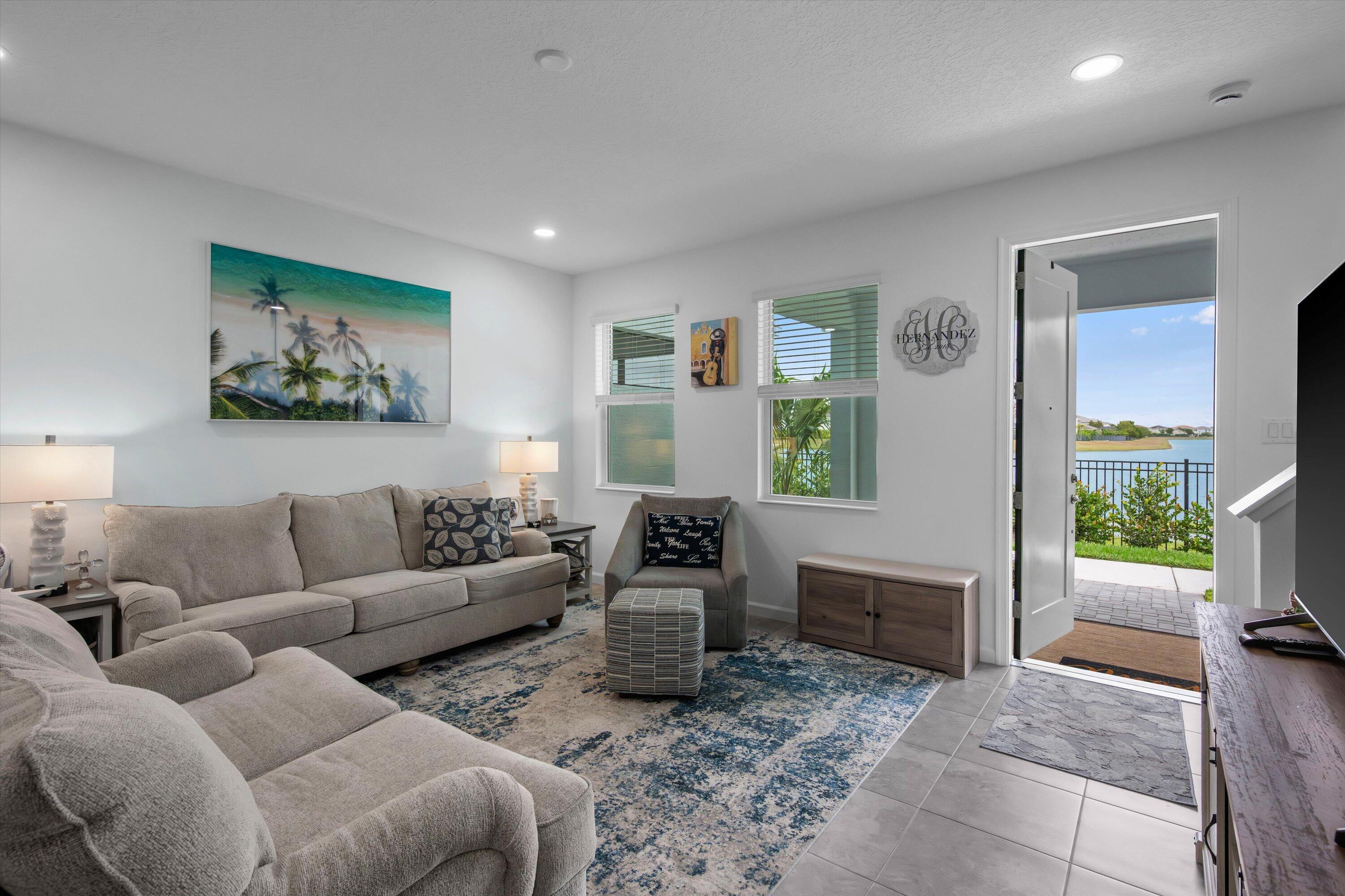 Welcome to this beautifully maintained 3-bedroom, 2.5-bath Rose townhome in the highly desirable Terraces community of Westlake! Offering 1,540 sq ft of living space plus a 2-car garage, this home welcomes you with a charming front porch--perfect for morning coffee while enjoying a stunning long lake view and breathtaking sunrises.Inside, you're greeted by a bright living room with recessed lighting and an open, functional layout. The kitchen features crisp white cabinetry, gorgeous gray-blue granite countertops, stainless steel appliances, and a large island with white shaker cabinetry and seating for threeideal for entertaining. A convenient downstairs powder bath and a designated dining area with direct access to the garage complete the first floor. Upstairs, the spacious primary suite is a true retreat with serene lake views and a private bath featuring dual sinks, granite countertops, white shaker cabinets, and a seamless glass-enclosed shower. Two additional generously sized bedrooms share a full bath with white shaker cabinetry, granite countertops, and a tub/shower combo. You'll also love the oversized upstairs laundry room with cabinetry, along with ample closet space throughout. Enjoy the Westlake lifestyle and the peaceful waterfront settingthis one checks all the boxes. Schedule your private showing today!