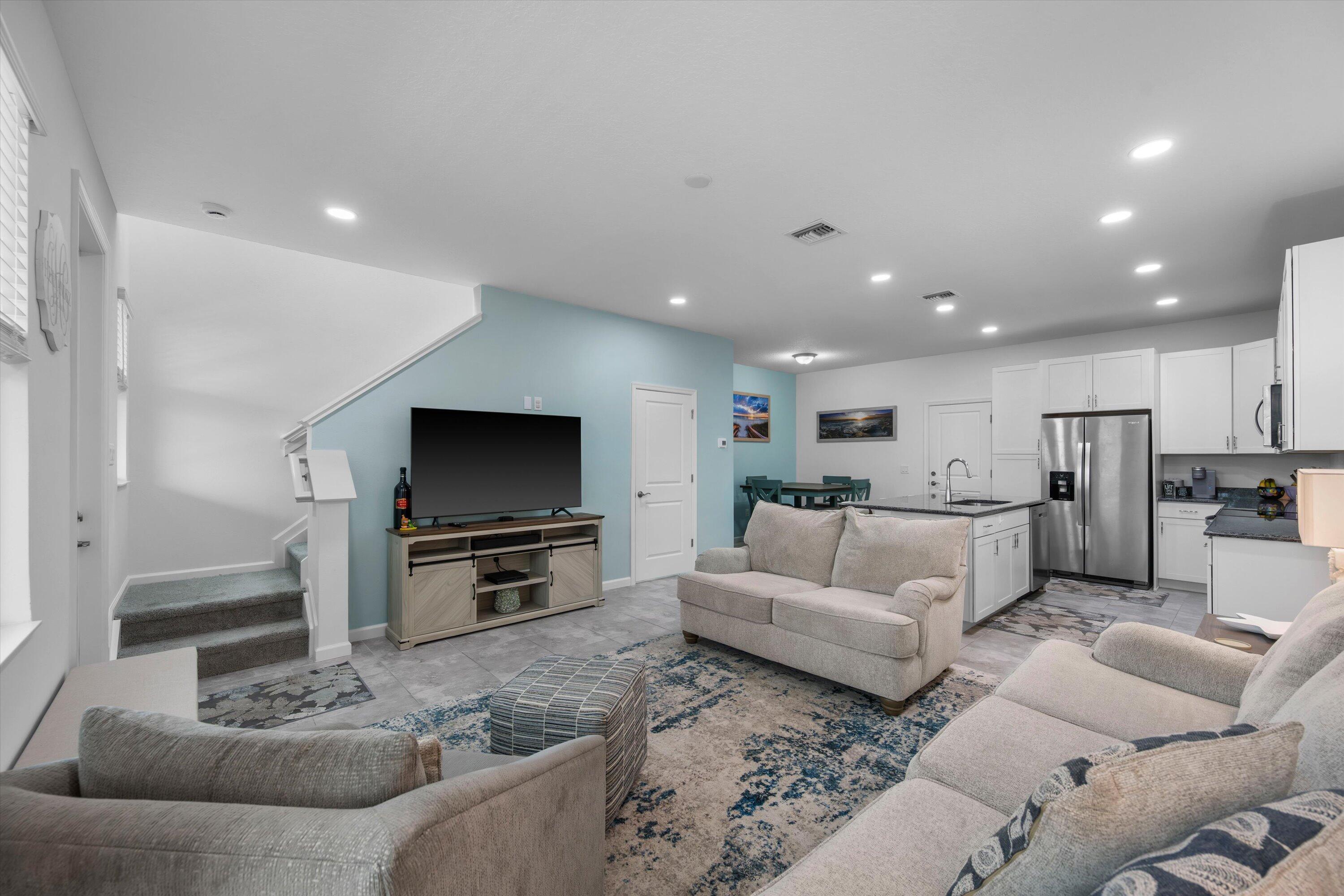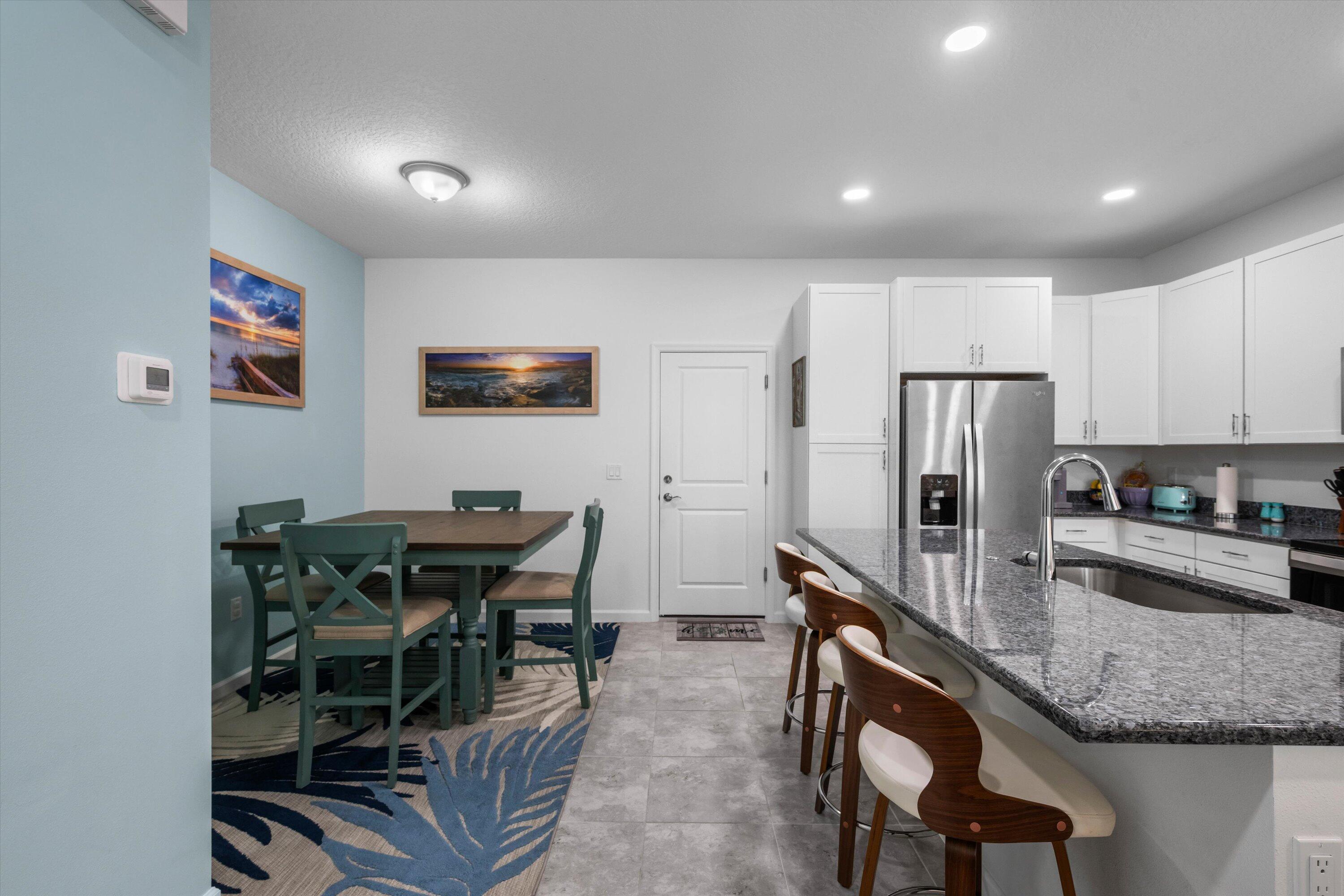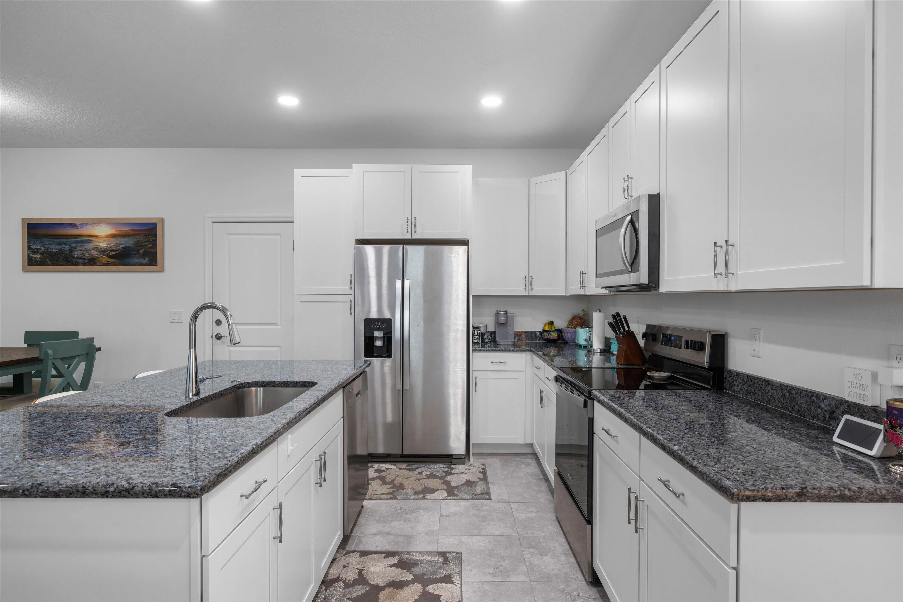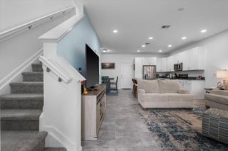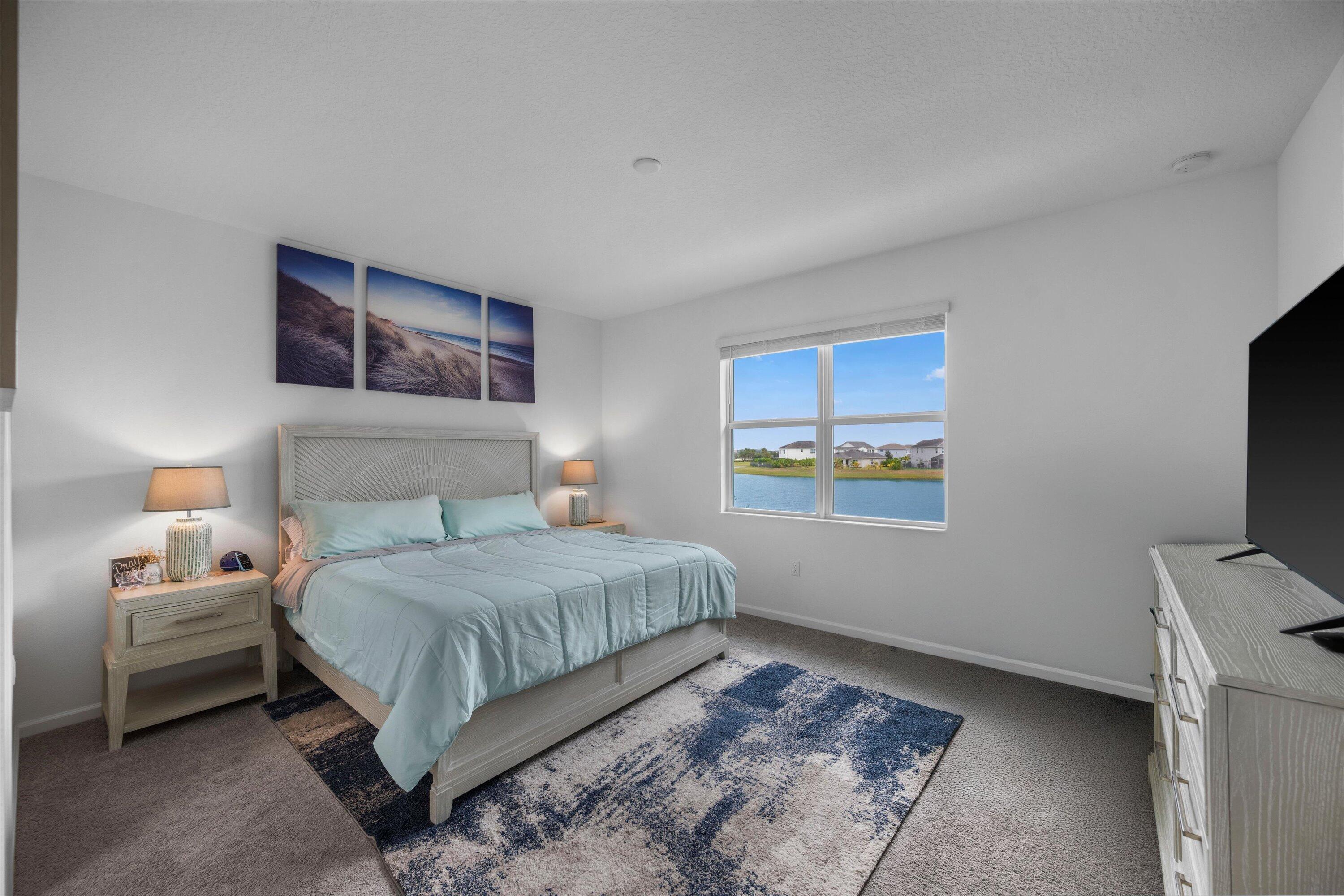Welcome to this beautifully maintained 3-bedroom, 2.5-bath Rose townhome in the highly desirable Terraces community of Westlake! Offering 1,540 sq ft of living space plus a 2-car garage, this home welcomes you with a charming front porch--perfect for morning coffee while enjoying a stunning long lake view and breathtaking sunrises.Inside, you're greeted by a bright living room with recessed lighting and an open, functional layout. The kitchen features crisp white cabinetry, gorgeous gray-blue granite countertops, stainless steel appliances, and a large island with white shaker cabinetry and seating for threeideal for entertaining. A convenient downstairs powder bath and a designated dining area with direct access to the garage complete the first floor. Upstairs, the spacious primary suite is a true retreat with serene lake views and a private bath featuring dual sinks, granite countertops, white shaker cabinets, and a seamless glass-enclosed shower. Two additional generously sized bedrooms share a full bath with white shaker cabinetry, granite countertops, and a tub/shower combo. You'll also love the oversized upstairs laundry room with cabinetry, along with ample closet space throughout. Enjoy the Westlake lifestyle and the peaceful waterfront settingthis one checks all the boxes. Schedule your private showing today!