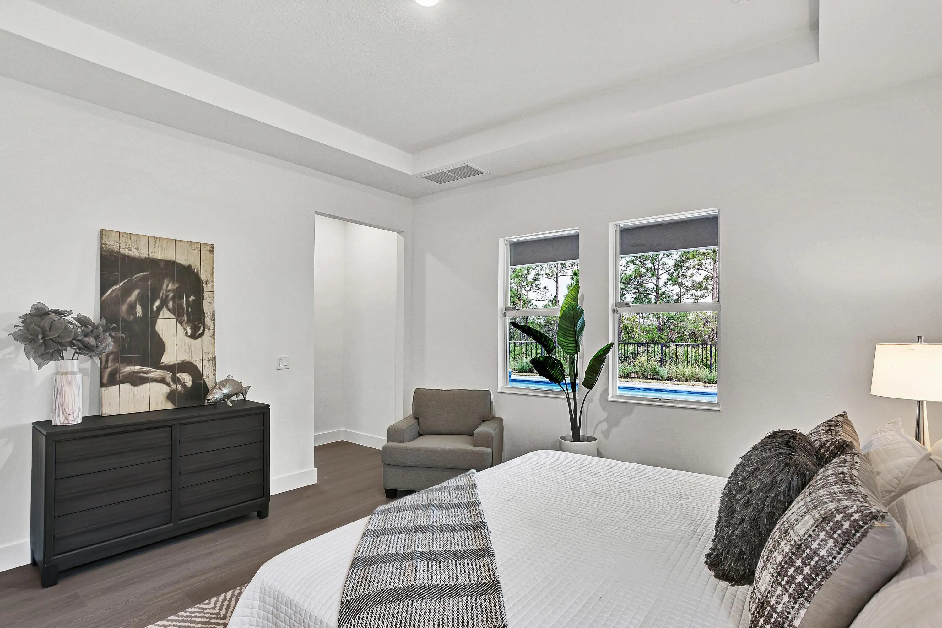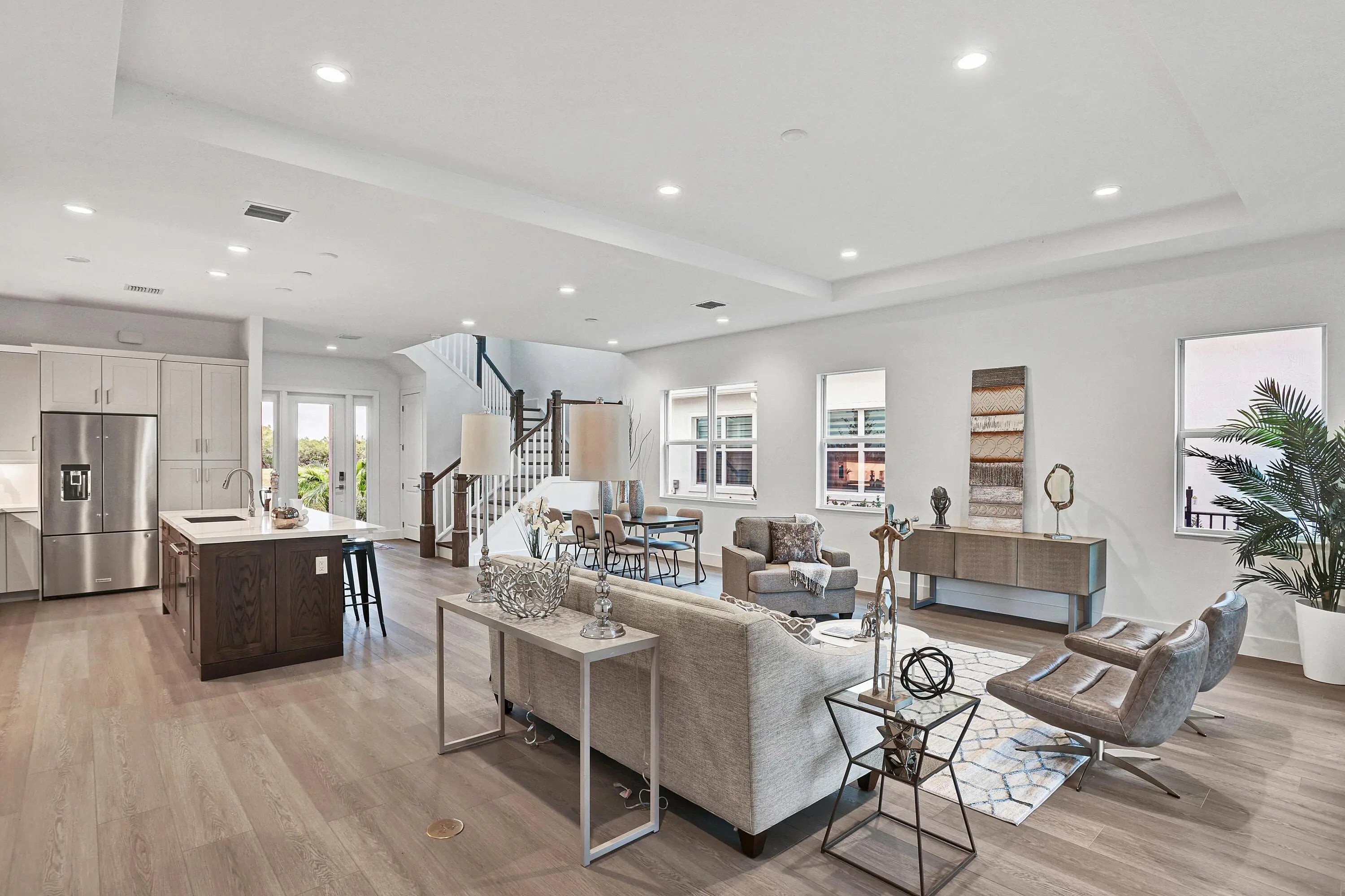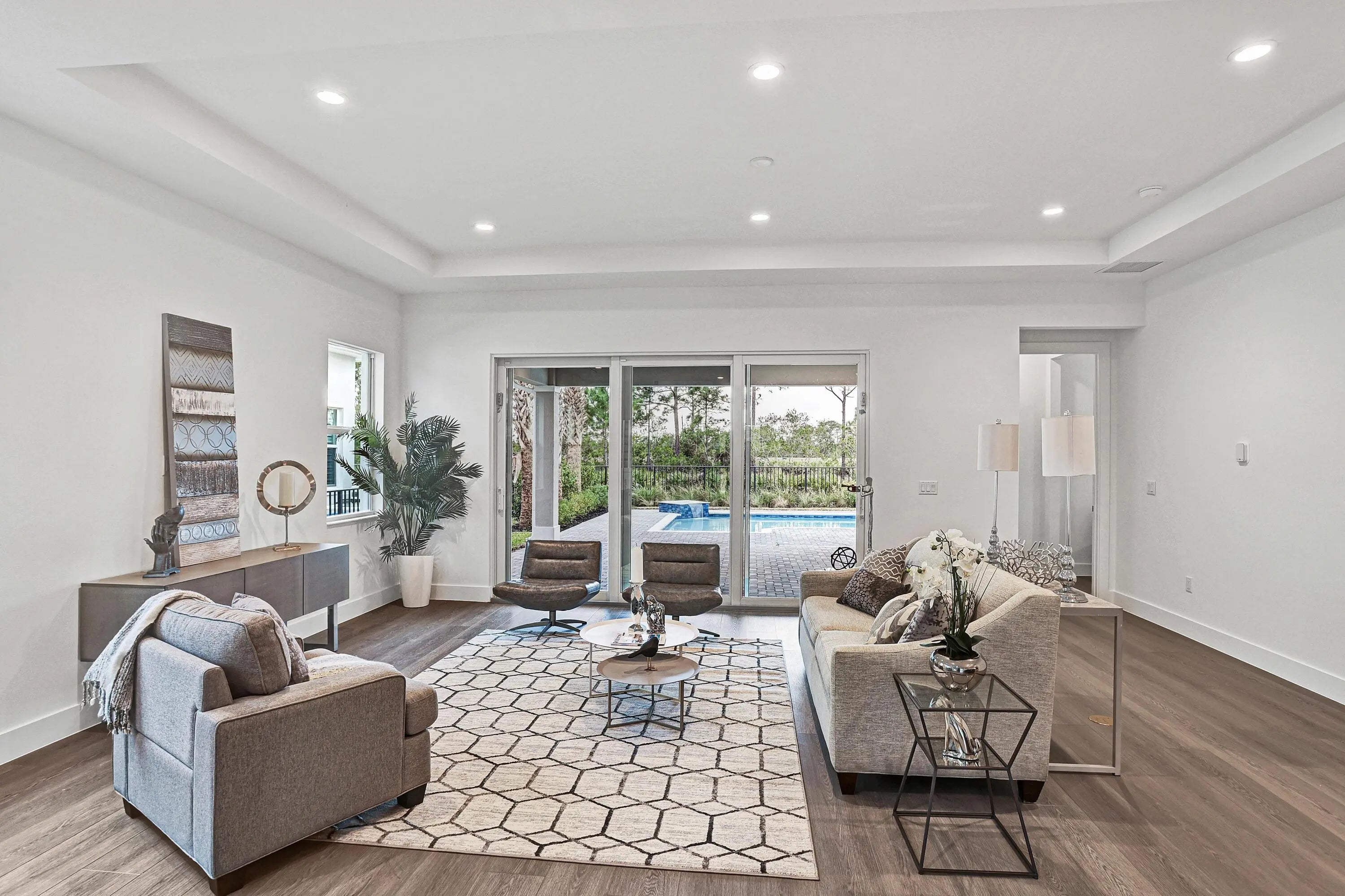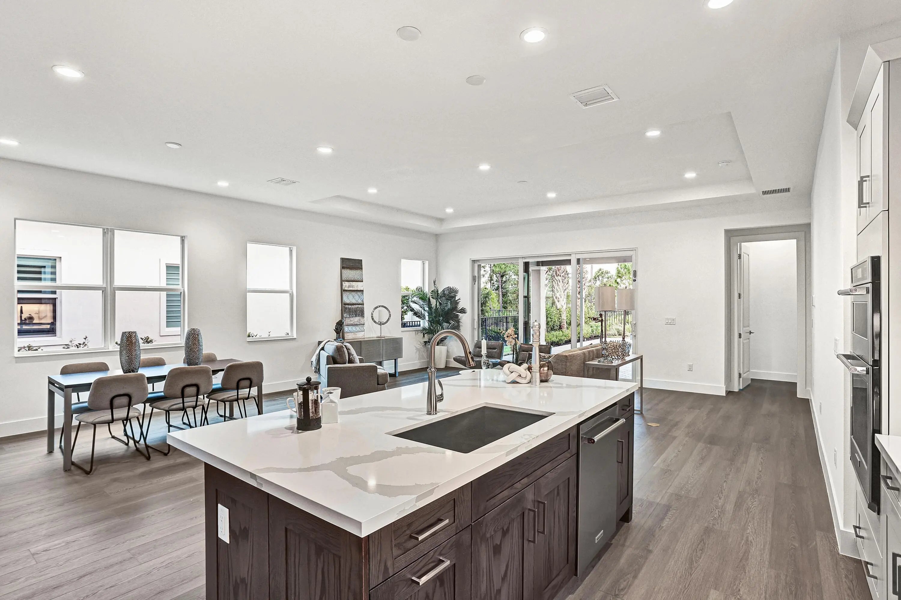 Located within the prestigious Tesoro Club, one of Florida's most desirable country club communities, this two-story 4-bedroom, 3.5-bath Denise Coastal home offers refined coastal luxury on a premium northwestern preserve homesite. Enjoy a custom-designed pool and expanded lanai with outdoor kitchen prep, creating a private, resort-style retreat.The open-concept interior features a light-filled great room with seamless indoor-outdoor flow, LVP flooring throughout the first floor and loft, and impact-resistant windows and doors. The chef-inspired wraparound kitchen includes KitchenAid appliances and a spacious center island overlooking casual dining--perfect for entertaining.