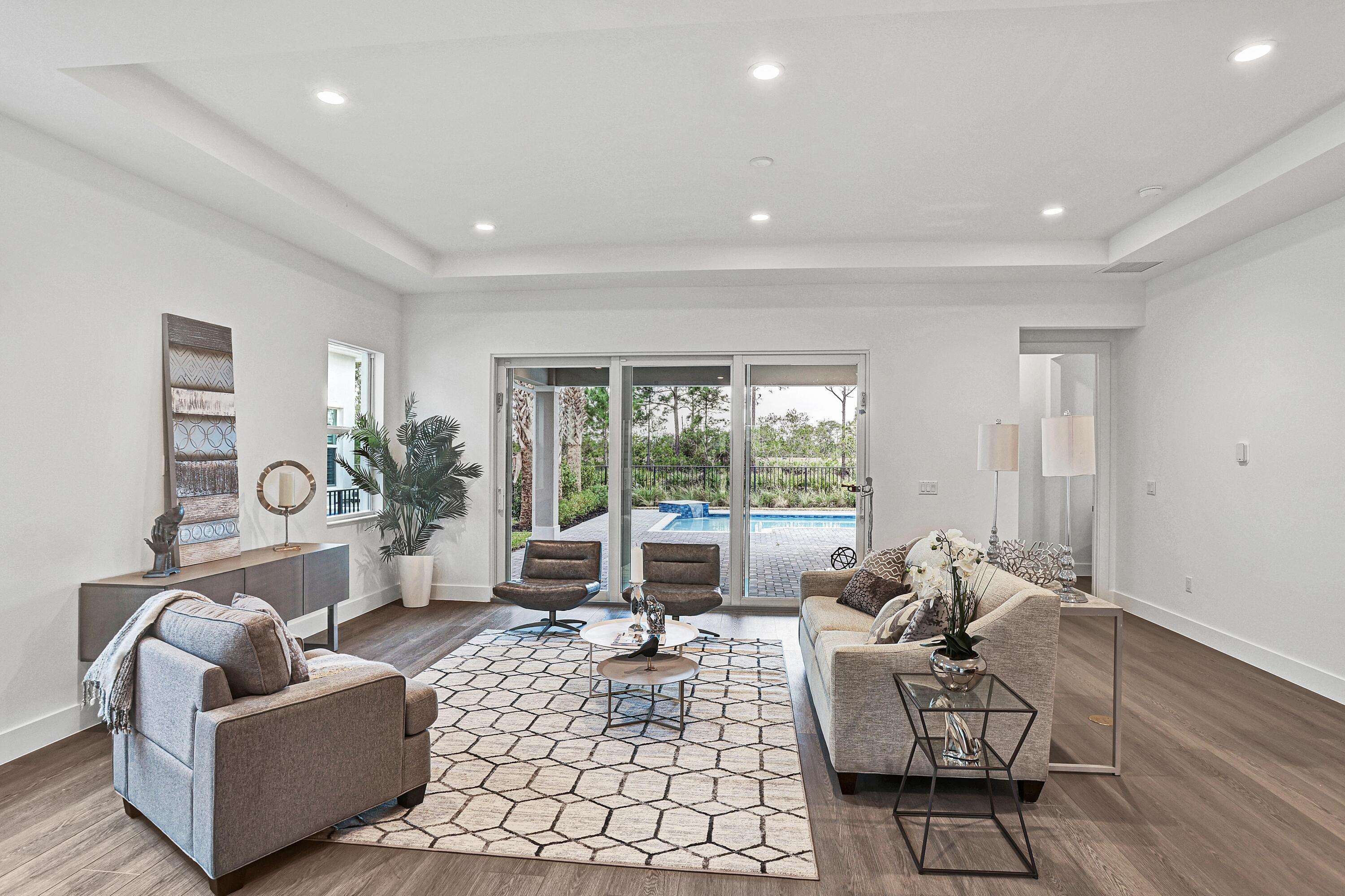 Located within the prestigious Tesoro Club, one of Florida's most desirable country club communities, this two-story 4-bedroom, 3.5-bath Denise Coastal home offers refined coastal luxury on a premium northwestern preserve homesite. Enjoy a custom-designed pool and expanded lanai with outdoor kitchen prep, creating a private, resort-style retreat.The open-concept interior features a light-filled great room with seamless indoor-outdoor flow, LVP flooring throughout the first floor and loft, and impact-resistant windows and doors. The chef-inspired wraparound kitchen includes KitchenAid appliances and a spacious center island overlooking casual dining--perfect for entertaining.The primary suite offers a serene escape with coffered ceiling, dual walk-in closets, and spa-like bath with soaking tub. Additional highlights include epoxy flooring in the garage, elegant finishes, and abundant natural light, all designed to complement the country club lifestyle. Tesoro Club amenities include a grand clubhouse, resort-style pool, fitness center, full-service spa, tennis and pickleball courts, dining, and a vibrant year-round social calendar. The community is home to two championship golf courses: the Arnold Palmer Signature Course, currently open, and the Tom Watson Signature Course, under construction and expected to open in 2027.