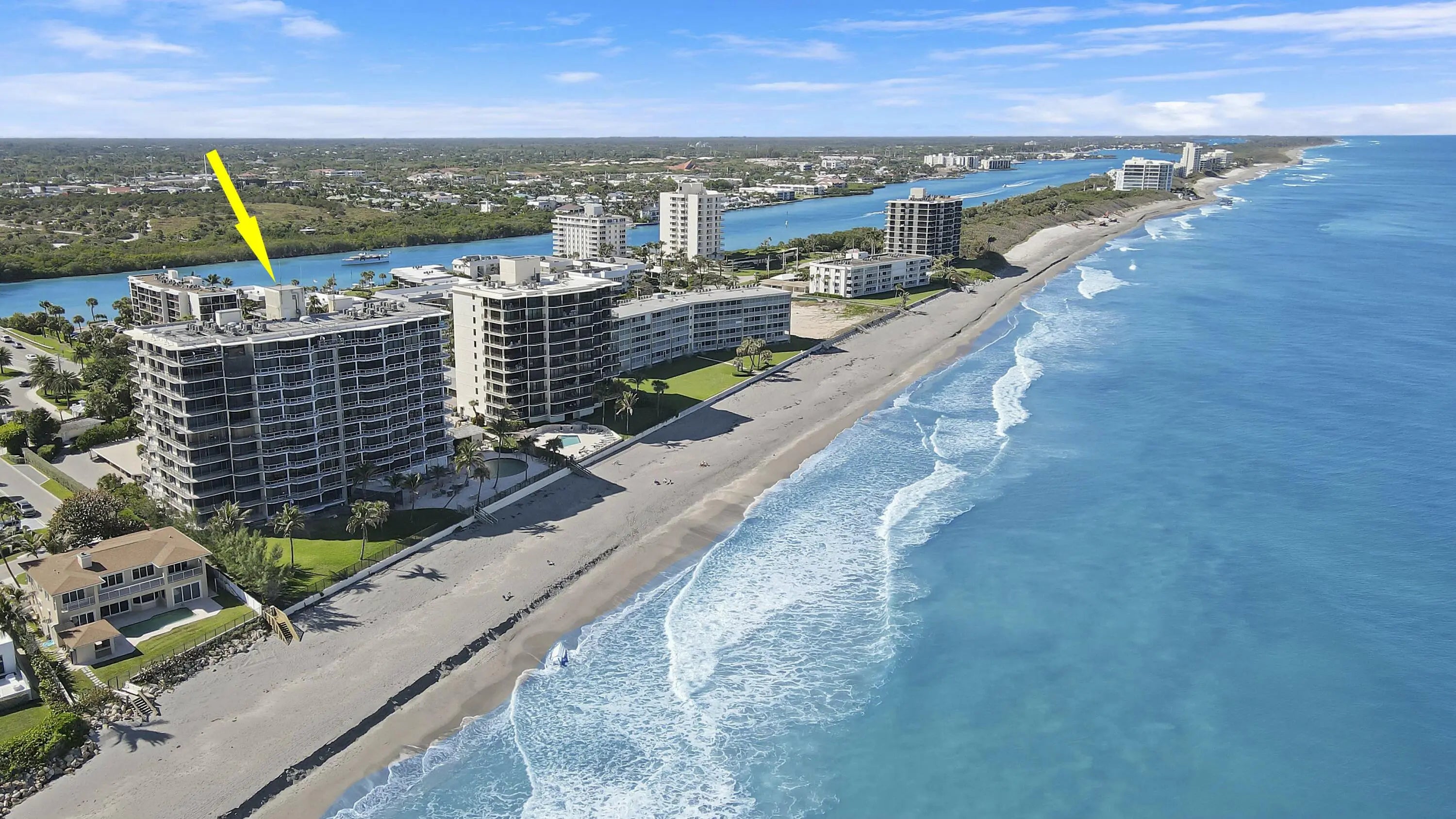 This rarely available corner residence on the 8th floor of Ocean Towers South is located in one of Jupiter Island's most highly sought-after buildings. This large split floorpan offers nearly 2,000 sq ft and breathtaking panoramic ocean views . Featuring an expansive wraparound balcony, this condo is filled with natural sunlight and Atlantic Ocean views.Right next to the iconic Jupiter Lighthouse, this residence is part of an exclusive enclave known for its privacy, beauty, and world-class coastal living. With all major assessments fully paid, the building is undergoing a stunning transformation, including brand-new sleek glass balconies that will elevate its modern appeal. This stack has been completed! Now is the perfect opportunity to design this condo to your exact vision.