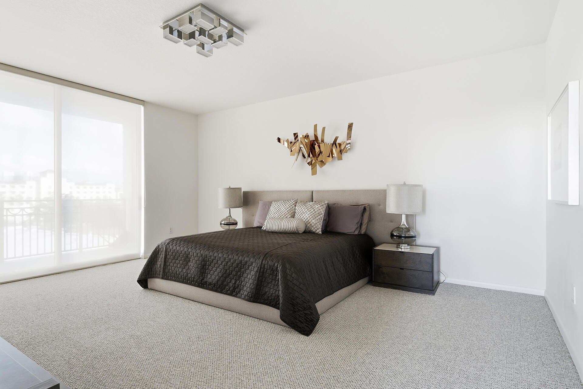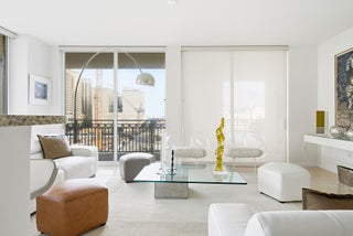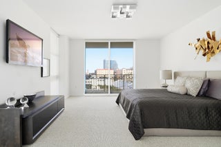 Luxury 3 bed/2 bath with high end furnishings, finishes & decor, suited for the most persnickety resident. Rare, east-facing home in the sky features foyer entry, floor to ceiling windows with custom sun shades, stone floors & new carpet in the bedrooms. Be a home chef in the modern kitchen with stainless appliances, tons of storage & even a wine fridge. Open floor plan with enormous wrap around balcony is ideal for indoor/outdoor living. Primary suite is oversized & includes custom closets, dual vanity, glass shower & spa tub. 2 additional bedrooms & guest bath are well appointed. Building boasts new resort-style pool, cabanas, whirlpool, summer kitchen, state of the art fitness center, lounge, complimentary valet, 24hr doorman. Steps to CityPlace & Palm Beach *Art does not convey.