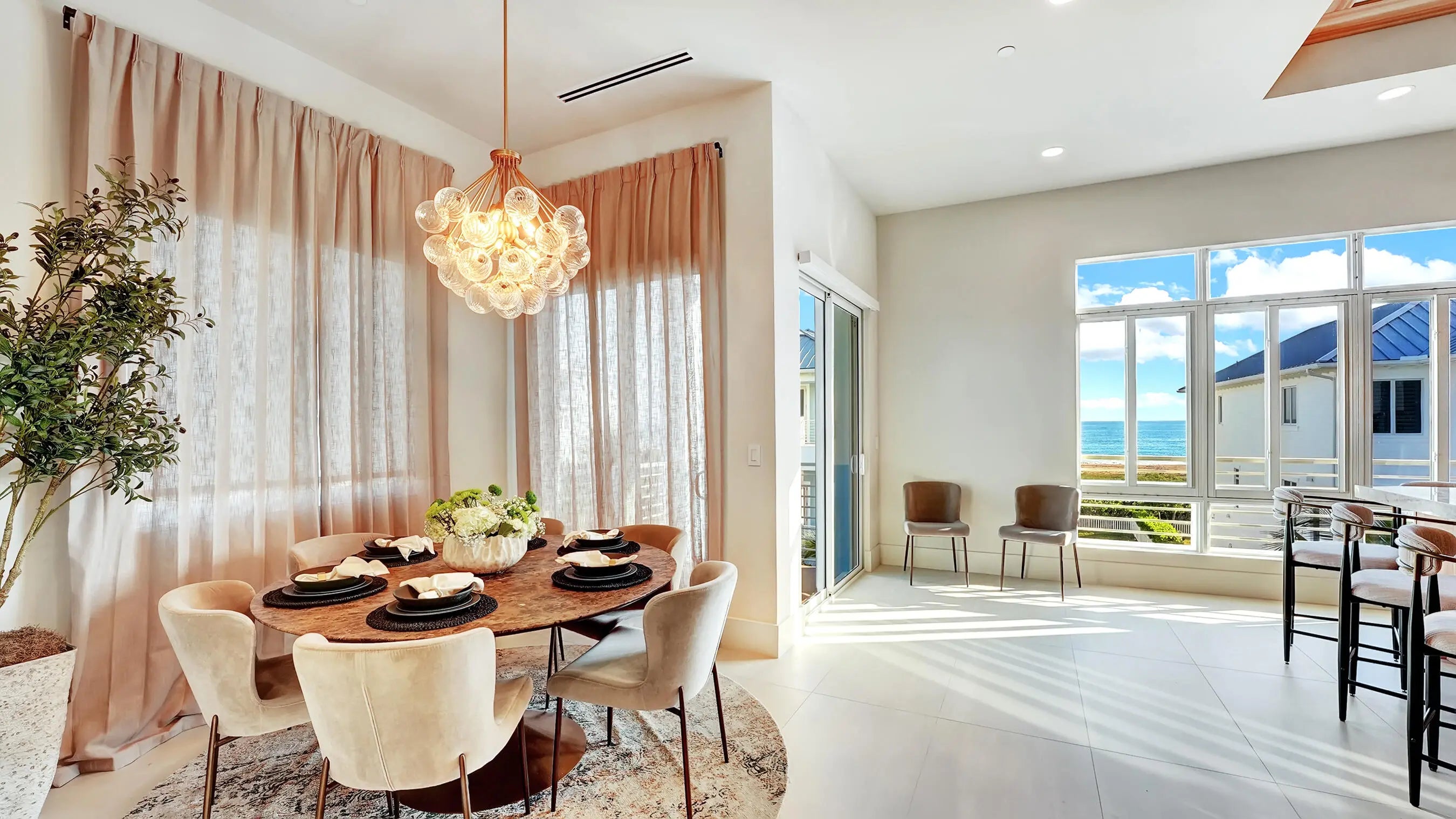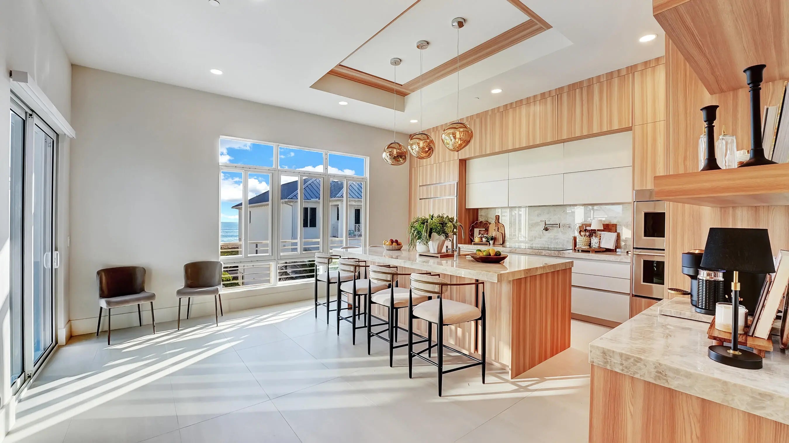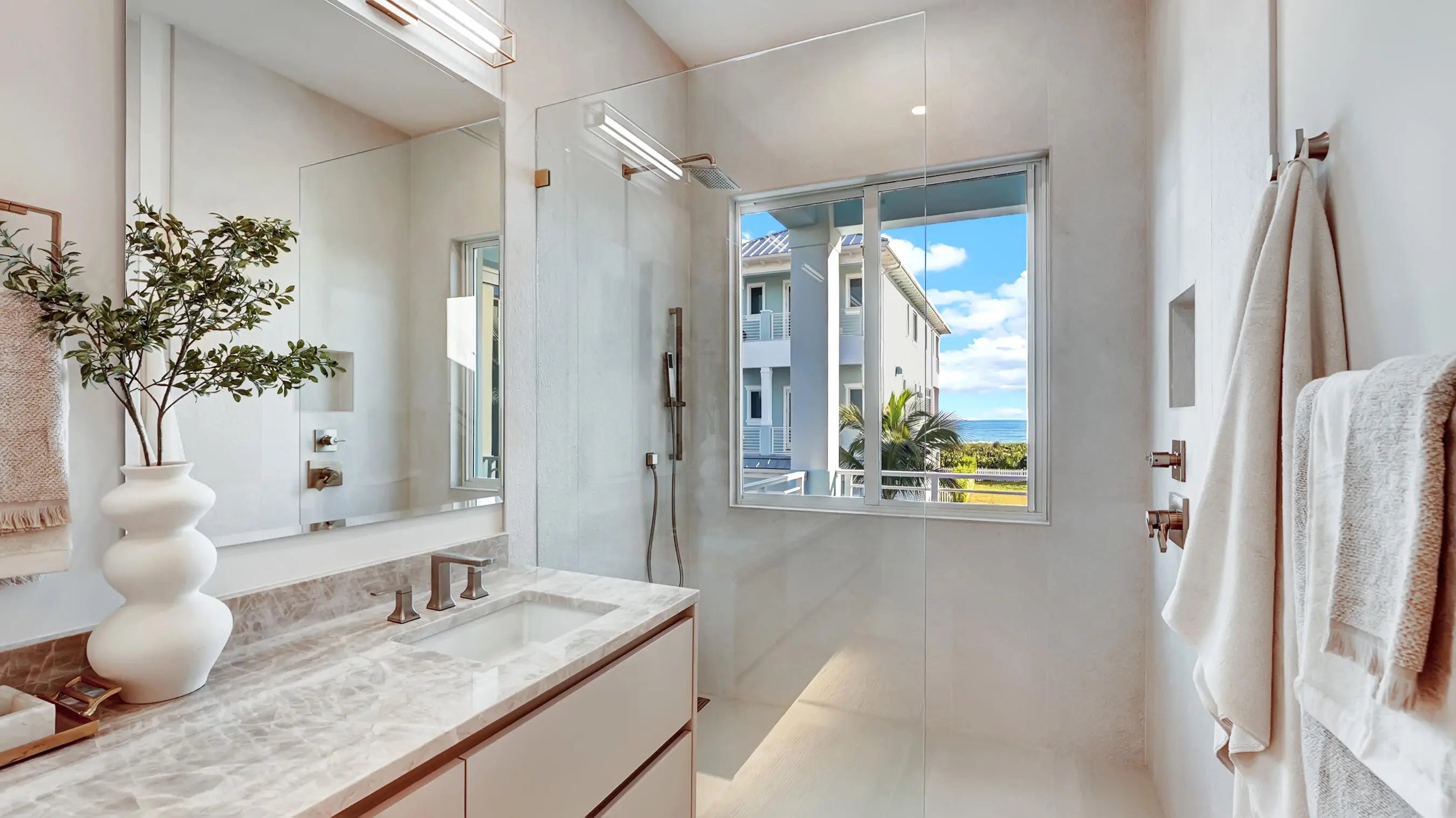 Set just steps from the sand, this newly built 2025 coastal home offers direct views of both the Atlantic Ocean and the Intracoastal Waterway. Designed with longevity and livability in mind, the home blends modern coastal architecture with practical, high-quality construction throughout.Hurricane-impact windows and doors span the residence, bringing in natural light while providing year-round protection and uninterrupted water views. The floor plan is efficient and well thought out, offering four bedrooms and three and a half bathrooms, with each bedroom featuring its own en-suite bath. Spaces flow naturally, making the home equally suited for everyday living or entertaining.