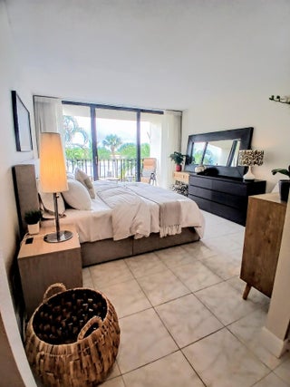 SHORT TERM ONLY- May 1st to December 1st 2026. Beautifully furnished/turnkey 1 bedroom, 1.5 bathrooms condo with stunning lake and pool views. The entire unit has been updated with modern/boho finishes. The kitchen offers new appliances and fully stocked with tools for all your cooking needs. The open concept bathroom is bright offering a tub/shower combo. Primary bedroom has King size bed with sliding glass doors that open to a covered balcony. The property offers a heated salt water pool, a clubhouse with a gym and full kitchen for rental, a BBQ area with plenty of seating room to entertain. Just bring your toothbrush and move in. SUPER fast approval.