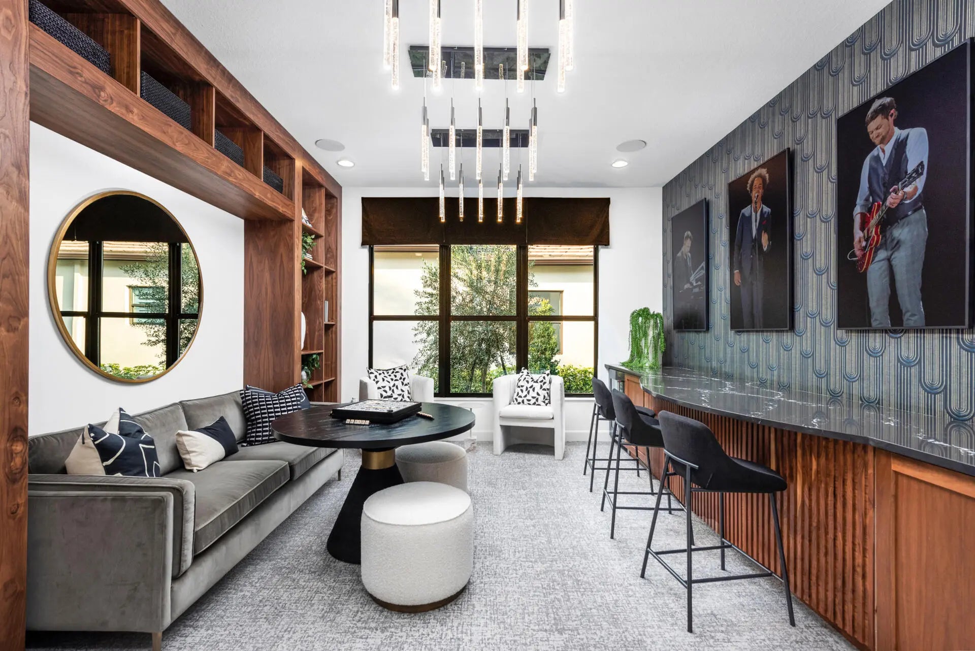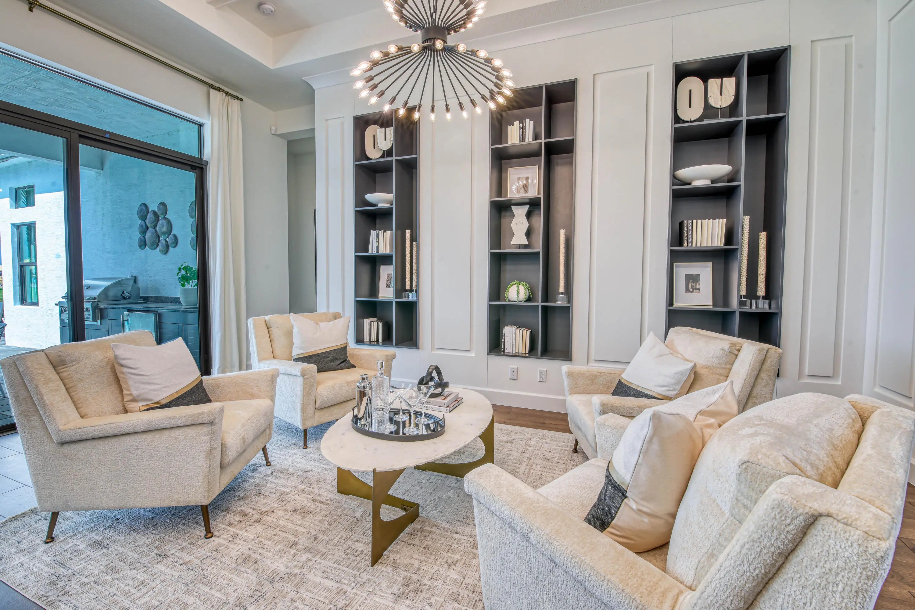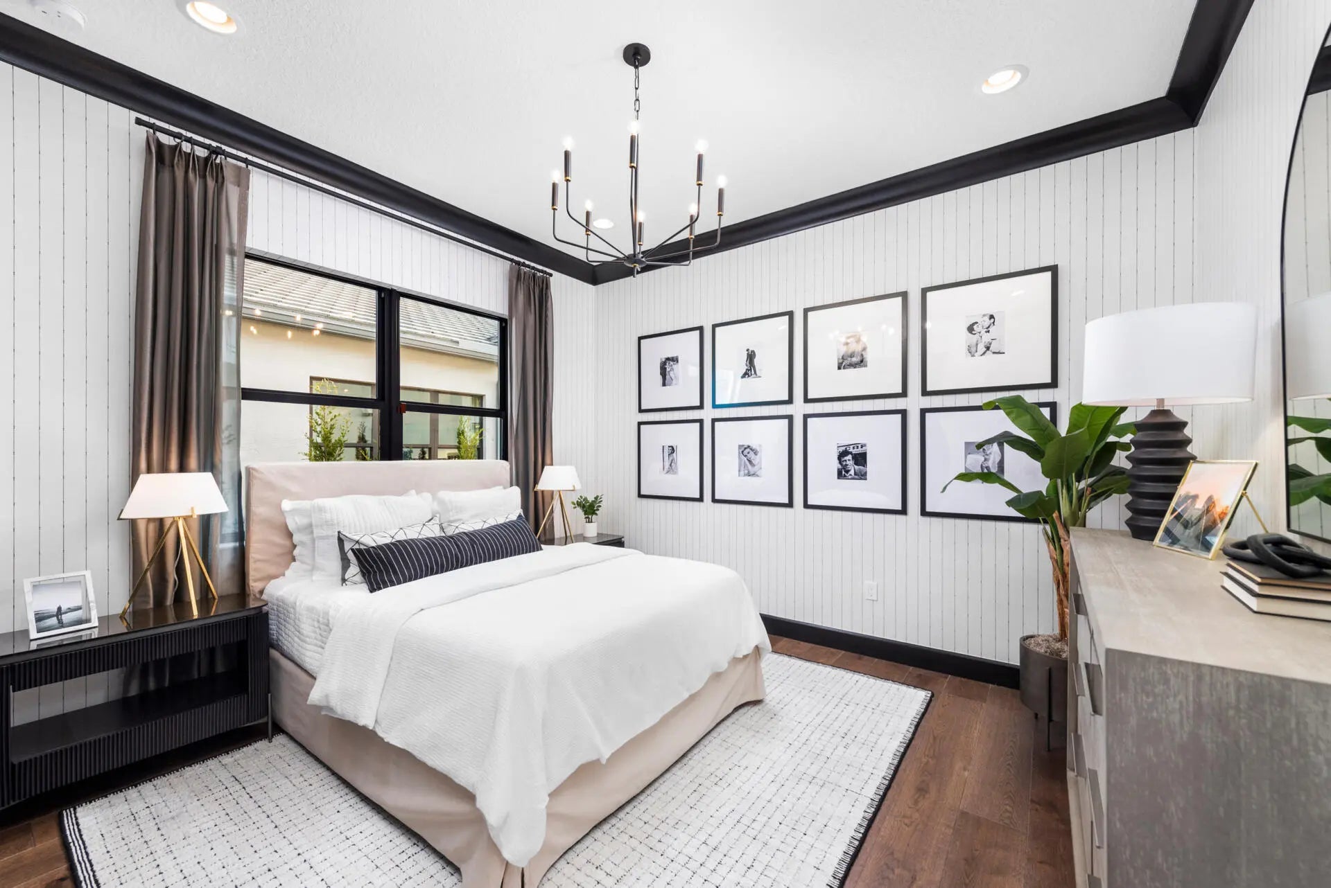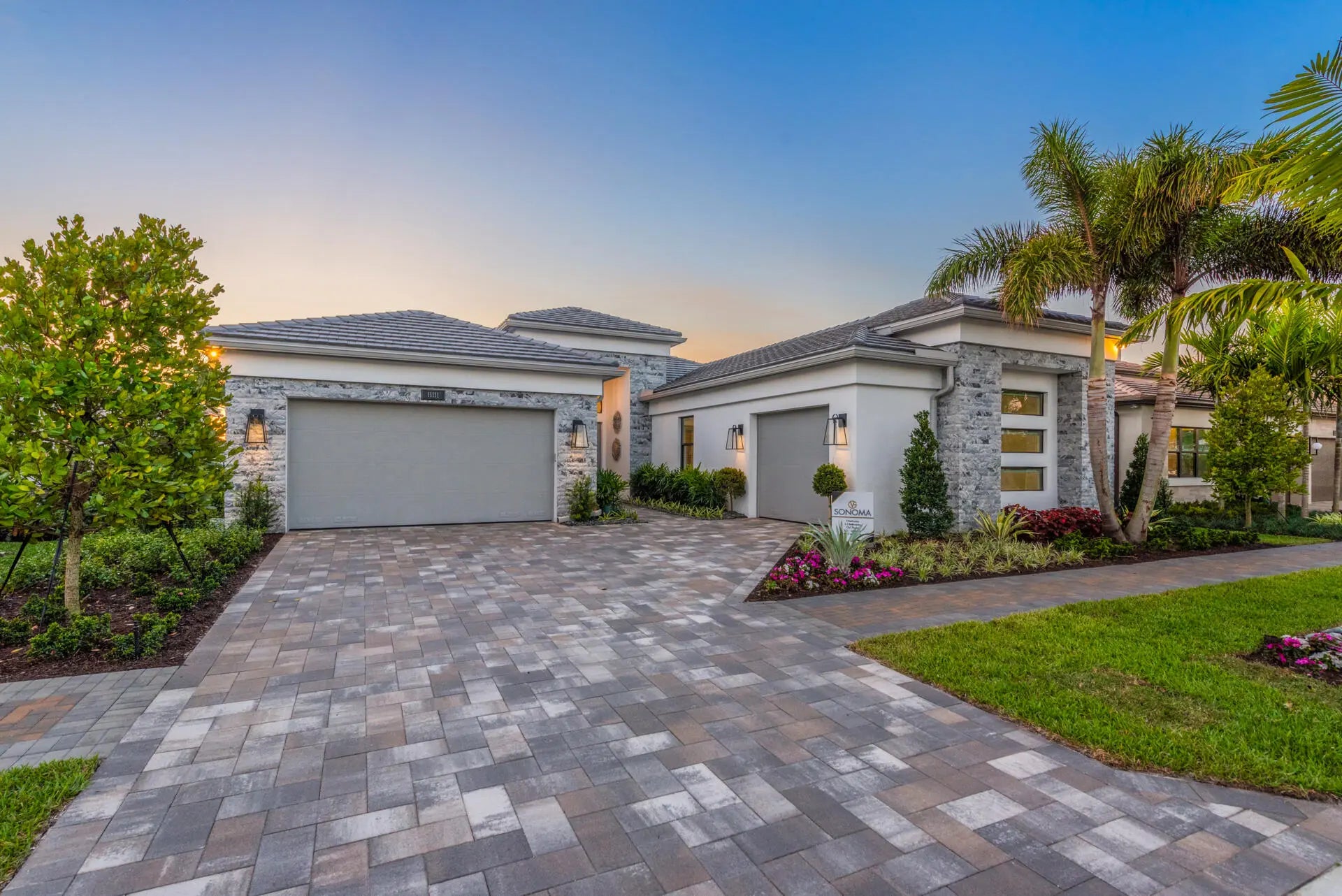 Fully-Furnished & Designer-Decorated Model Home with 3 Bedrooms, a Club Room, Family Room, Living Room, 3.5 Baths, Split 3-Car Garage, a Pool w/Sheer Descent and a Summer Kitchen on a stunning lakefront lot. The Sonoma model features 14-foot ceilings, rich engineered wood floors, a gourmet kitchen, with sleek matte black cabinetry, glass accents, a custom wood hood, and a 42'' built-in refrigerator. The primary suite features a floor-to-ceiling upholstered headboard, designer lighting, and a spa-style bath with a soaking tub. A stylish club room with custom built-ins and multiple TVs offers the perfect space for entertaining. Amenities include a full service restaurant, Indoor pickleball, 44,000 square foot clubhouse with a spa and salon, indoor/outdoor bar, multiple pools, tennis & more.