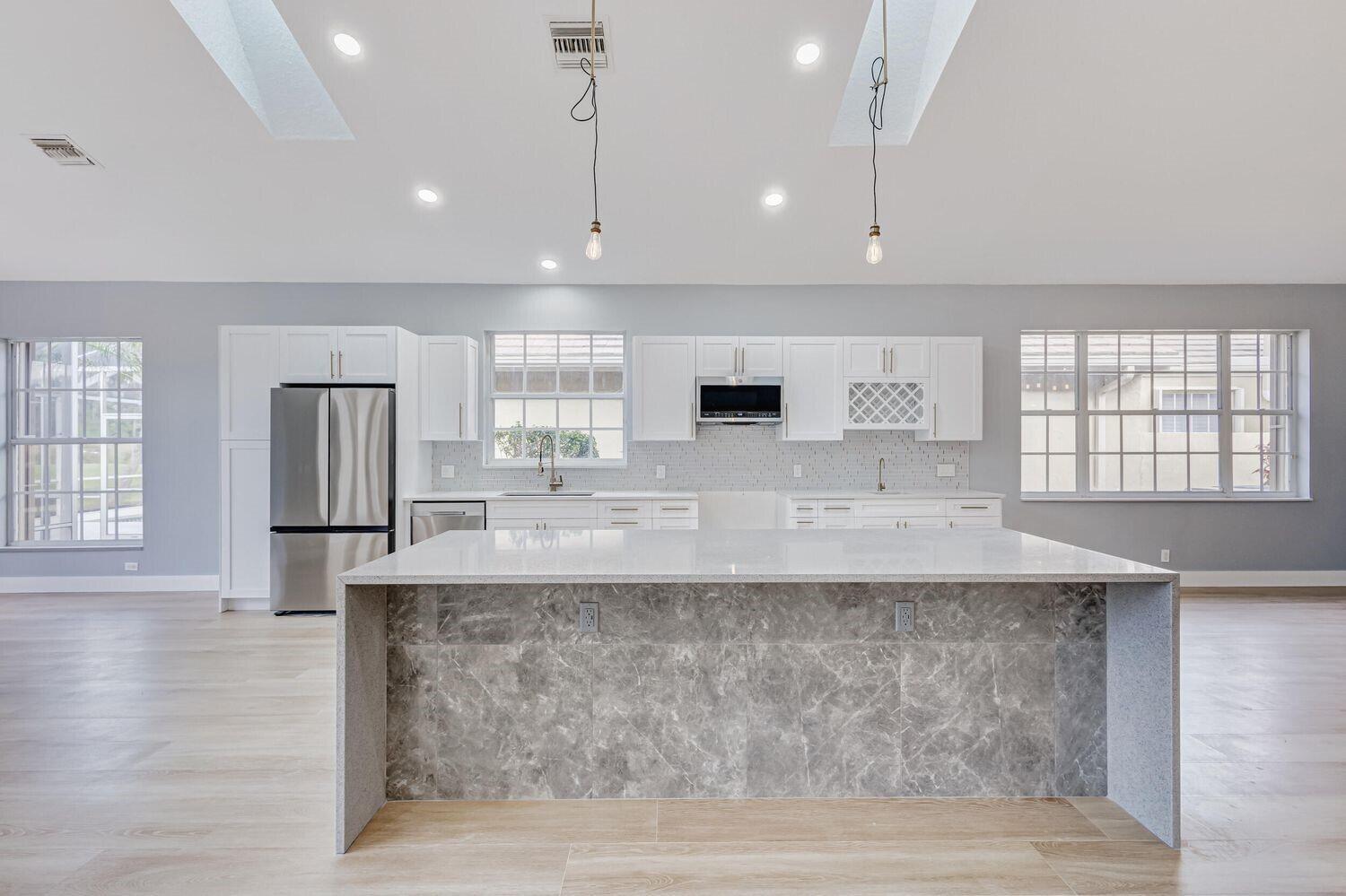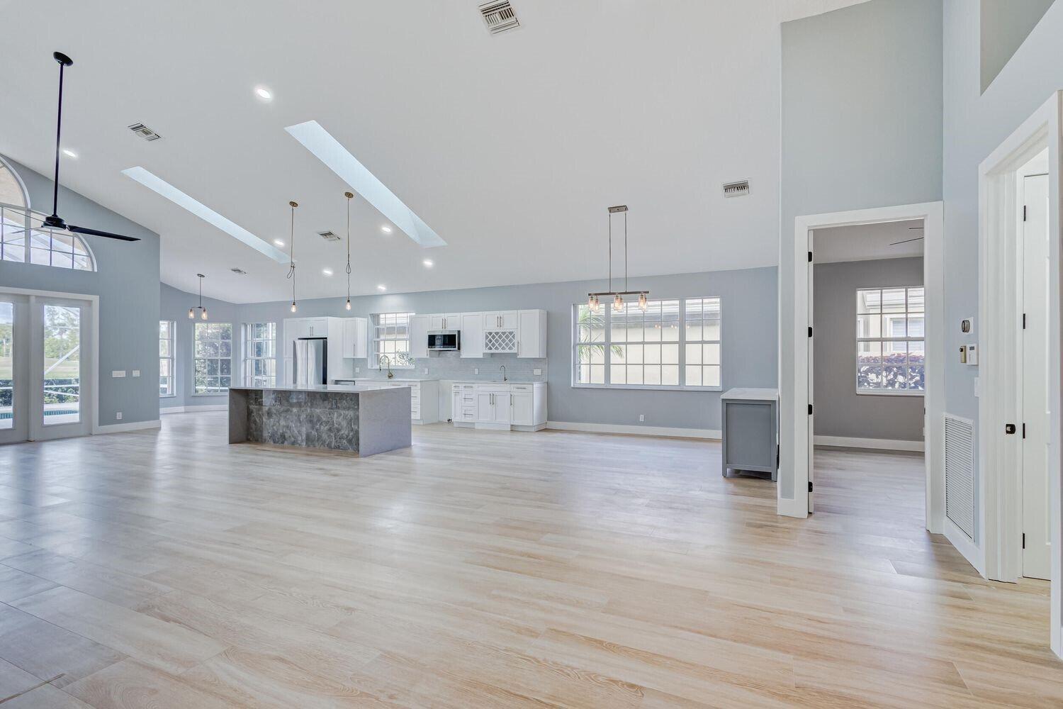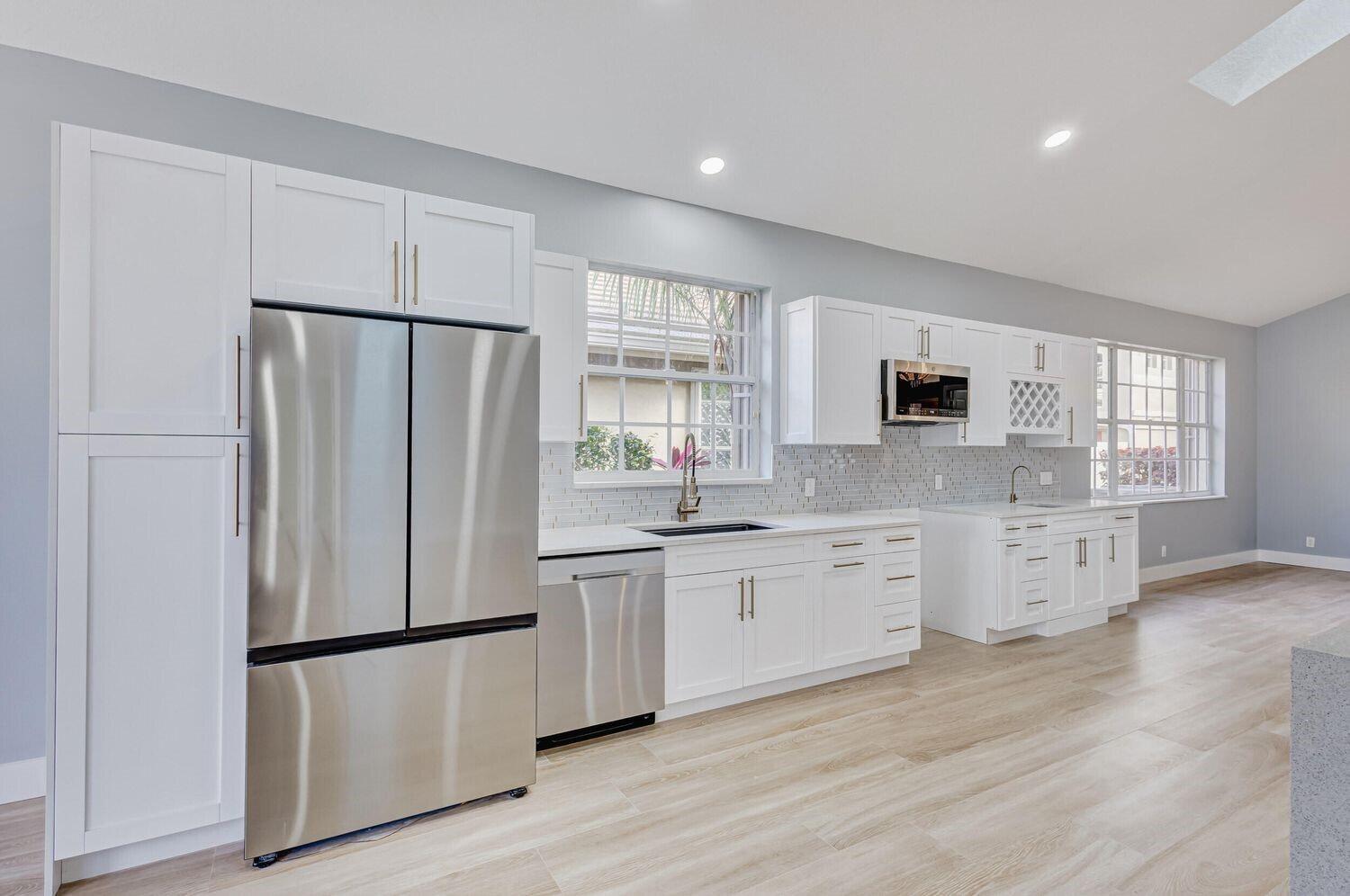 WELCOME to an expansive single-level newly renovated modern home w/ 4 bedrooms, 3 en-suite bathrooms (+ half bath). Includes screened, heated pool & spa located directly on the golf course w/ amazing sweeping lake & course views, + privacy landscaping. Everything is brand new including an amazing open kitchen w/ soaring ceiling, attached 2-car garage, stainless steel appliances, gas stove, wet bar, wine refrigerator & rack, ''spa-like'' master bathroom w/ powered lit mirrors, soaking tub, rainfall shower, heated towel rack & private water closet. Located in a private enclave inside of Ironhorse CC, a 24-hour guard gated community, offering endless nature, golf and lakes. Access to PGA National 5 Golf courses (pay as you play) & amenities included with the rental!