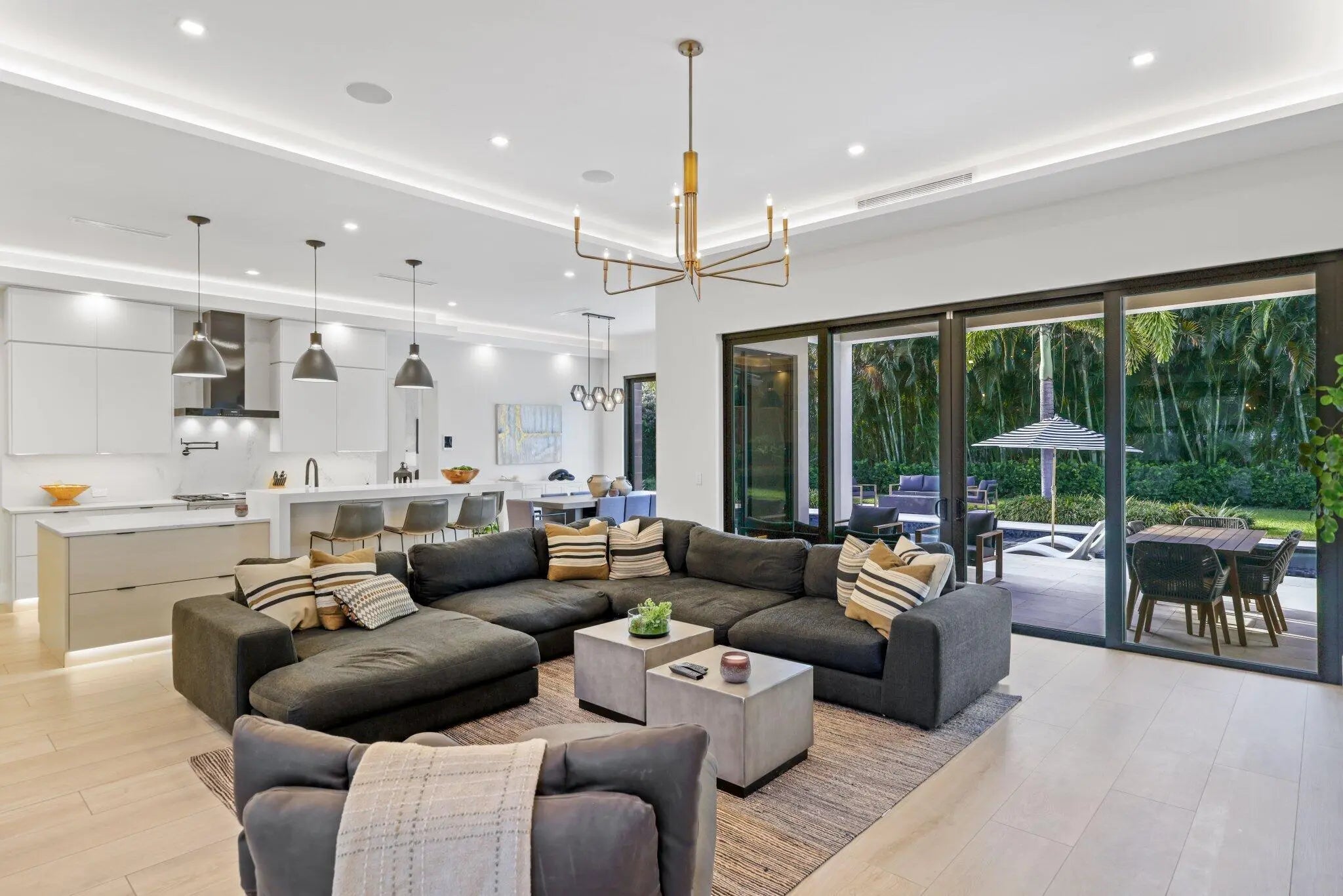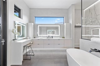 Introducing an extraordinary, one-of-a-kind custom residence conceived by acclaimed architect Richard Jones. From the moment you step inside, you are immersed in an unmatched sense of style and comfort. Every detail has been thoughtfully curated--from the exceptional layout to the architectural design and custom illumination--all set on an extended 12,000+ sq. ft. lot. This expansive residence offers five bedrooms plus an office/den, five full bathrooms, and one half bath. It showcases top-of-the-line finishes and features, including a whole-home generator, custom pool and spa with sun shelf, complete Aqualink pool automation and lighting, high-end Miele and Wolf appliances, FPU natural gas, security cameras, Sonos sound system, and custom Lutron lighting and automation throughout.