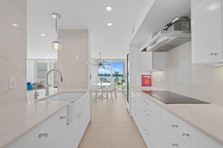 Directly across from The Four Seasons. A rare, fully renovated 3BD/3BA residence with direct Intracoastal views from all living areas & primary suite. The open kitchen features Thermador appliances, large wine fridge, & custom white cabinetry. Enjoy walk-in closets, motorized shades, impact glass, Sonos sound, & a 40-ft wraparound terrace ideal for entertaining. Third bedroom includes a queen Murphy bed. Two renovated cabanas. One poolside cabana & direct intracoastal cabana, available separately. The newly redesigned East Building lobby offers privacy with only 3 residences per floor. Cove amenities include a 75-ft resort-style pool, fitness center, club room, doorman, beach access with chair service, EV charging, & guest suite.Deeded beach access. Cove owners enjoy preferred pricing atThe Four Seasons Resort & Spa.