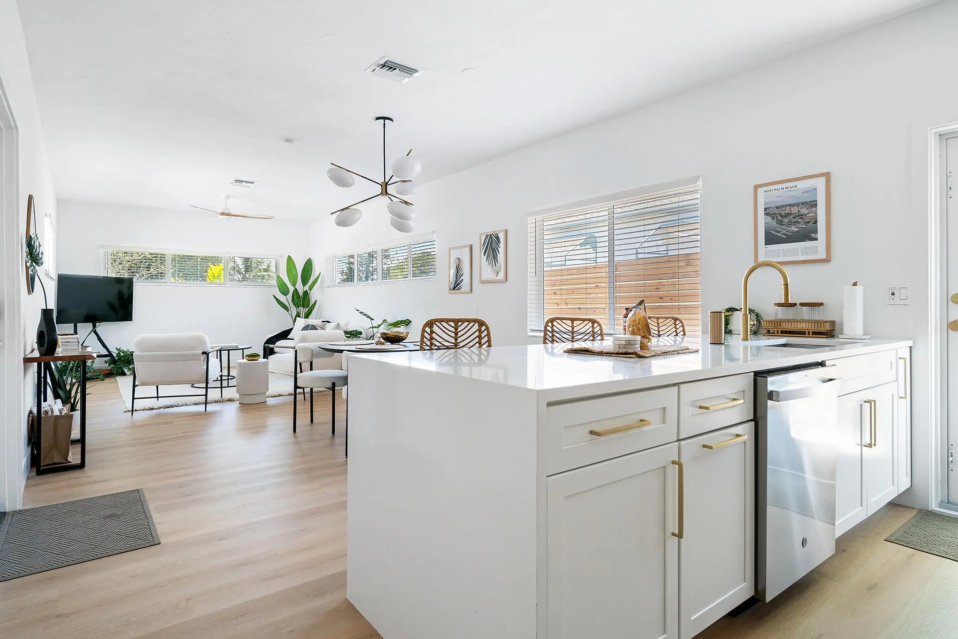 Beautiful fully furnished 3 bedroom 2 bathroom home located in the quiet Historic area of Northwood Hills. This charming 1956 Palm Springs style Mid-Century home has been COMPLETELY renovated, boasting brand new stainless appliances, wet bar, quartz countertops, washer/dryer, garage and fenced in yard. Situated on the highest point in West Palm, this Northwood Hills home is located just minutes from downtown West Palm and Singer Island
