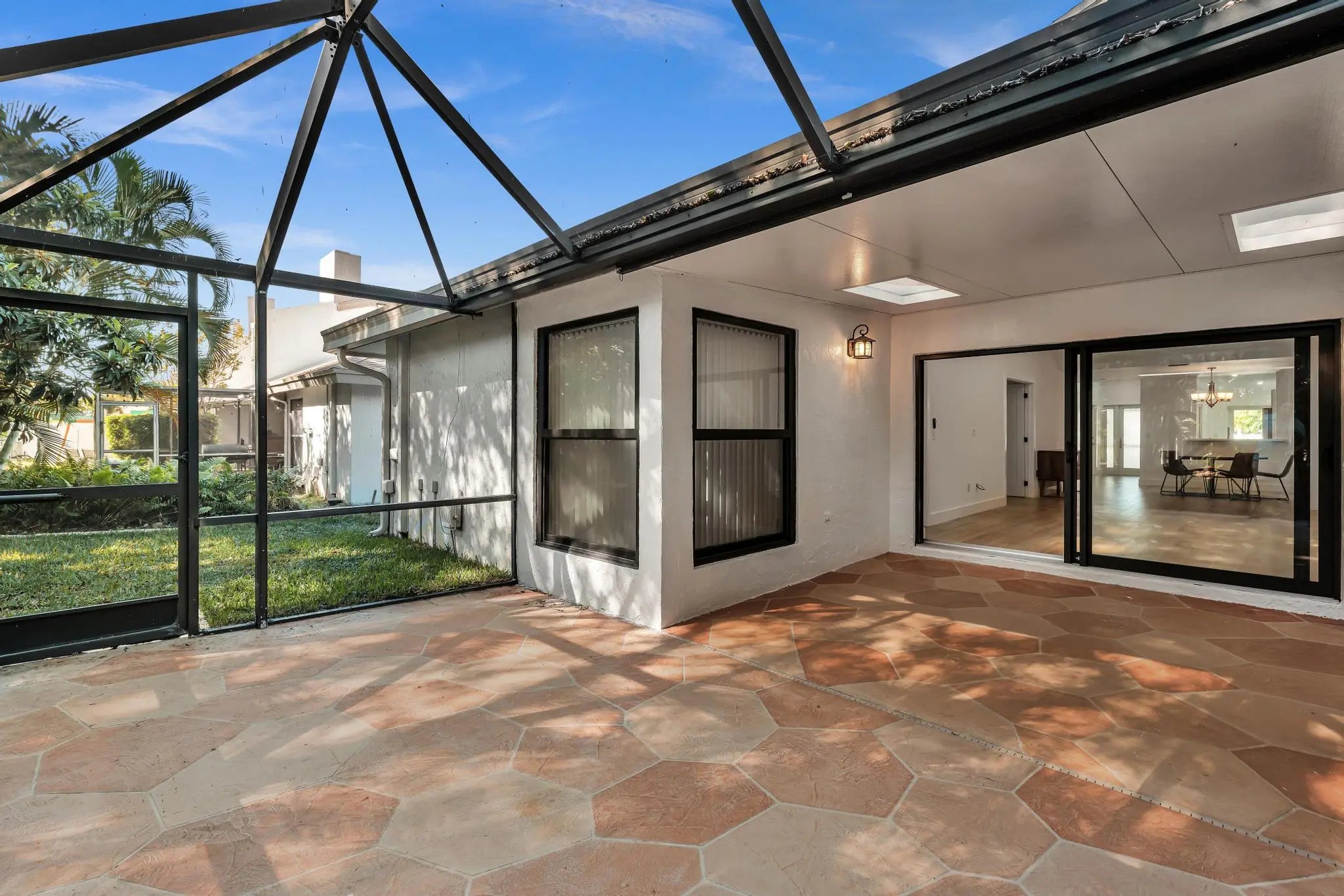 Great location with private and serene backyard. Newer roof replaced in November 2021.Kitchen, bathrooms, floors, ceilings, recently remodeled. Large screened back patio with 132 sf covered and 348 sf uncovered and screened. The slab was made to support two stories, if owner wishes to expand. Complete hurricane impact glass in all windows, sliders, and front door and hurricane rated garage door. Corner Villa with fenced front yard, side yard and fenceable back yard. HOA does yard maintenance and irrigation. Club house with heated pool, and kitchen. two tennis courts and basketballs hoop. Best schools in Boca including Verde K-8 and Boca Raton Community High. This is greater Boca Raton, so you have access to beaches, libraries, parks, etc.