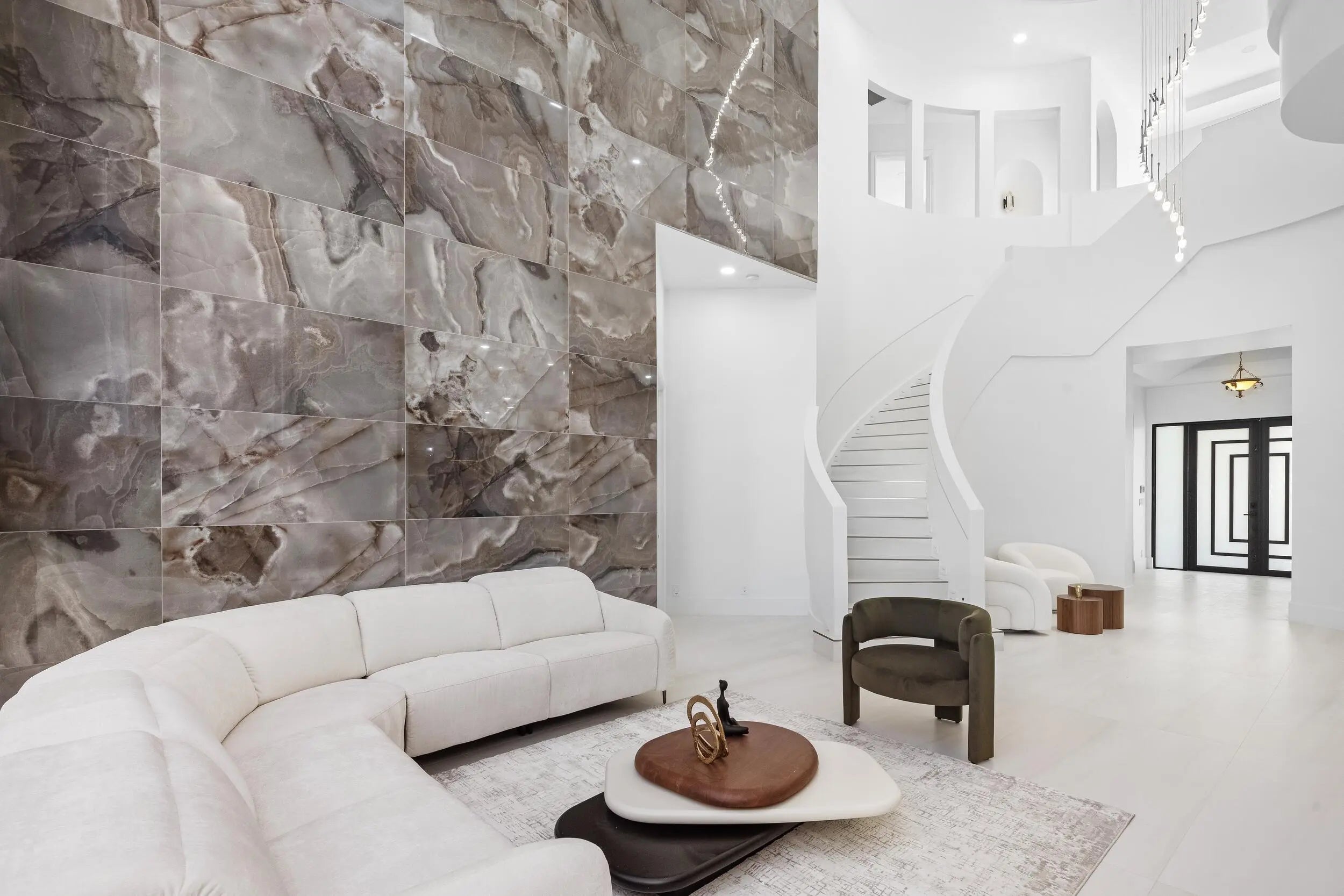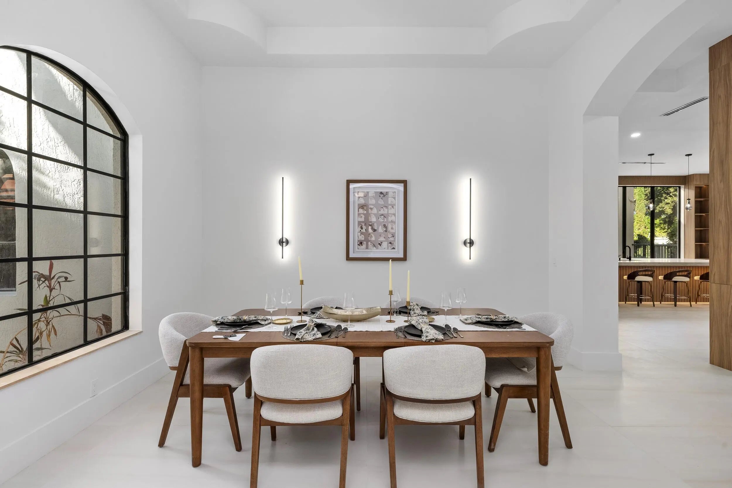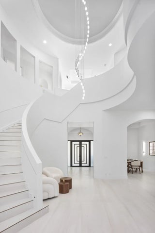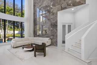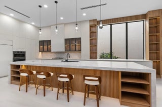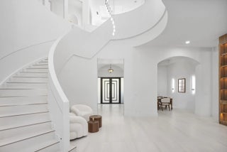 This classic Mediterranean estate in The Oaks has been completely reimagined, offering over 6,700 square feet of thoughtfully updated living space that blends timeless architecture with modern finishes. Featuring six bedrooms and seven and a half bathrooms, the home offers a clean, refined feel throughout.Natural light fills the residence, highlighting soaring ceilings and tile flooring that flow through the main living areas. The kitchen has been redesigned as a true focal point and features a striking fifteen foot Taj Mahal stone island, custom cabinetry, and high quality appliances.