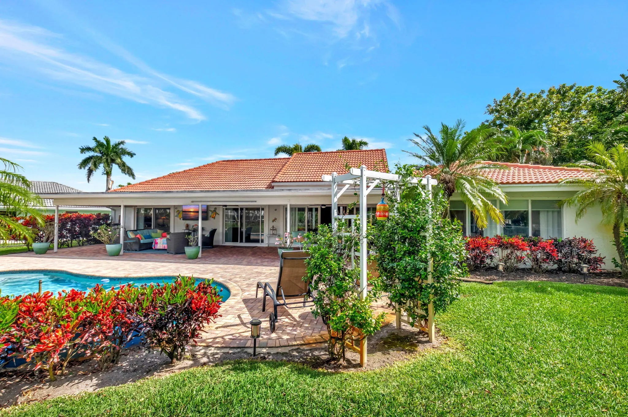 Beautifully updated in Delray Dunes. The 18 hole Pete Dye golf course was just fully renovated in 2024. The home was entirely renovated in 2013. With an expansive addition to the living room, the roof & partial trusses were removed in order to re-shape the roof line, and the living area ceiling height was raised to 10ft. The electric system was redone, along with a new panel & breakers. The A/C ducts were entirely redone during the addition, and a new unit was recently installed in 2022. Full hurricane impact windows overlook the covered patio area, along with the pool & hot tub. Enjoy a fully fenced yard, on the over-sized lake front lot. The all age community offers golf & tennis, a gym, a resort style pool & bar, along with indoor and outdoor dining at the clubhouse.