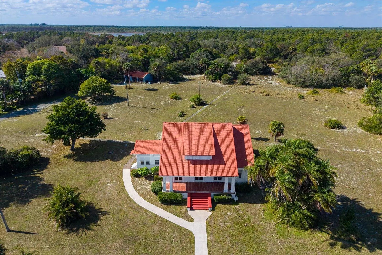 This 1922 iconic beauty is a landmark to many. Once a pineapple plantation, this stately home overlooks the beautiful Indian River and boasts 13.88 acres. Made with Miami Dade pine and beautiful plaster walls and precious wood floors, gorgeous stained glass interior doors, volume ceilings and the awesome woodwork of Pennsylvanian artists. The barn is part of the property made also of Miami Dade pine. This beauty will welcome a family with a total of 6 bedrooms 3 1/2 baths and so much living spaces throughout the home.