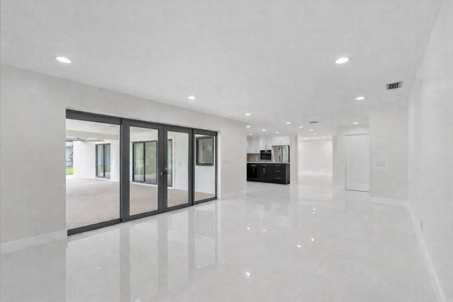 Welcome to the City of Atlantis. Set on a spacious .32-acre canal-front lot, this residence offers a rare combination of space, privacy, and opportunity in one of Palm Beach County's most distinctive communities.The home has already undergone a meaningful transformation, with walls removed to create an open main living area, new flooring installed throughout, an updated kitchen, and renovations to several bathrooms--providing a strong foundation for a buyer ready to bring the vision to completion. The kitchen features updated cabinetry and finishes, with a range in place and space ready for refrigerator selection to suit your preferences. A three-way split floor plan enhances privacy, while new impact sliders span the rear of the home, creating a seamless indoor-outdoor connection.The expansive covered and screened enclosure offers a saltwater pool, generous green space, and an outdoor kitchen area with existing water hookup and pass-through window providing a strong framework for future enhancements while enjoying tranquil canal views. The four-bedroom, three-bath layout is both functional and flexible. The primary suite offers two walk-in closets, a linen closet, a large soaking tub, and a separate shower, allowing ample space to design a personalized retreat. Additional highlights include a circular driveway and a two-car garage with an epoxy-coated floor. Life in the City of Atlantis feels like stepping back in time where neighbors wave, children ride bikes through the community, and residents truly know one another. This non-mandatory membership, country-club lifestyle community is home to two award-winning golf courses and a vibrant calendar of events, including Spring Fling, Independence Day fireworks, a Halloween celebration, a Christmas golf-cart parade, and the beloved annual Christmas tree bonfire. Kintz Park offers pickleball, tennis and basketball courts, a pavilion for gatherings, and a children's water park. The city is self-contained, with its own city hall and police department, and is conveniently located just minutes from Palm Beach International Airport. With its generous lot, thoughtful improvements, and unmatched sense of community, this property presents a unique opportunity to customize and create in one of South Florida's most charming and active neighborhoods.