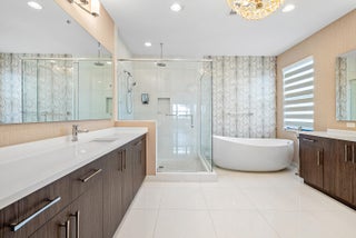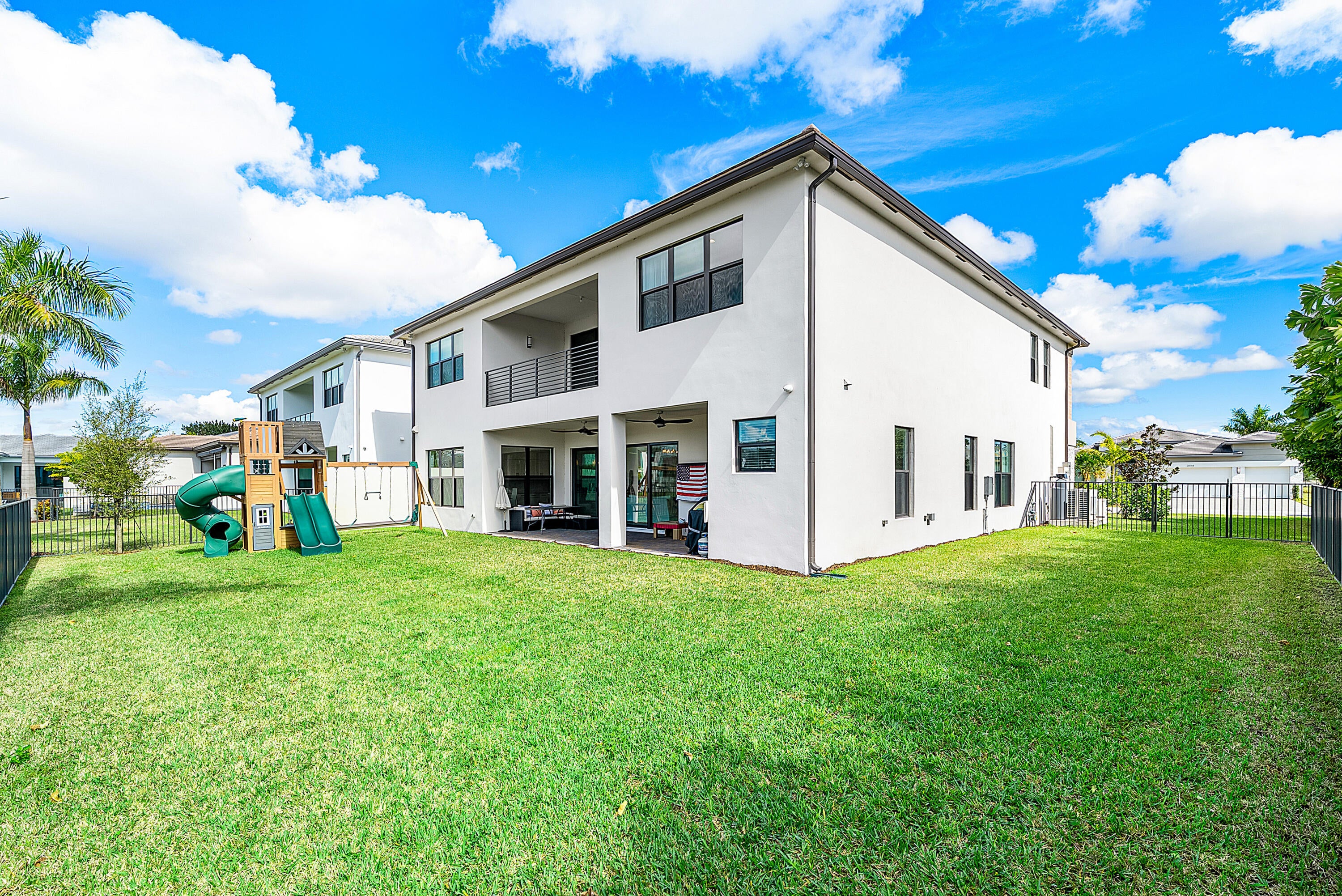 Set on an exceptionally rare oversized lakefront lot with long, unobstructed water views, and coveted western exposure, this remarkable estate offers a level of privacy, scale, and sunset living seldom found in Lotus Palm. This lot is one of a kind here in lotus palm. Framed by a lush, mature vegetation wall, the property feels like a secluded sanctuary while being located within one of Boca Raton's most prestigious gated communities.The 5-bedroom, 6-bath residence showcases light-filled interiors, soaring ceilings, and a seamless open-concept design ideal for both refined entertaining and luxury living.High end flooring runs throughout, complemented by custom closets in every bedroom, media room, office, and both garages, epoxy-finished garage floors, and elegant Banjo countertops in each bathroom. A curated suite of upgrades includes a 26kW whole-house generator, full Culligan water filtration with reverse osmosis, three-zone smart HVAC, wired 24/7 security cameras, and electric roller shades throughout. The home is fully integrated with a Sonos smart-audio system, featuring speakers in the kitchen, game room, primary suite, and primary bath, with wiring in place for the dining and living rooms. Designed for future resort-style outdoor living, gas and electric are pre-wired for a pool and summer kitchen. The expansive backyard, currently enhanced with a KidKraft playground, overlooks tranquil lake views and dramatic western sunsets. Lotus Palm itself is one of Boca Raton's most prestigious communities, defined by its grand entry, manicured streetscapes, and five-star clubhouse. Residents enjoy a full-service restaurant and café, multiple resort-style pools, state-of-the-art fitness center, spa facilities, tennis and pickleball courts, basketball, playgrounds, and an active social calendar that rivals private country clubs without the burden of a mandatory membership. The community is zoned for A-rated schools and is ideally positioned with quick access to the Florida Turnpike in under five minutes and I-95 in under eight minutes, offering unmatched convenience for commuting, travel, and everyday living. This is not simply a home it is a rare convergence of a premier oversized lot, extensive high-end upgrades, exceptional privacy, and true resort-style living in one of Boca Raton's most sought-after addresses. Opportunities like this, on lots of this caliber, come to market only rarely in Lotus Palm.