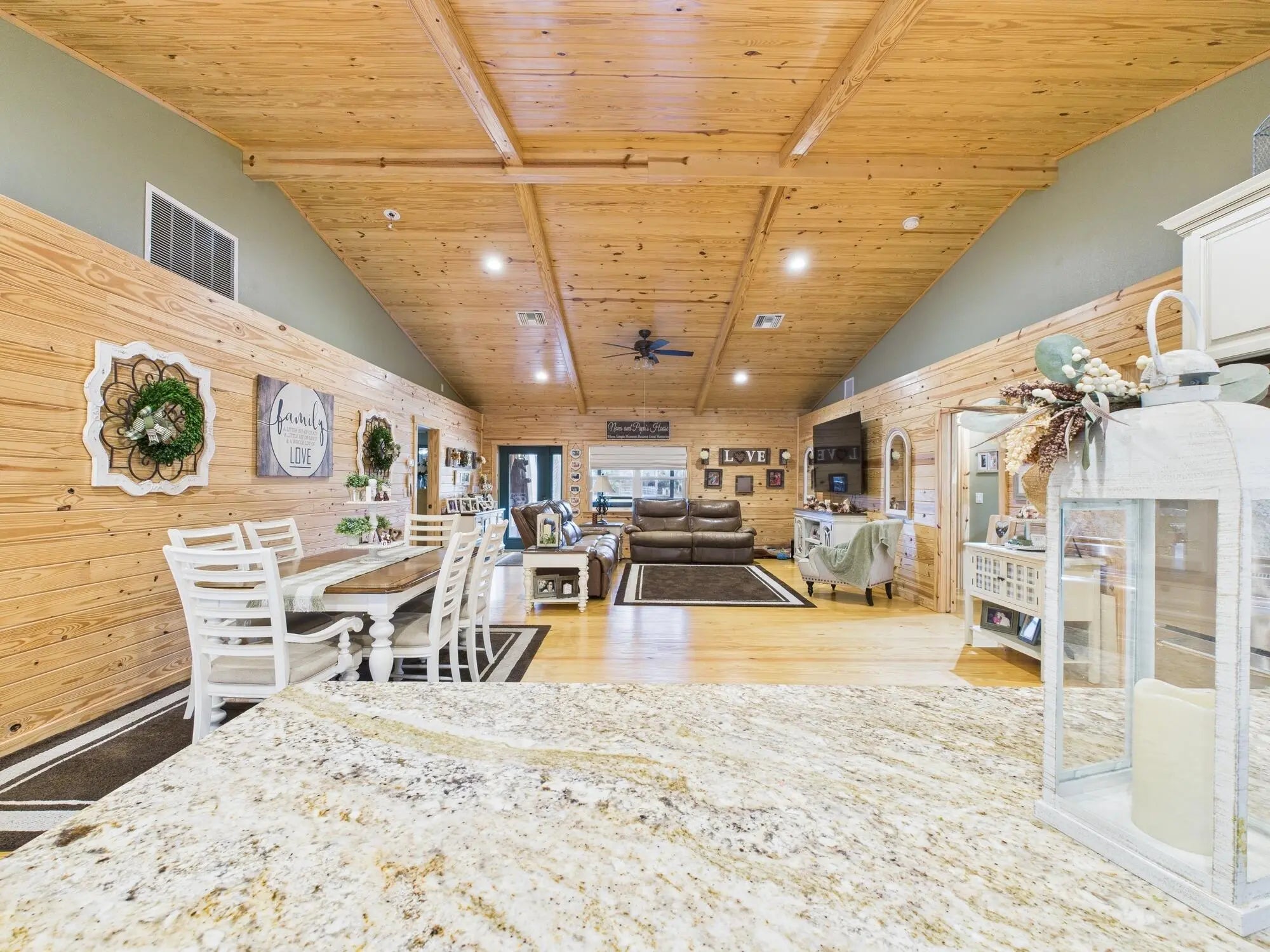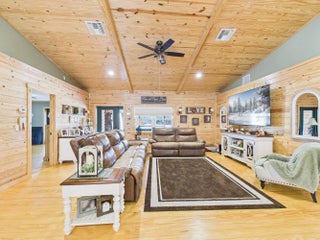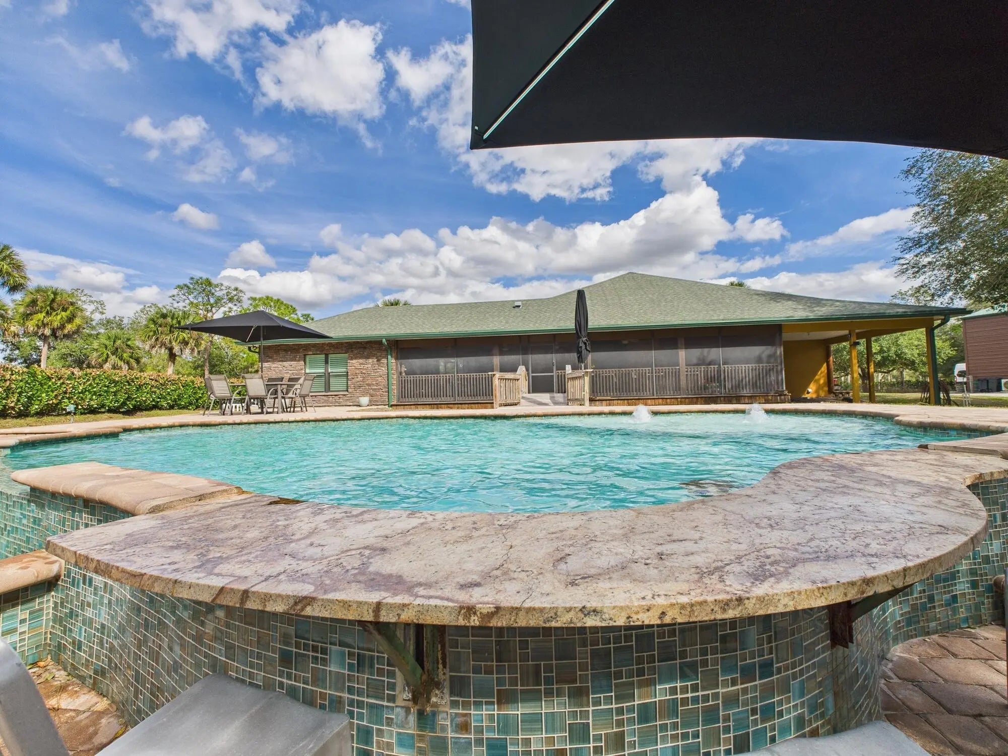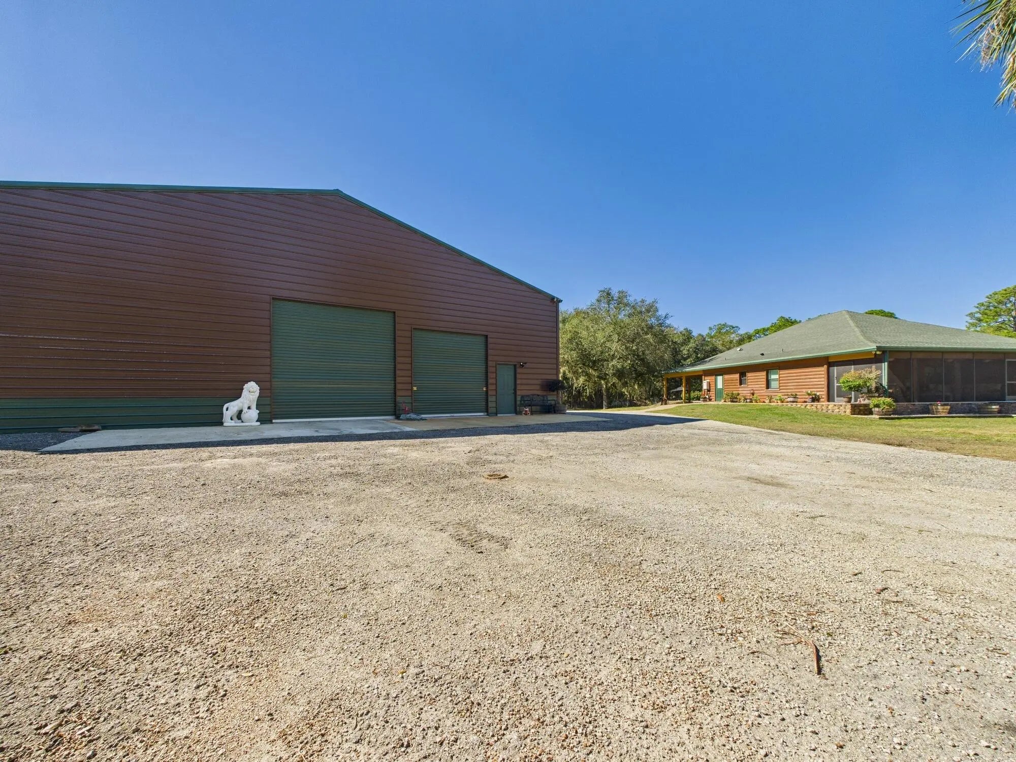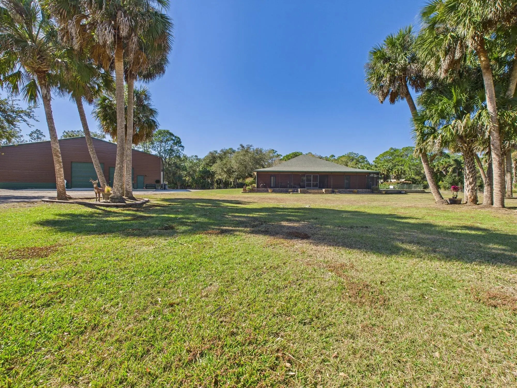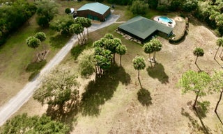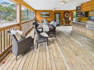 Exceptional luxury in Indian Hammock Hunt & Riding Club. This newer custom CBS residence is wrapped to resemble a log cabin and offers 3BR/3BA with a private guest suite and full wraparound porch. Resort-style living continues outdoors with a bridge-entry pool featuring waterfall, swim-up bar and pedestals, plus a chef's outdoor kitchen. Interiors showcase tongue-and-groove ceilings, hardwood floors, disappearing corner sliders, a butler's pantry and handcrafted granite throughout. Whole-house Generac generator with 1,000-gal propane tank. The 60x40 garage/workshop includes a 12x20 office with custom granite desk and cabinetry. Community perks include airstrip, hunting, equestrian trails, fitness center, pool and restaurant--an estate-level retreat at $1.3M.
