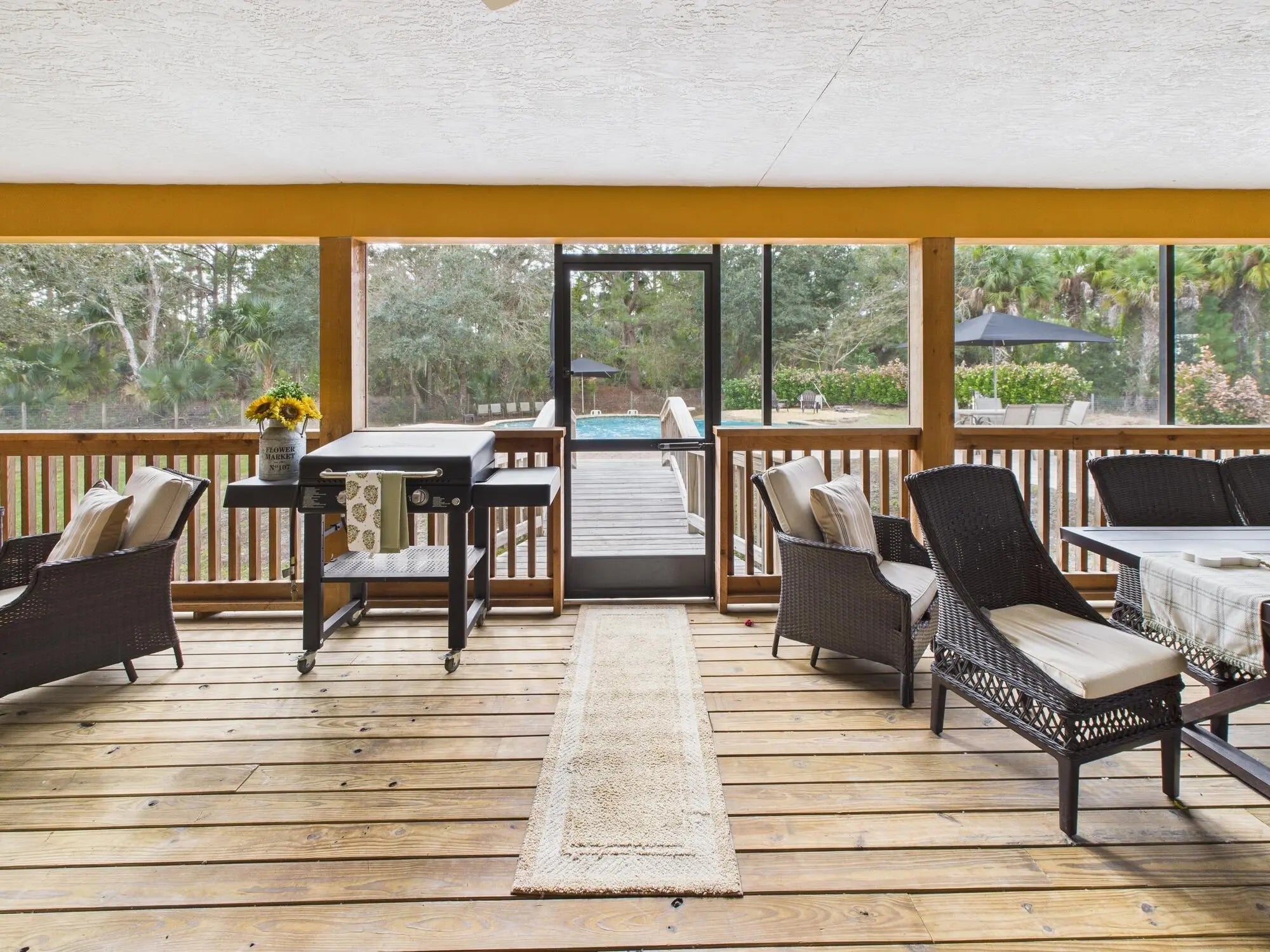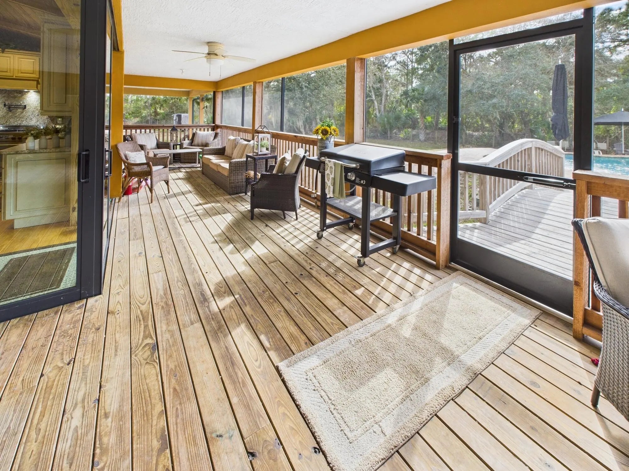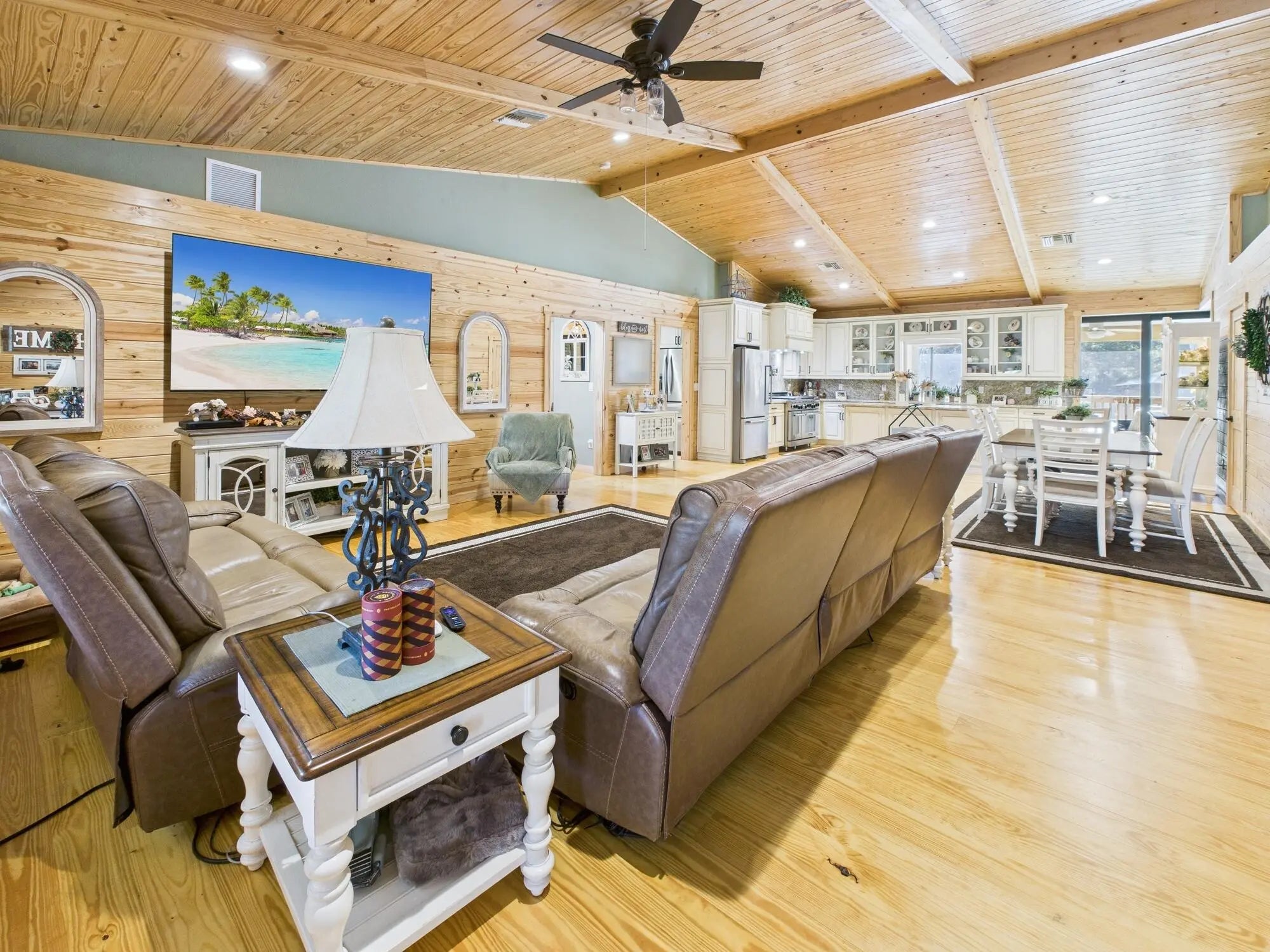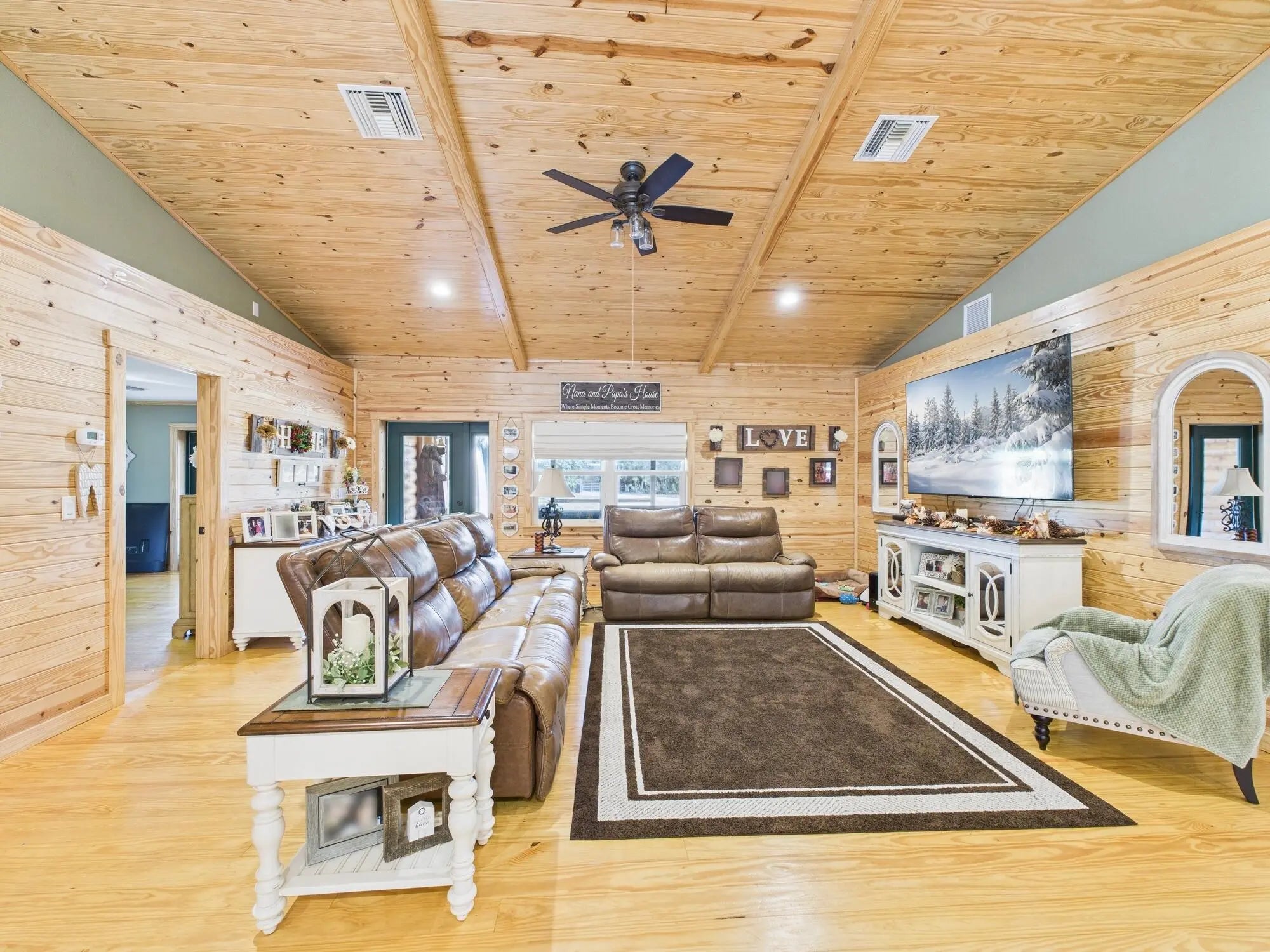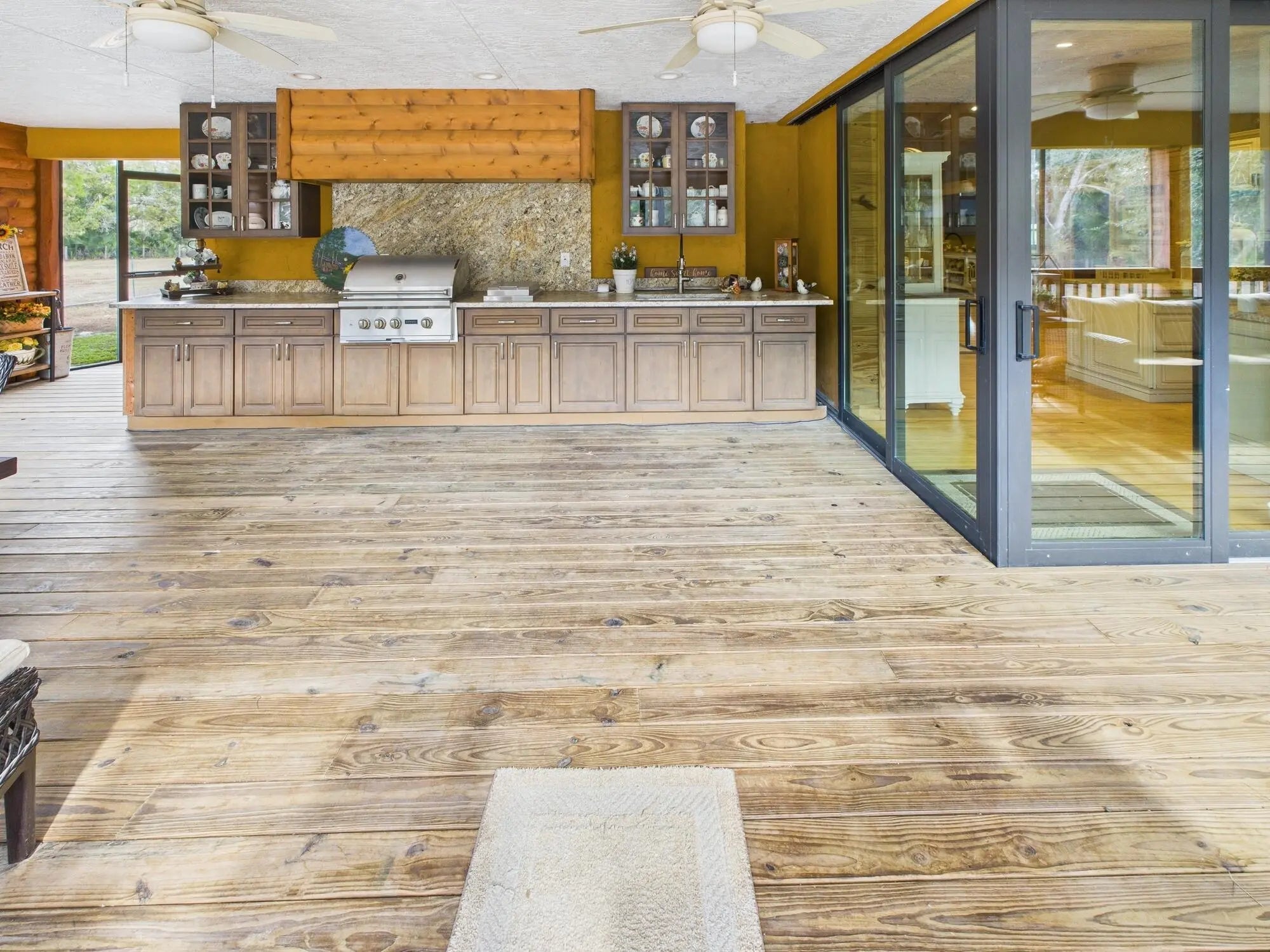 Exceptional luxury in Indian Hammock Hunt & Riding Club. This newer custom CBS residence is wrapped to resemble a log cabin and offers 3BR/3BA with a private guest suite and full wraparound porch. Resort-style living continues outdoors with a bridge-entry pool featuring waterfall, swim-up bar and pedestals, plus a chef's outdoor kitchen. Interiors showcase tongue-and-groove ceilings, hardwood floors, disappearing corner sliders, a butler's pantry and handcrafted granite throughout. Whole-house Generac generator with 1,000-gal propane tank. The 60x40 garage/workshop includes a 12x20 office with custom granite desk and cabinetry. Community perks include airstrip, hunting, equestrian trails, fitness center, pool and restaurant--an estate-level retreat at $1.3M.