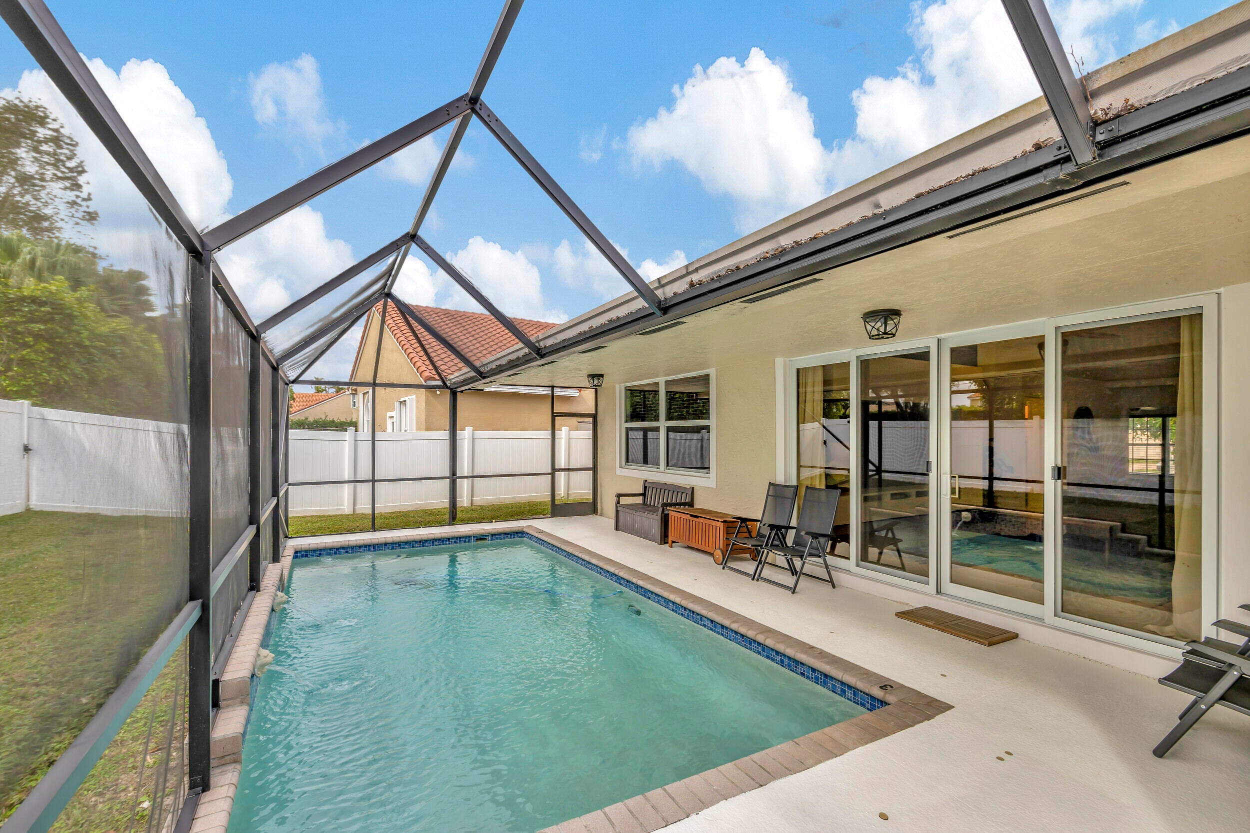Gorgeous single-family home in prestigious Boca Vista situated on a 9,335 sq ft private lot. Ideal open floor plan with abundant natural light, split bedrooms, and an upgraded kitchen centrally located for effortless entertaining. Features oversized countertops, custom cabinetry, and newer stainless steel appliances. Hurricane impact windows, doors, and garage door. Fully upgraded bathrooms. Spacious primary suite with walk-in closet plus additional closet space, and a primary bath with double sinks, separate shower, and custom soaking tub.Private covered patio overlooks a resort-style backyard with saltwater pool and extra green space, perfect for pets, play, and entertaining. Two-car garage plus double driveway. Highly desirable Boca Vista community offering amenities including community pool, tennis, pickleball, basketball courts, and playground, all within walking distance. Conveniently located near major highways, schools, shopping, houses of worship, library, Town Center Mall, Uptown Boca, fine dining, and approximately 20 minutes to Mizner Park and beaches. Call today to schedule your private tour!