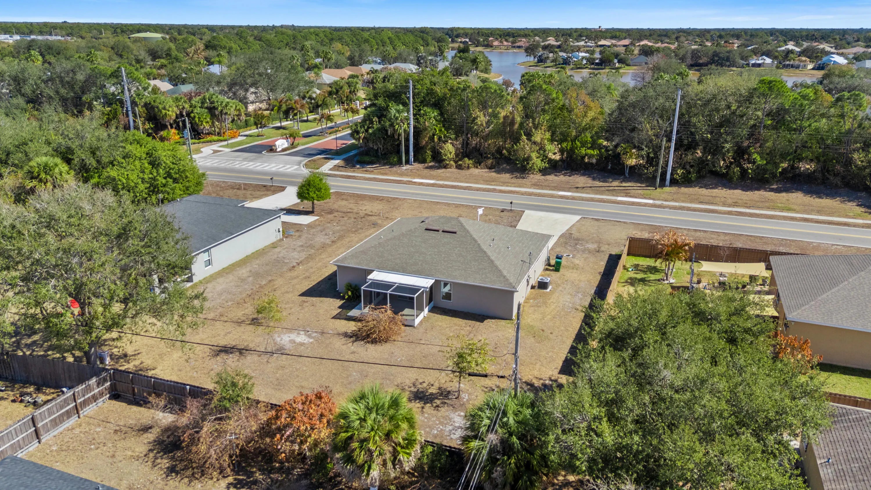 Price improvement! Nearly-new beautiful 3/2/2 with flex space and split floor plan with separate dining, oversized primary bath, walk-in closet, and dedicated laundry. Built in 2023 with transferable 10 year builder structural warranty. Extra parking plus screened front and rear porches. Spacious lot with no HOA. Prime location between I-95 and the Turnpike--minutes to beaches, parks, shopping, dining, and more. Right on Darwin for super fast access to the highway for commuters. Main road visibility for home-based business operators.