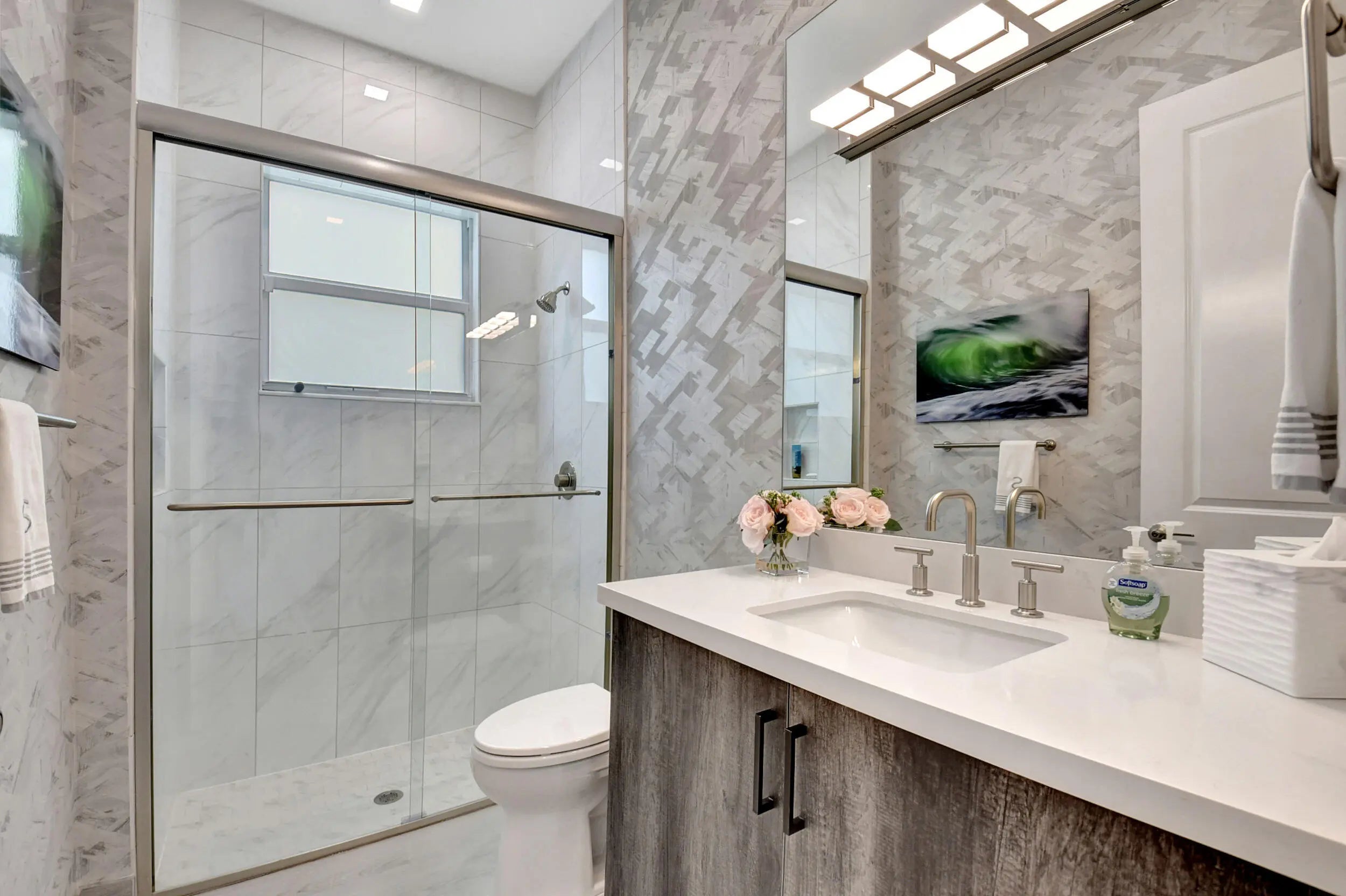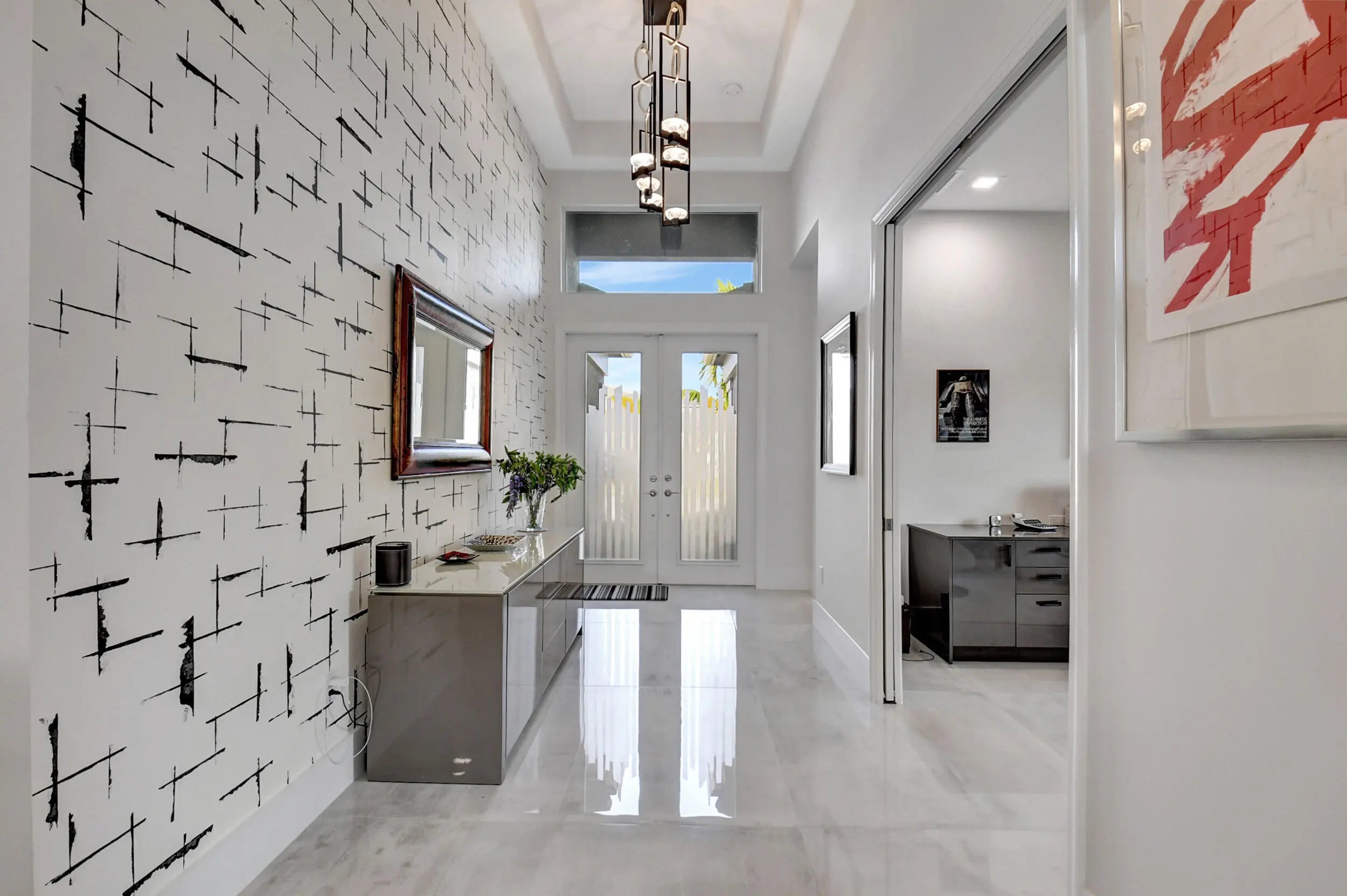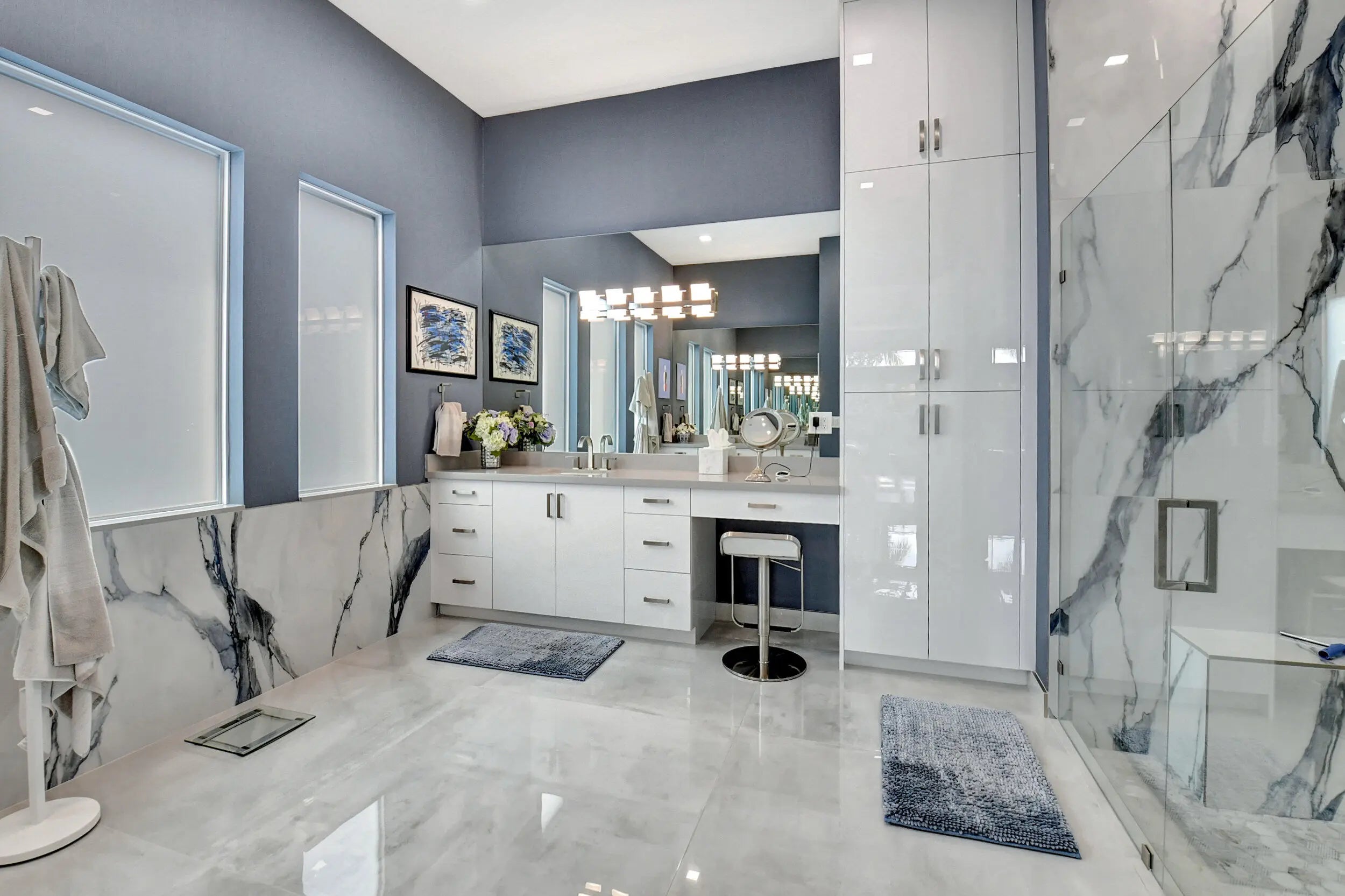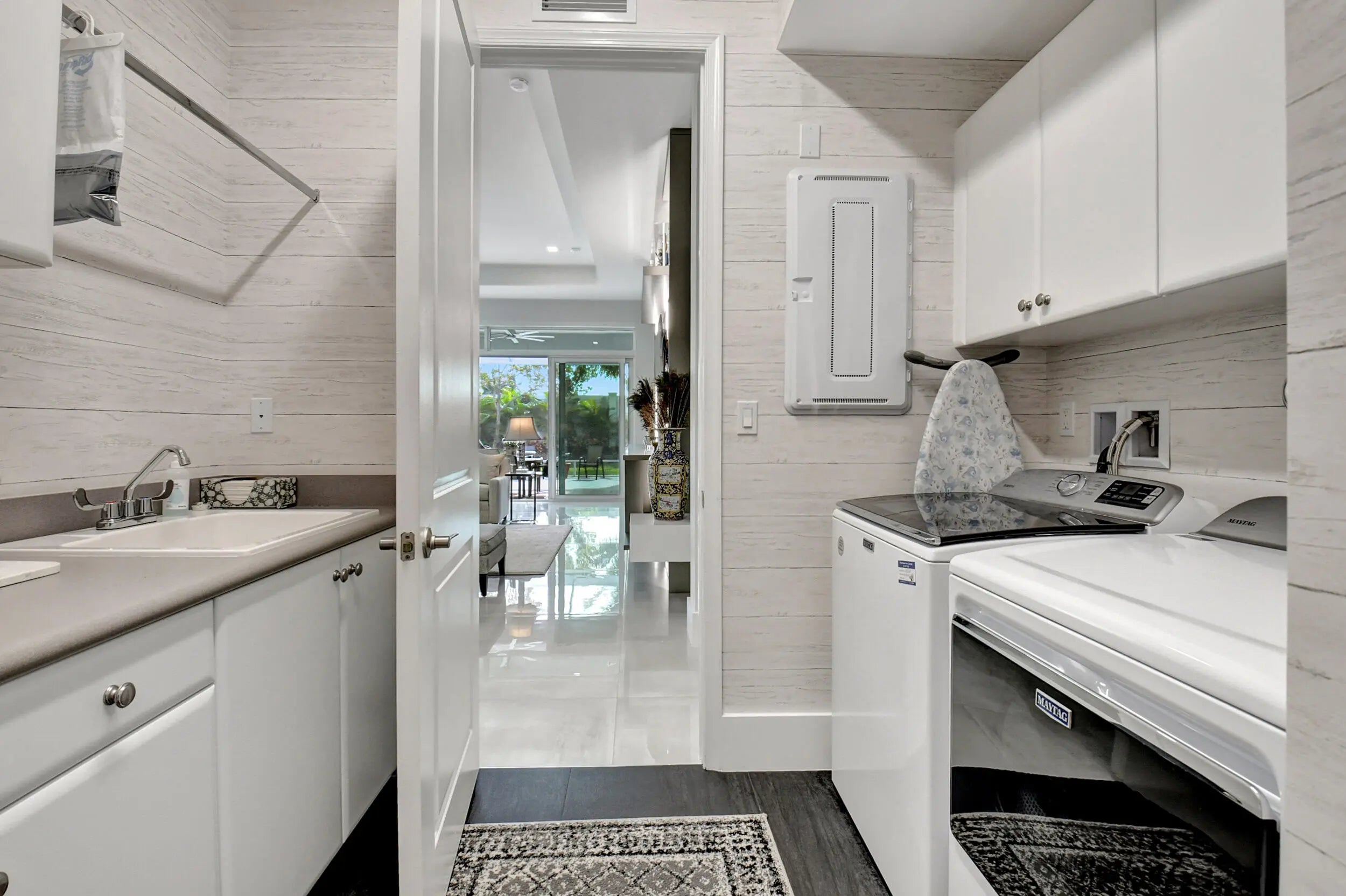 Paradise Unparralled Awaits you! Welcome to your stunning 3 bd/3 1/2 bath, plus office/den, 3 car garage, corner lot, expanded Jade model in Valencia Sound. This vibrant 55+ resort community just a few miles from the beach offers an array of amenities with pickleball courts, pools, tennis courts and a 40K Sq Ft club house complete with restaurant, bistro and bar. This home is more than just a place to live: it's a Masterpiece. Completely transformed by the owners into a designer home, it boasts elegance and sophistication that surpasses any model. Luxury and comfort blend seamlessly. As you walk up the expanded front walkway adorned with pavers and enter through the glass etched front doors you are greeted with magnificent 48''x48'' porcelain floors throughout the home.