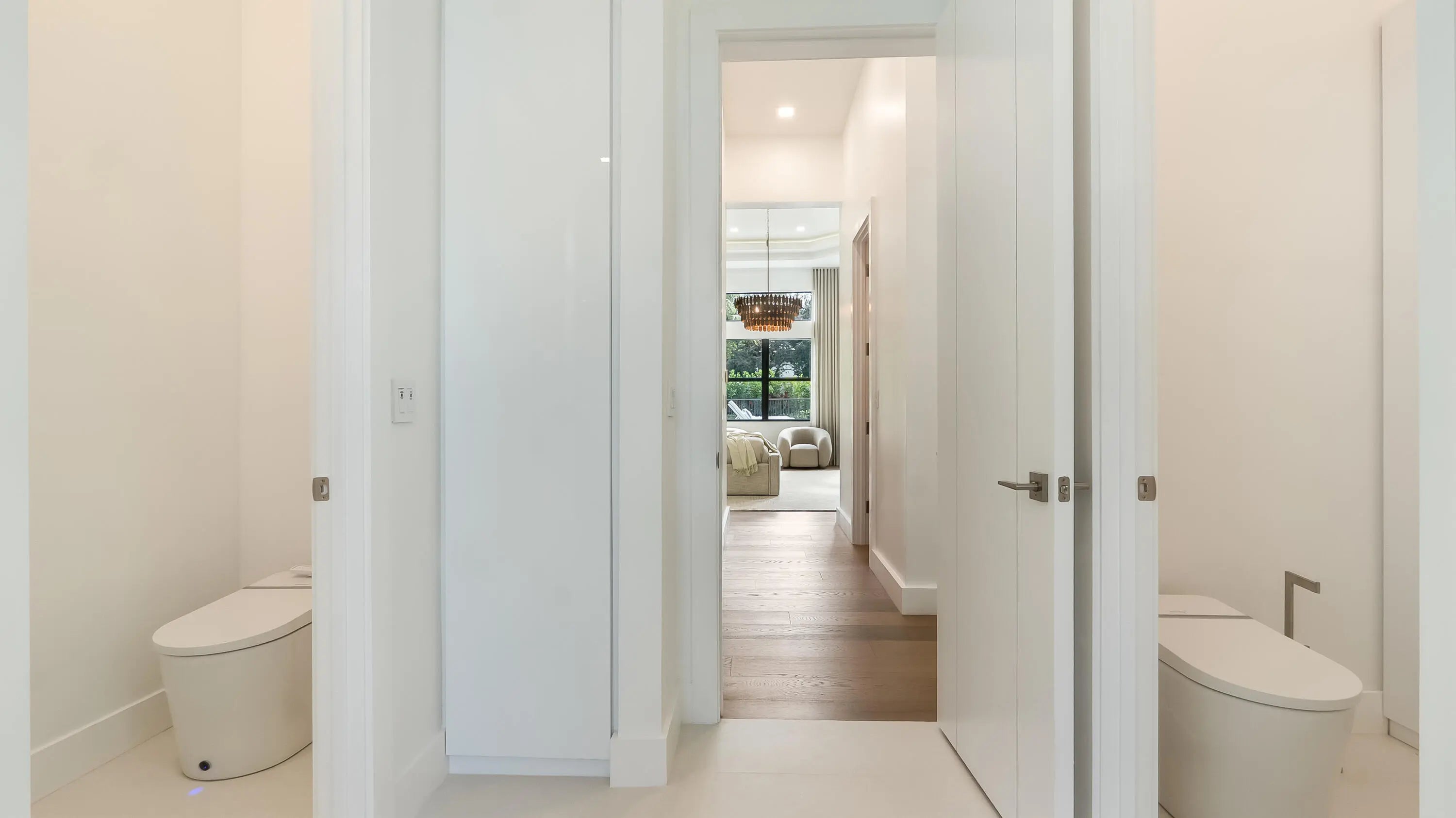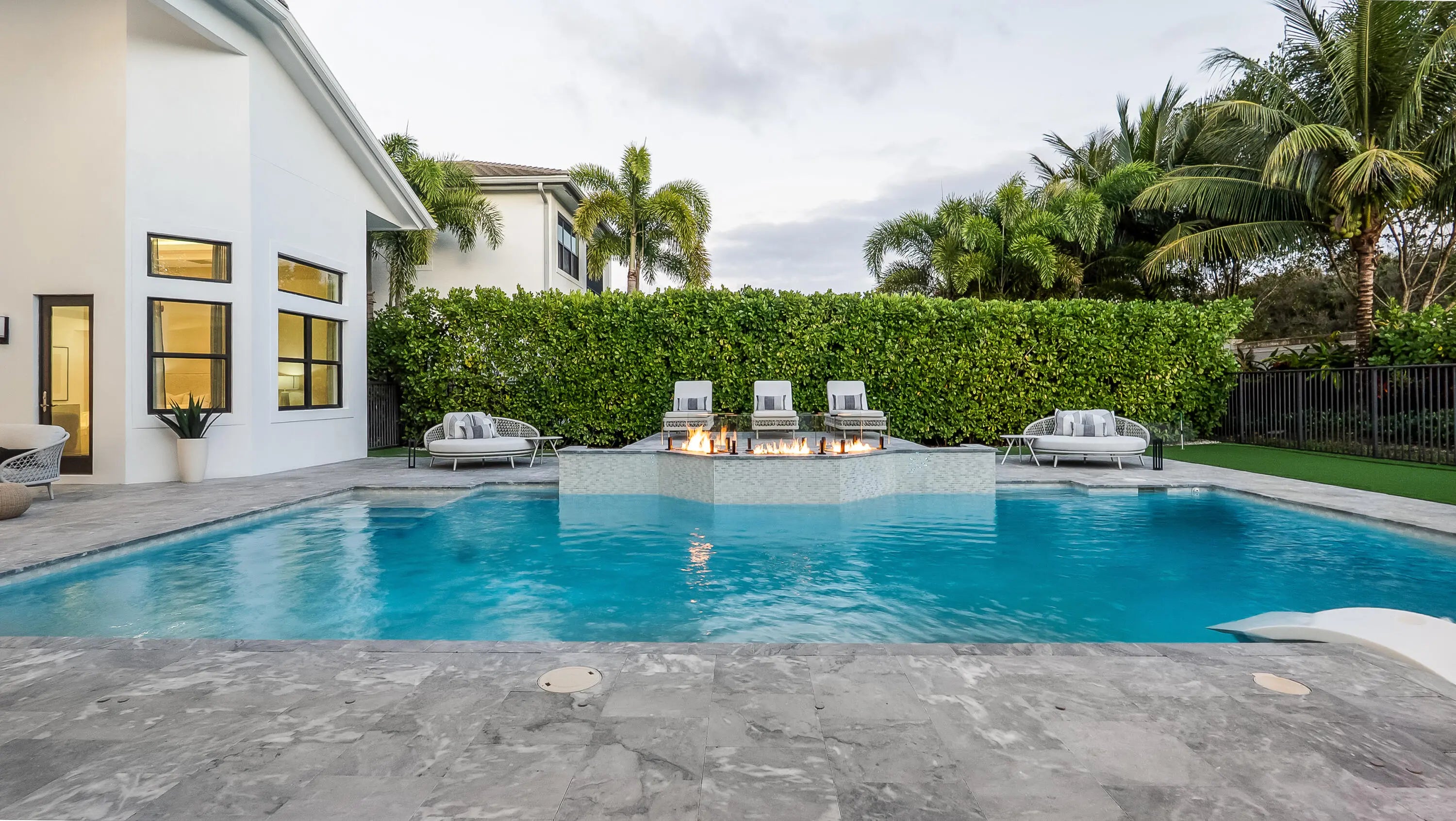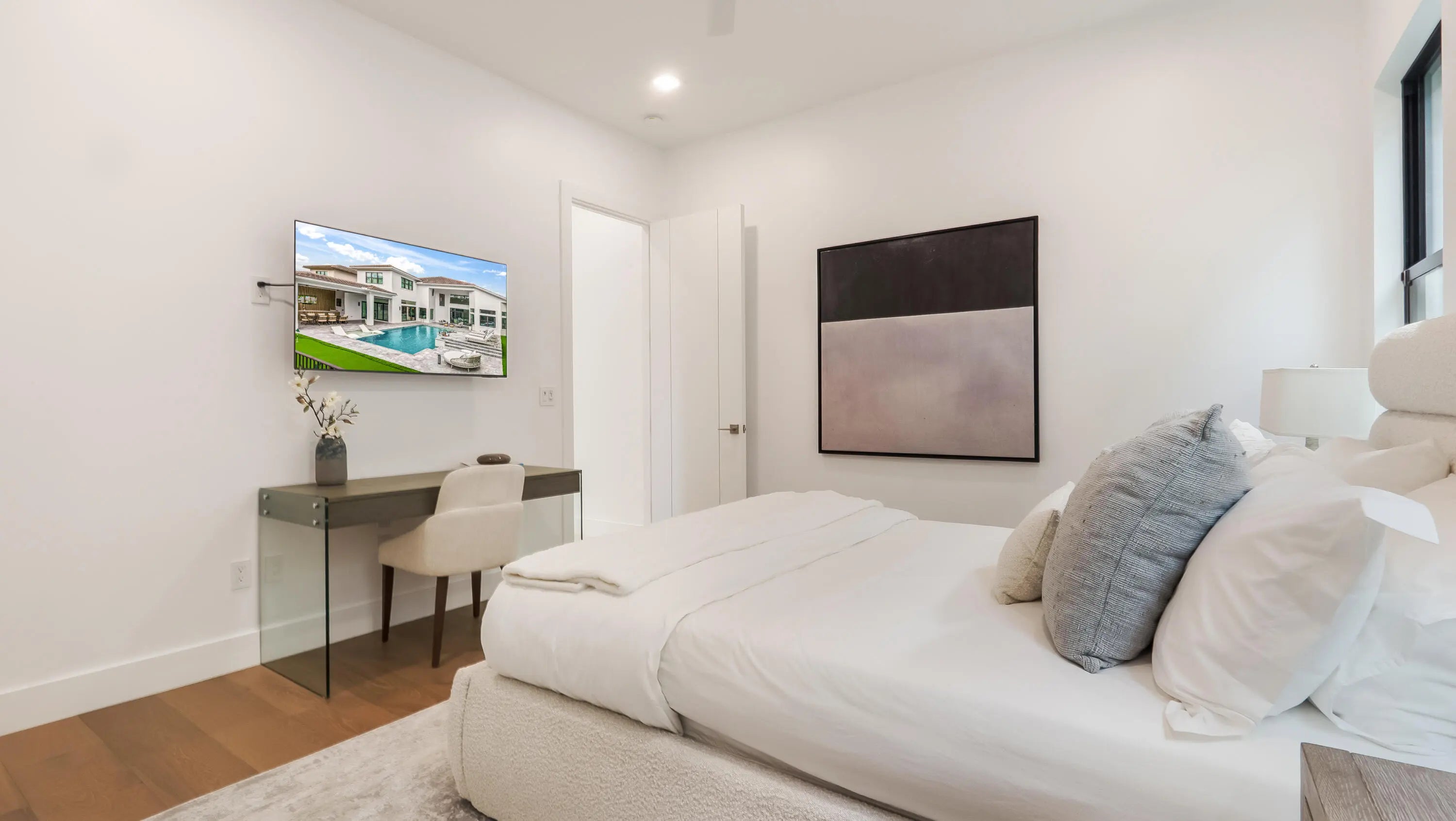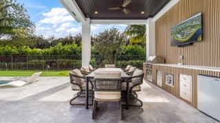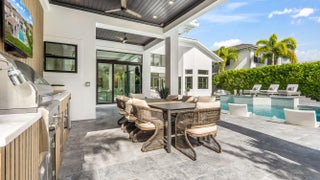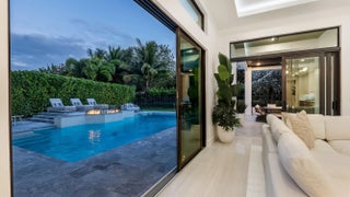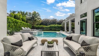 A true architectural masterpiece located within the prestigious Boca Bridges community; this residence has undergone a complete redesign and rebuild with no builder grade materials remaining. Essentially a brand new custom home, the transformation was just completed in December 2025 and reflects an uncompromising commitment to luxury, craftsmanship, and design. Offering an exceptional two story layout, the home includes six bedrooms, seven full bathrooms, two half bathrooms, a private office, a spacious loft, a custom movie theater with Martin Logan surround sound, and a three car garage. The home is introduced by dramatic 48 x 48 Spanish porcelain flooring throughout the main living areas, paired with rich custom Reserve hardwood floors in the bedrooms and along the staircase.