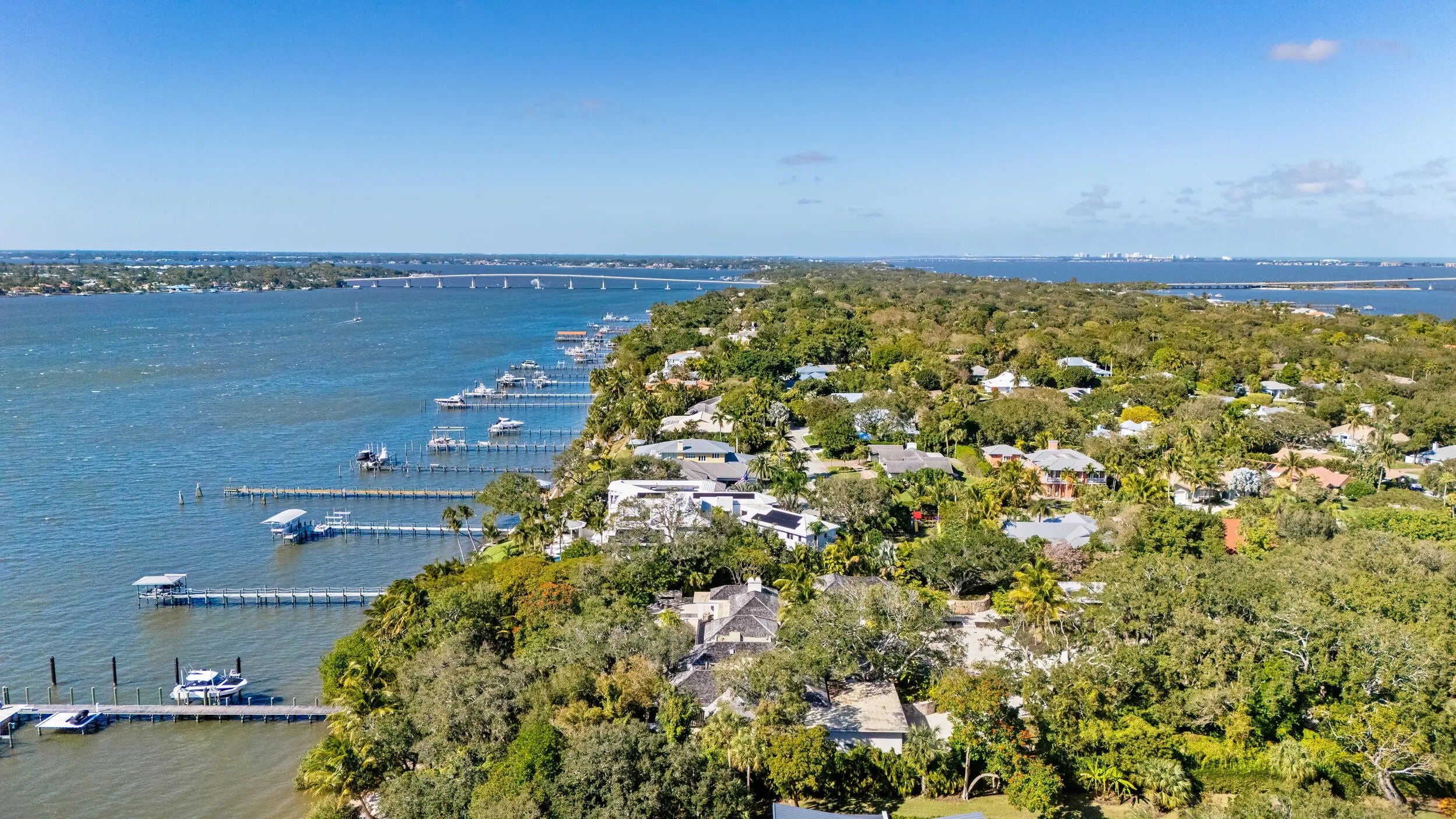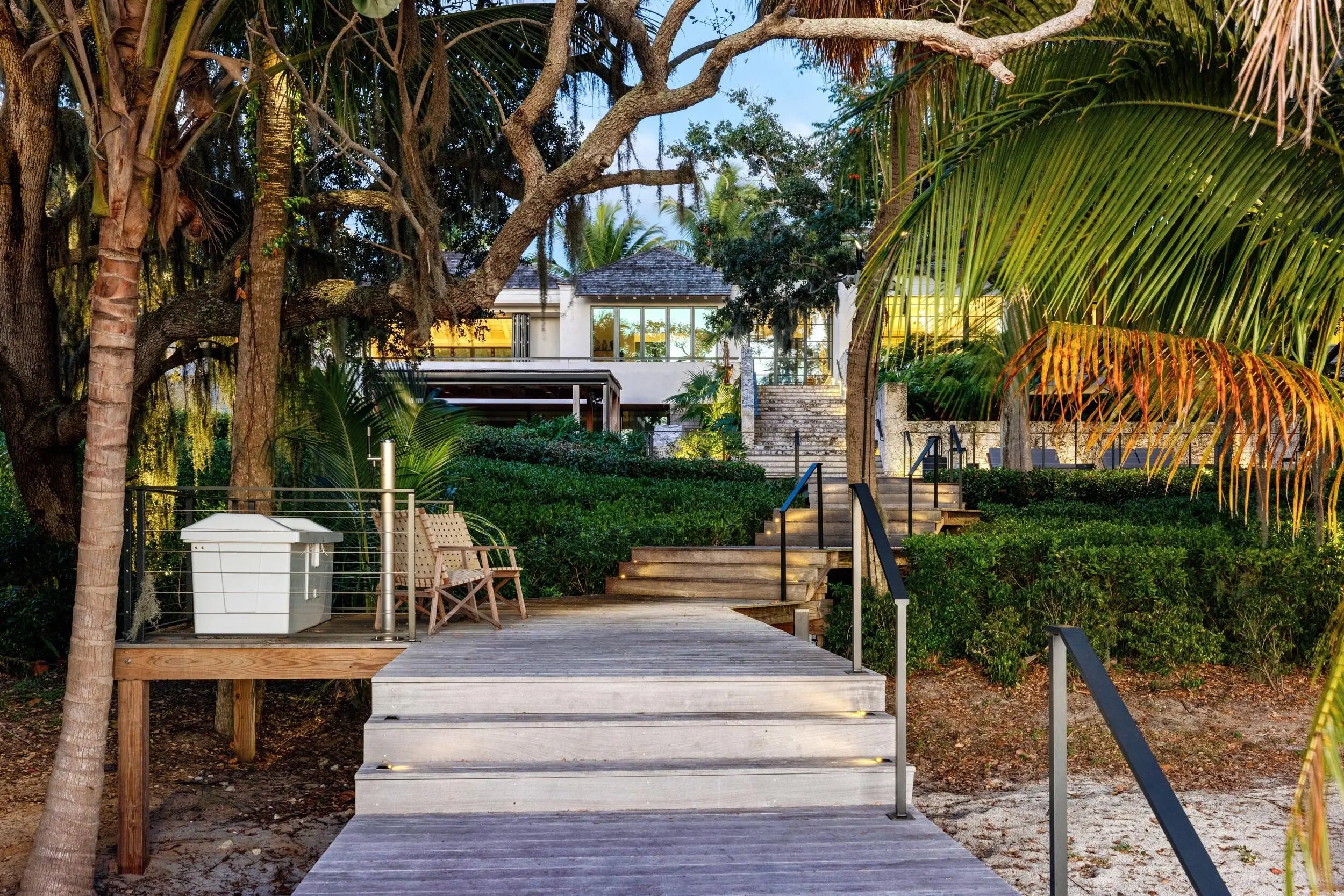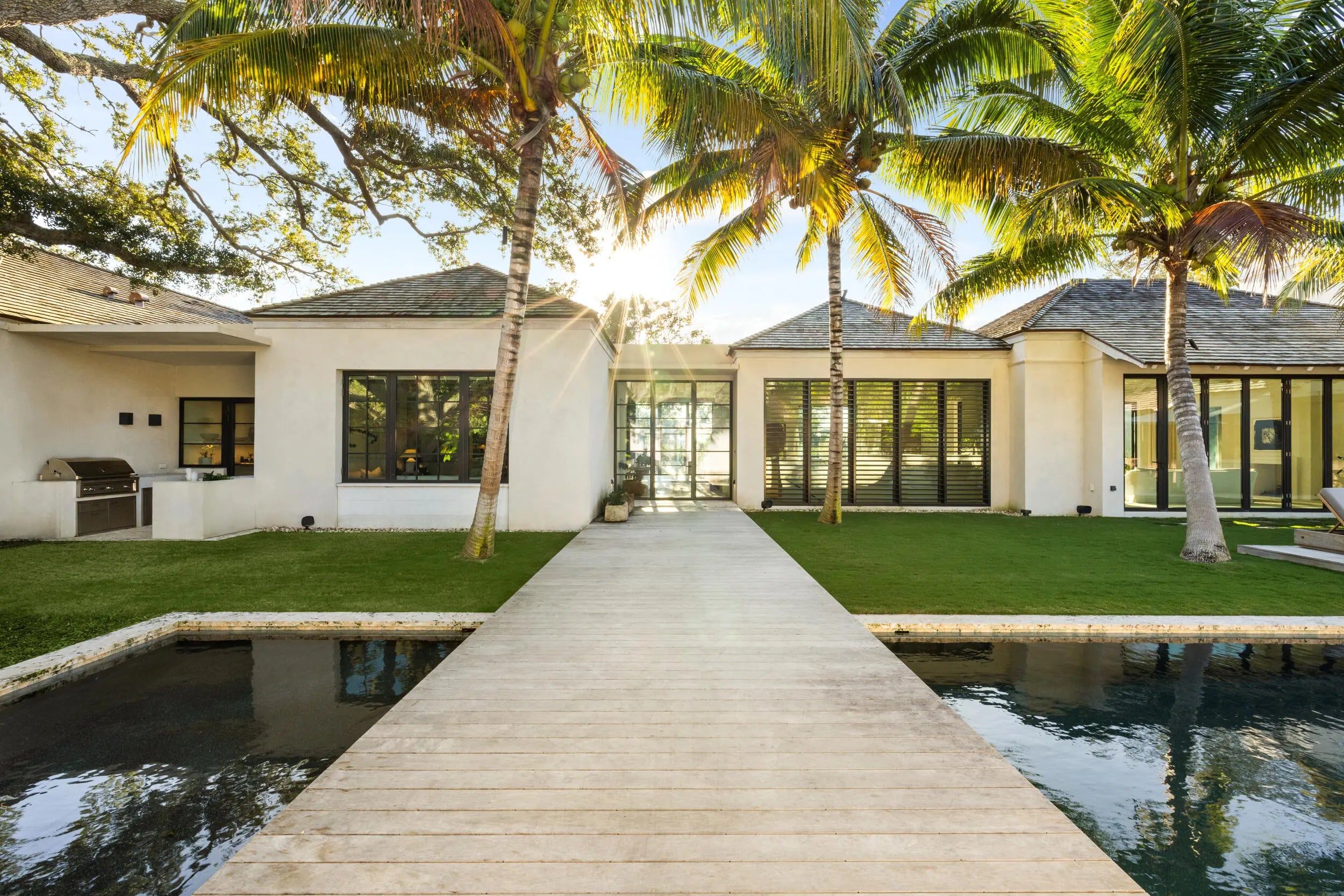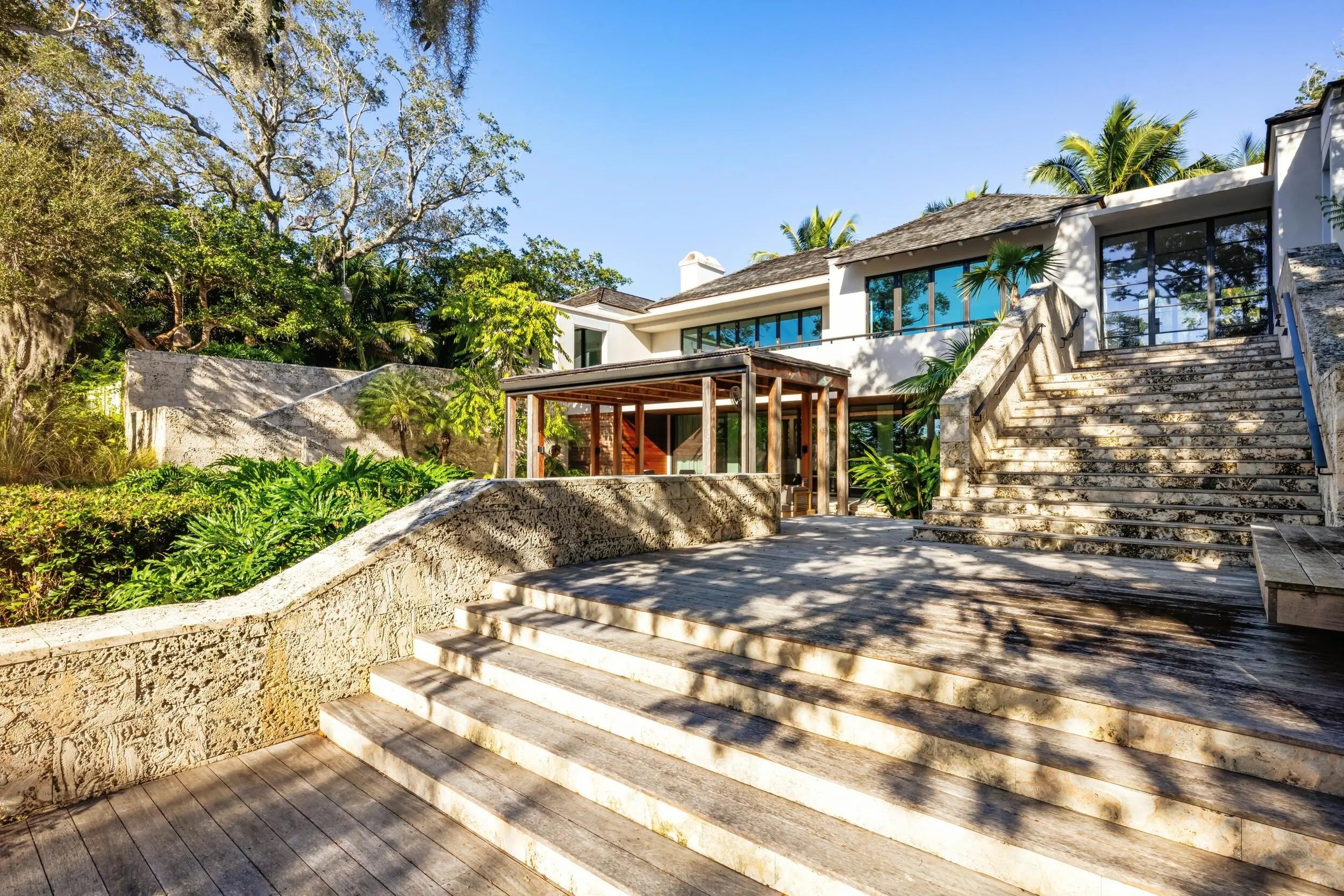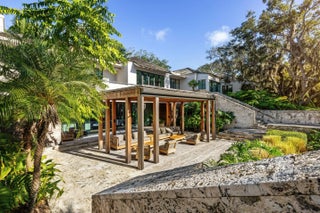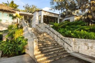 Known as River House, this newly completed riverfront estate of international distinction is elevated atop a commanding 30 foot bluff in Sewalls Point, spanning 4.3 acres and capturing sweeping, mile long sunset views across the St. Lucie River.Conceived as a modern Bahamian retreat, the residence blends imported Belgian modern materials with warmth, restraint, and timeless elegance. The architecture unfolds as a series of distinct pavilions in stone, oak, and plaster, thoughtfully positioned to embrace the land, the river, and effortless everyday living. The home has been internationally recognized and featured in Vogue Australia for its refined design and craftsmanship.