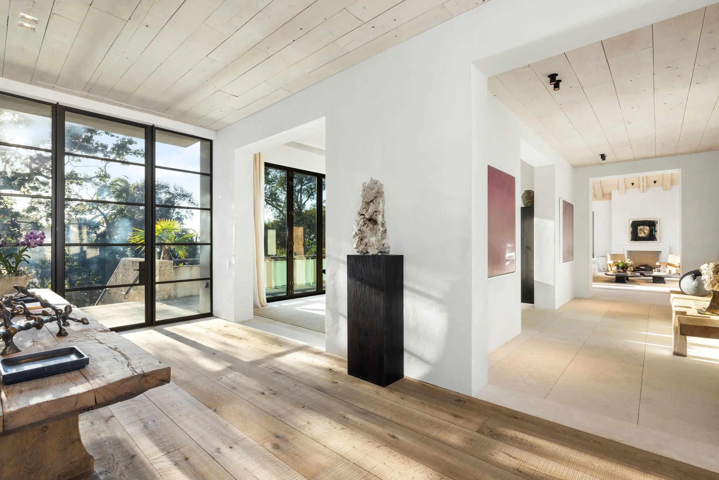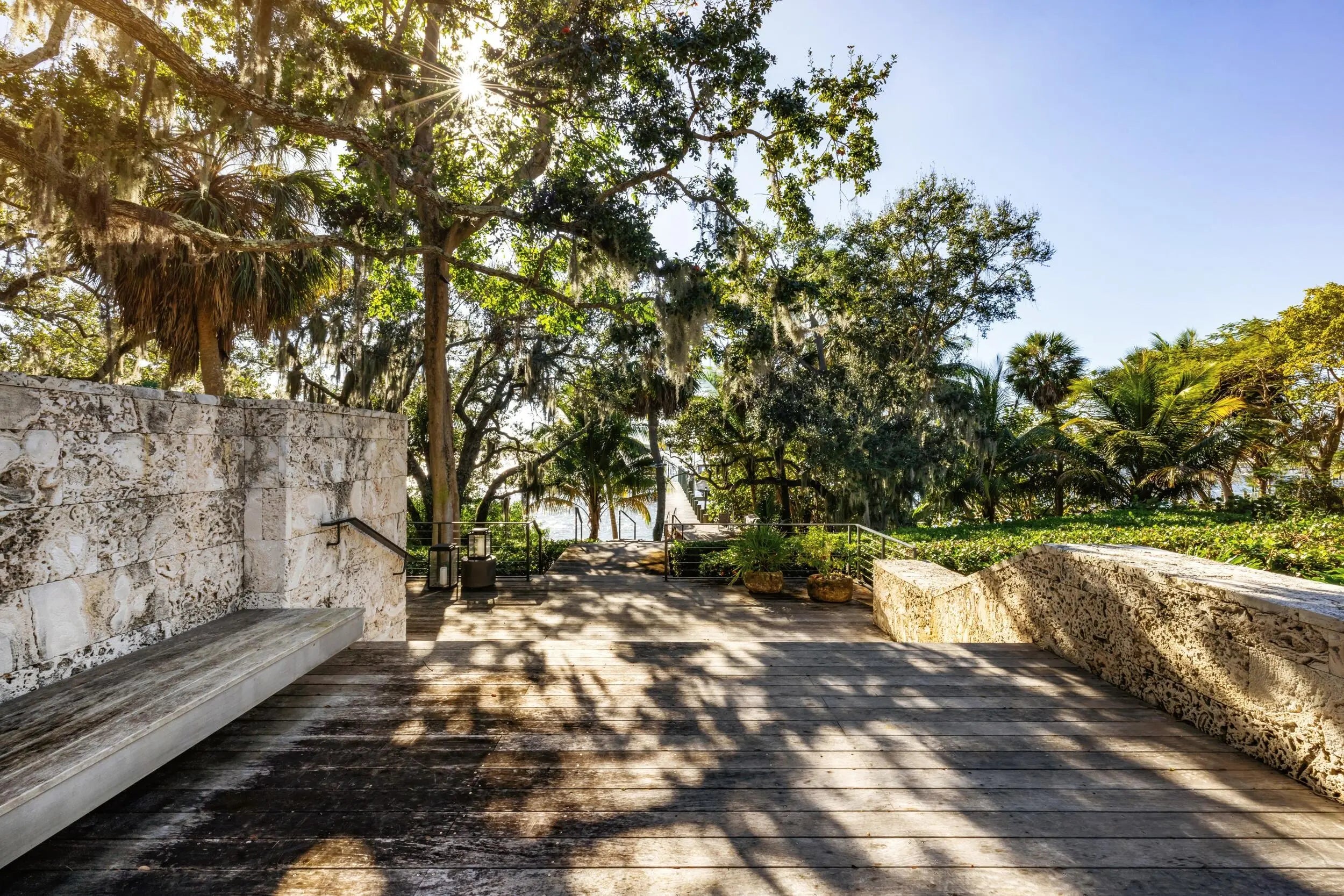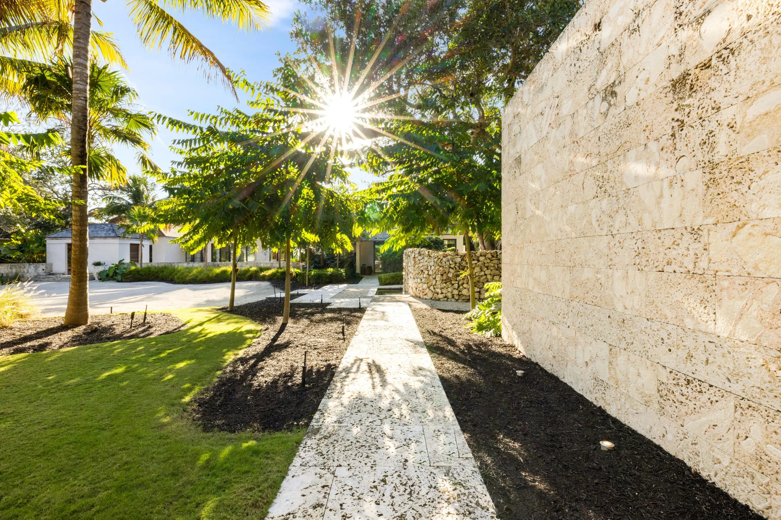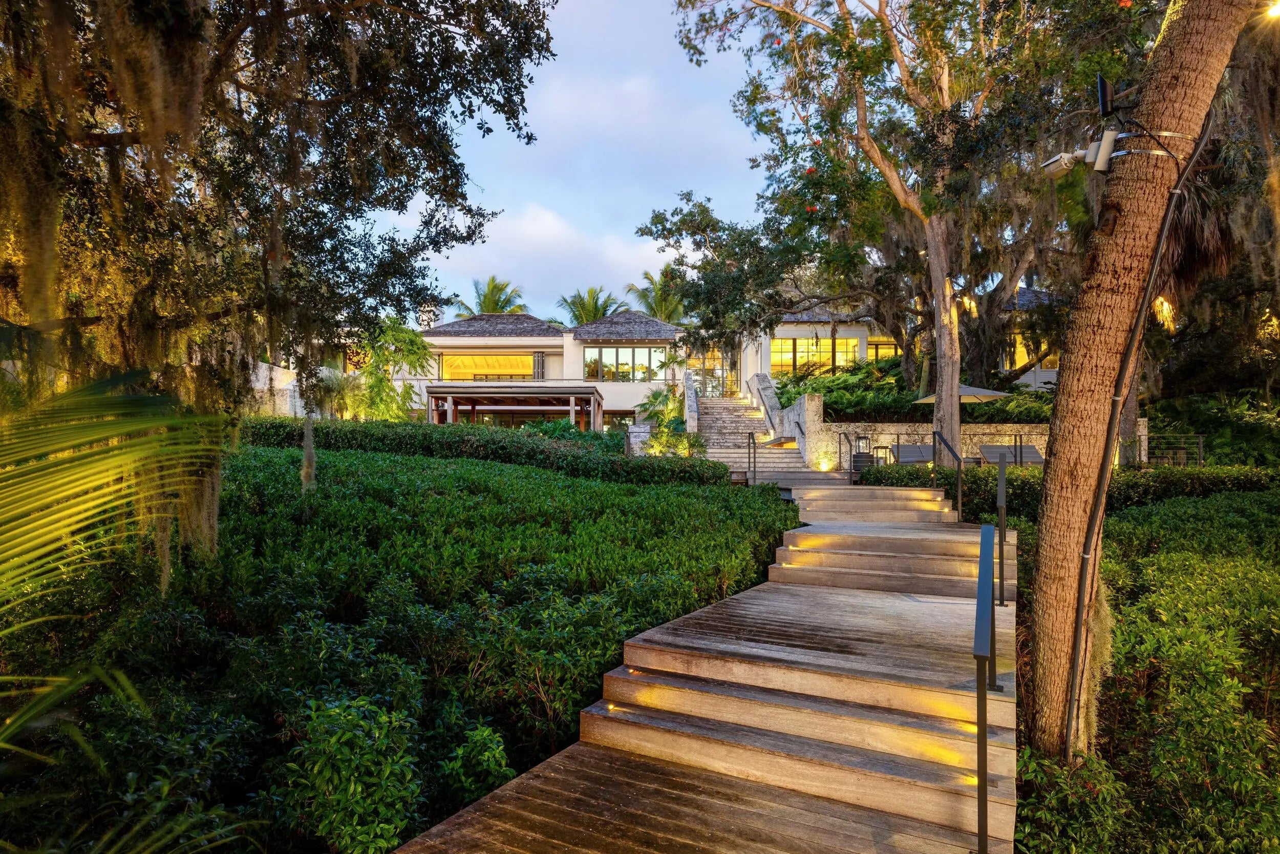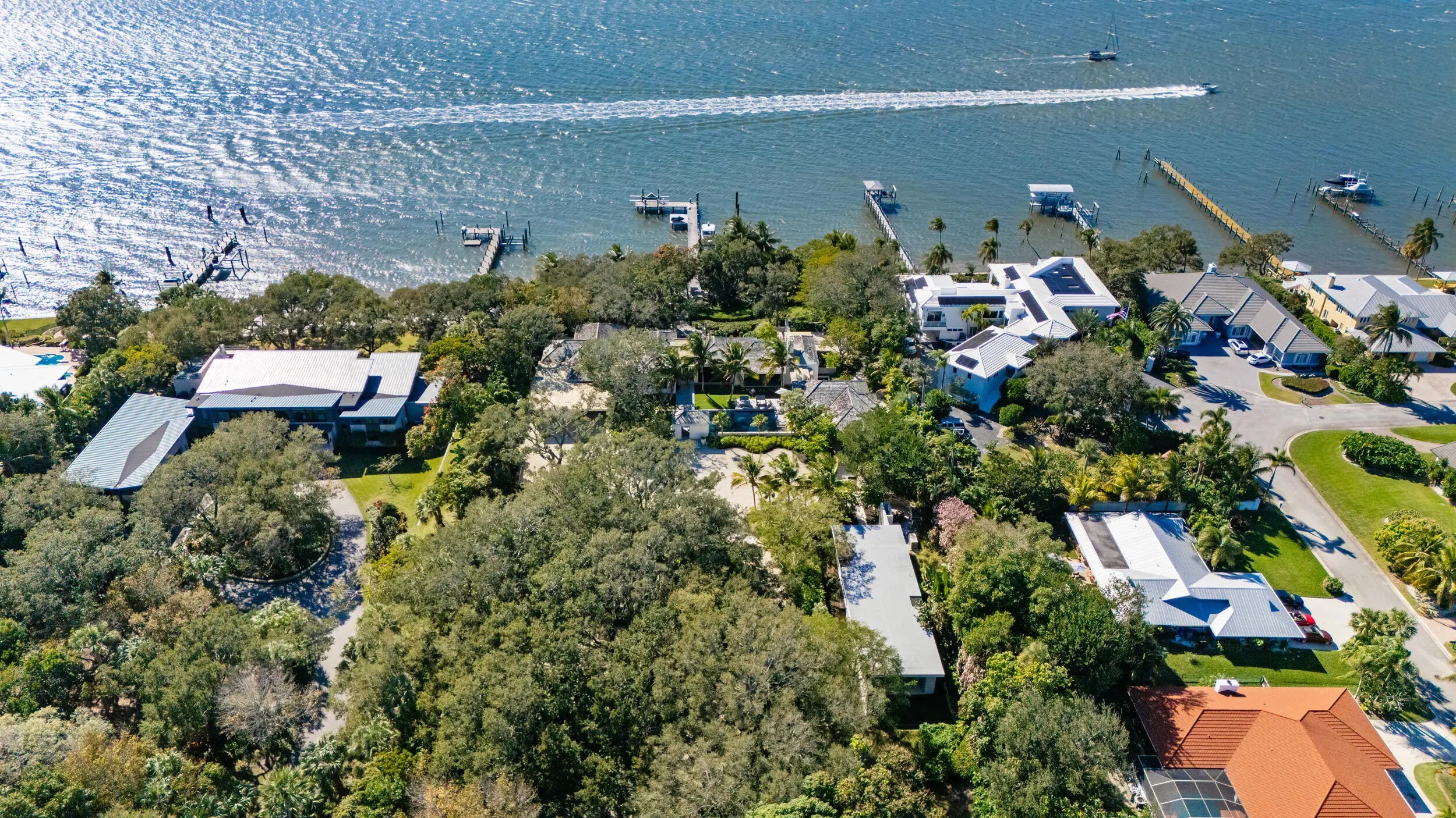 Known as River House, this newly completed riverfront estate of international distinction is elevated atop a commanding 30 foot bluff in Sewalls Point, spanning 4.3 acres and capturing sweeping, mile long sunset views across the St. Lucie River.Conceived as a modern Bahamian retreat, the residence blends imported Belgian modern materials with warmth, restraint, and timeless elegance. The architecture unfolds as a series of distinct pavilions in stone, oak, and plaster, thoughtfully positioned to embrace the land, the river, and effortless everyday living. The home has been internationally recognized and featured in Vogue Australia for its refined design and craftsmanship.