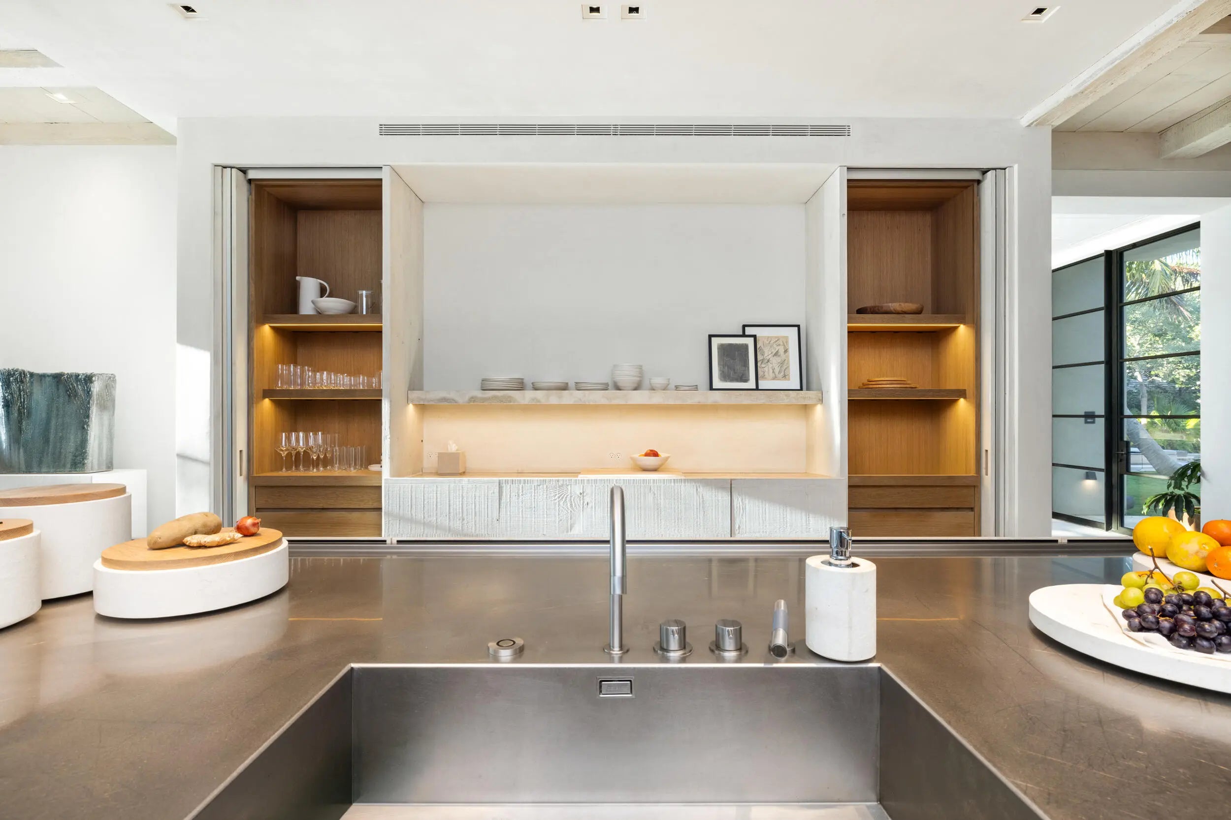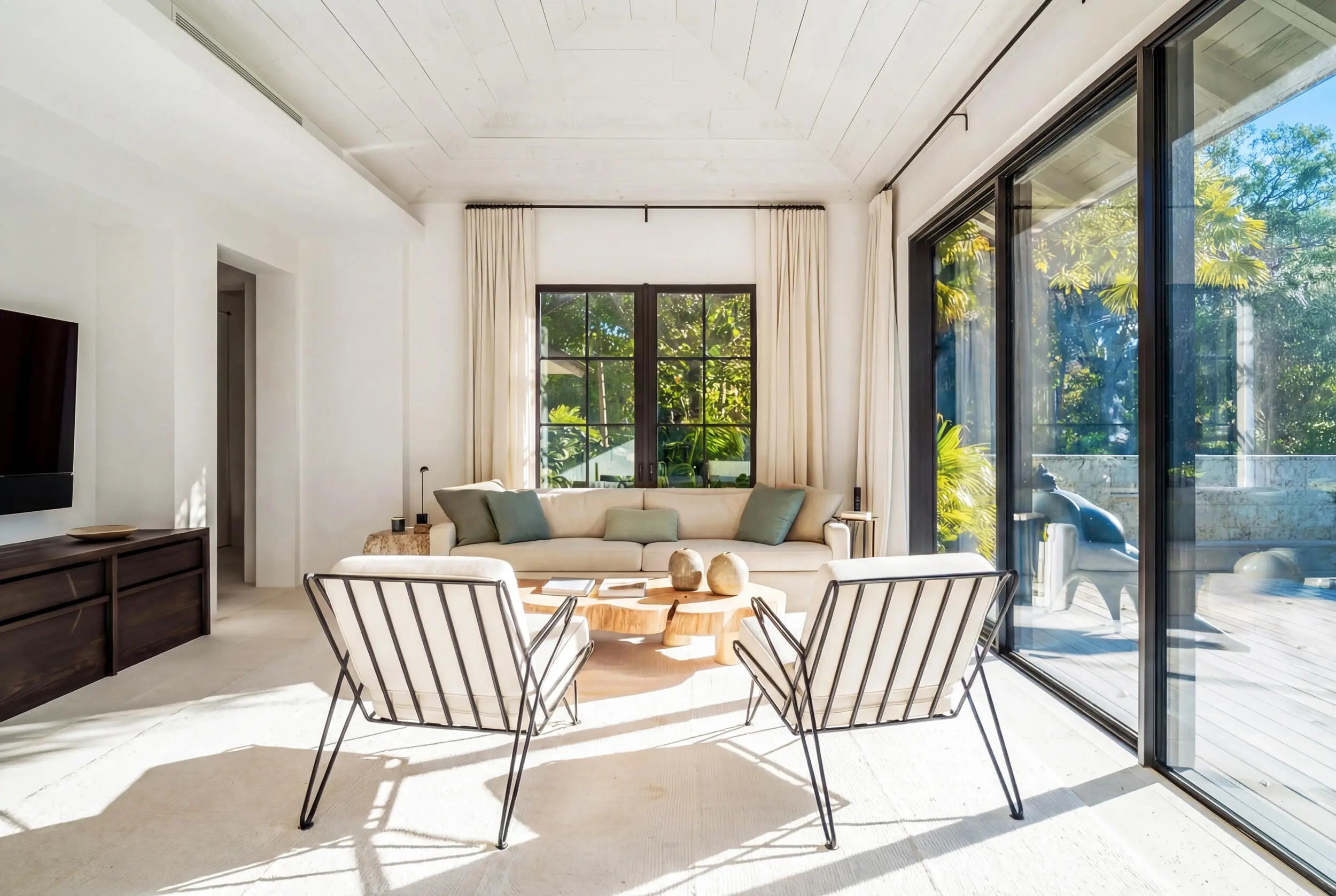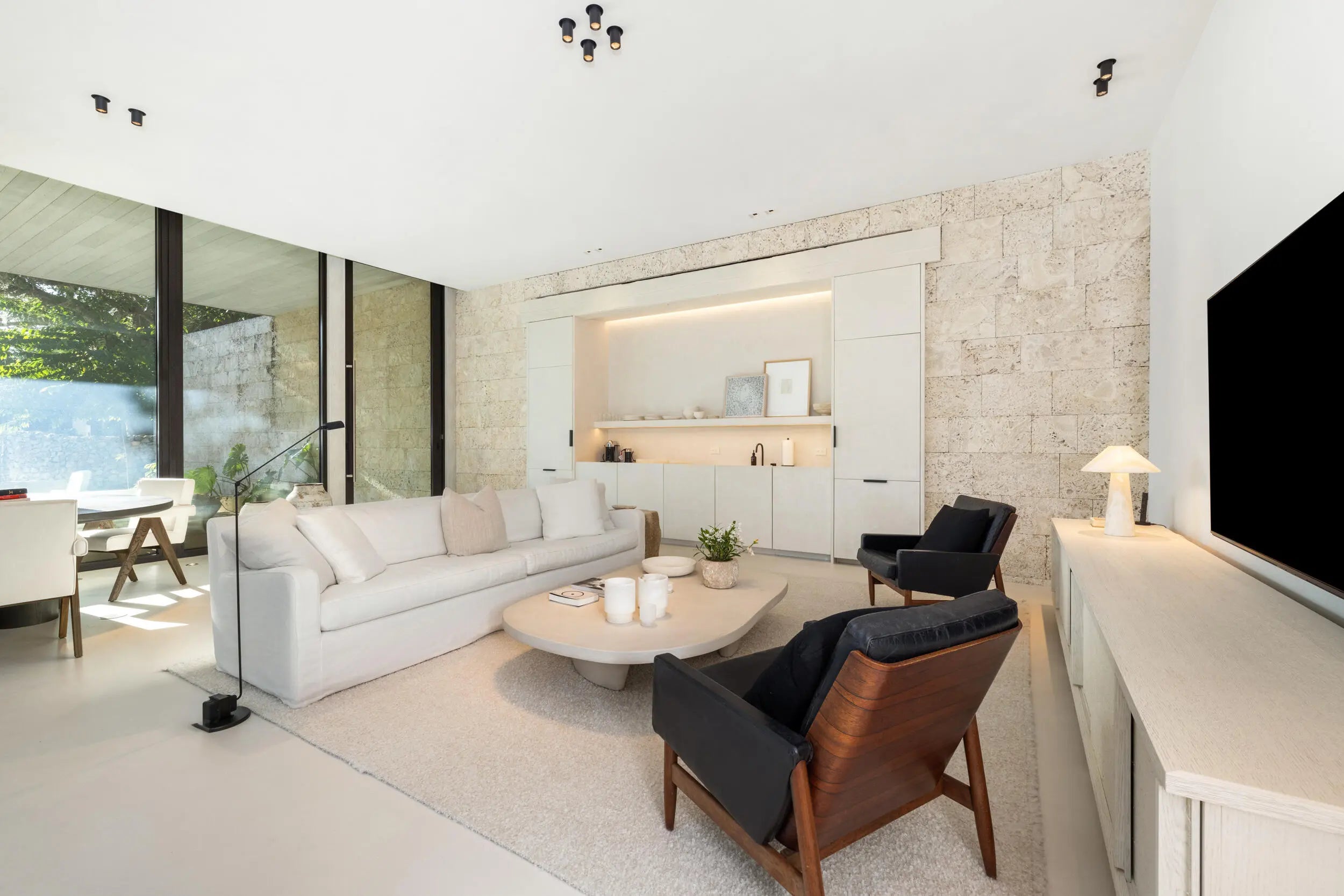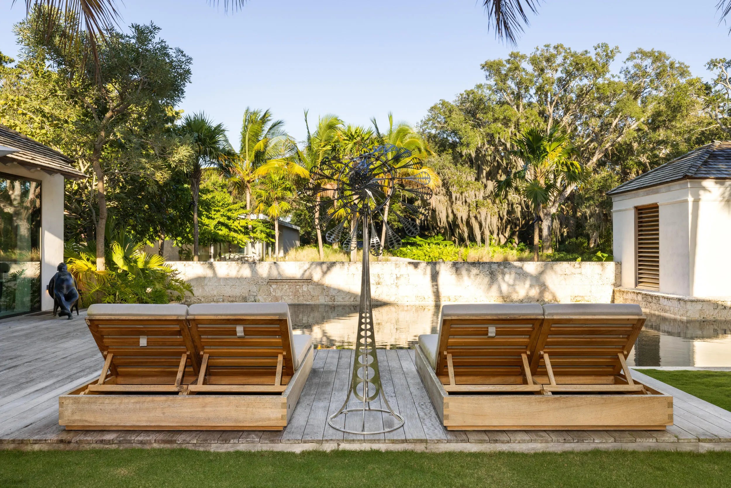 Known as River House, this newly completed riverfront estate of international distinction is elevated atop a commanding 30 foot bluff in Sewalls Point, spanning 4.3 acres and capturing sweeping, mile long sunset views across the St. Lucie River.Conceived as a modern Bahamian retreat, the residence blends imported Belgian modern materials with warmth, restraint, and timeless elegance. The architecture unfolds as a series of distinct pavilions in stone, oak, and plaster, thoughtfully positioned to embrace the land, the river, and effortless everyday living. The home has been internationally recognized and featured in Vogue Australia for its refined design and craftsmanship.