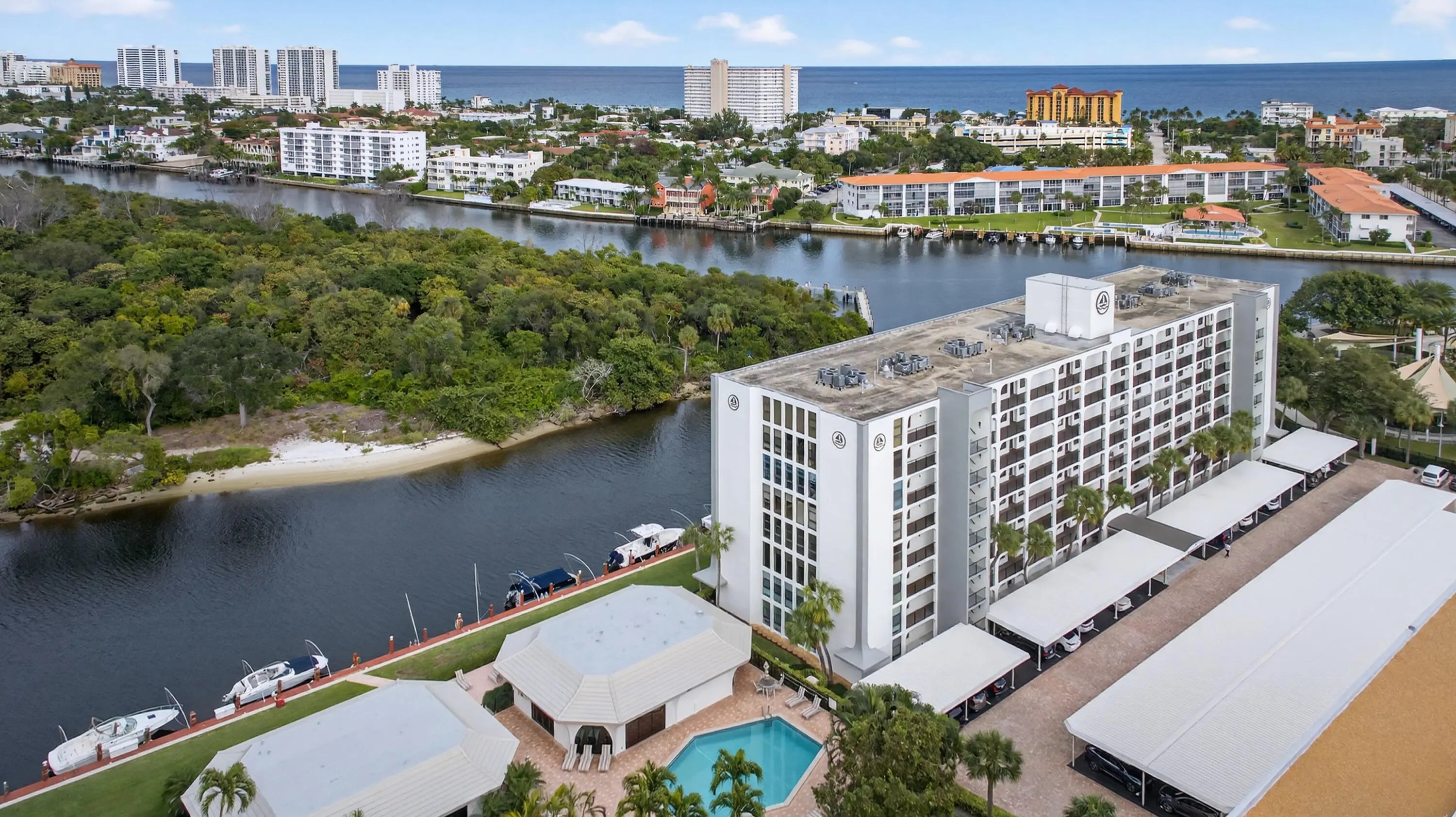Beautiful and spacious 2-bedroom, 2-bath residence with breathtaking water views of the Hillsboro River and the Intracoastal. This light-filled unit offers generous living space and a large screened balcony--perfect for relaxing and taking in the scenery. Enjoy resort-style amenities including a community pool and sauna, plus the convenience of an assigned parking space. Ideally located directly across from Hillsboro Cove, featuring excellent restaurants, bars, and shopping, all within easy walking distance. Less than one mile to the beach--this is South Florida living at its best. tenant responsible for 1st, last, security and renters insurance. 1 assigned parking spot included.
