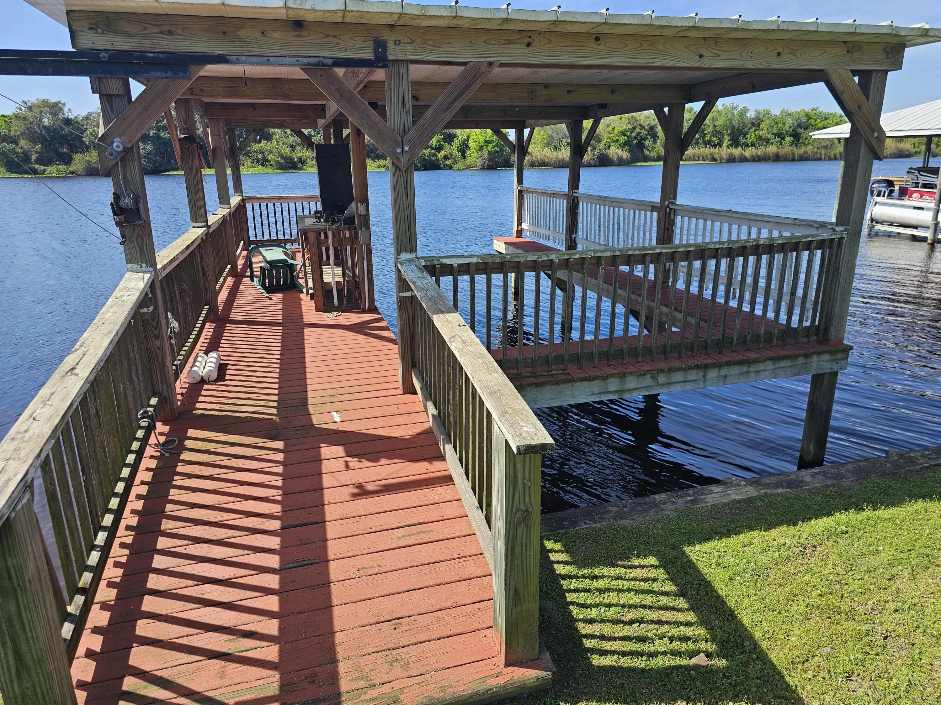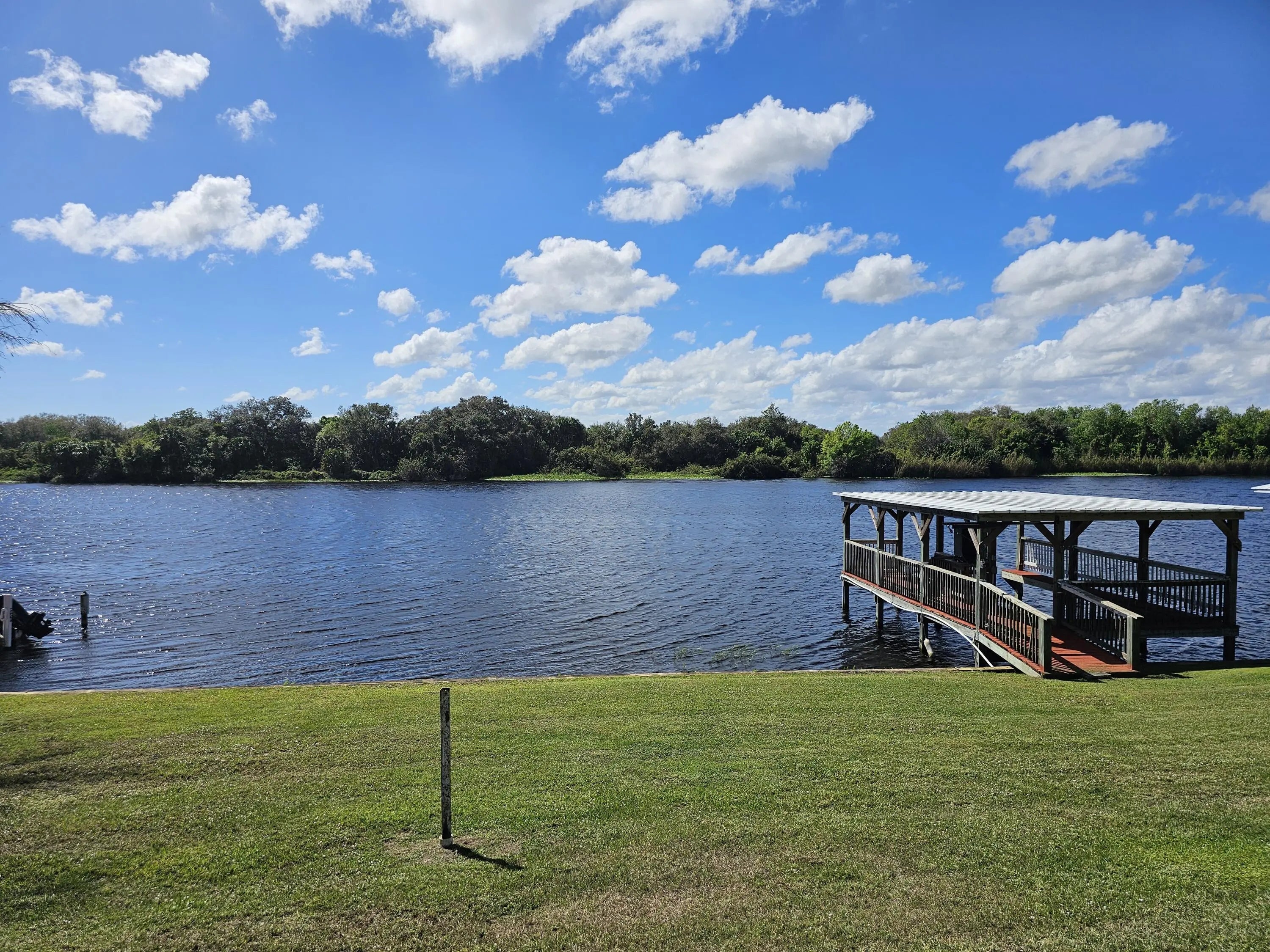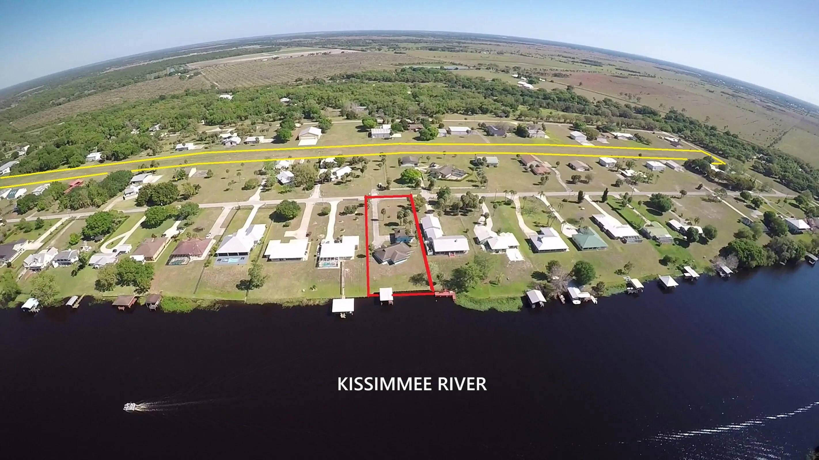 River Oaks! On the wide Kissimmee River. 2 bed 2 bath CBS home with detached garage. 1,620 sq ft under air 2,564 living area. Boat house w/electric & water, 24 x 30 detached garage, Florida room, Island kitchen & 24KW whole house generator (2024) w 500 gal buried propane tank. New a/c (2024) This unique community offers a well maintained, 4,700' lighted, turf airstrip. HOA $125.00 yr.
