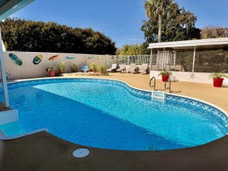 On TAYLOR CREEK~ This HIDDEN GEM is DESIGNED for ENTERTAINING! Exceptional WATERFRONT/ POOL home! Beautifully remodeled. Circular drive. 2922 Sf under air - 4616 TLA. 4 Bd/ 3 Ba, Two Master suites plus 4th Bd/office. 20x10 Galley kitchen, 12' counter, built in desk, bkfast nook and cabinets galore. 36x16 Family room with horseshoe bar seating for seven! (Let the good times roll!) Formal Living w/ fireplace and Dining room. 22x31 Garage. Privacy fenced, Heated saltwater pool. 28x12 Screened patio with full 12x14 kitchen. Lovely walkway to Double dock w/2 lifts, FC station, power, water, party dock and 8x10 storage for fishing gear. Full RV hookup/sewer-on 6'' slab. Extra parking for boat. Generator and 500 Gal propane tank. 2 HVAC, 2 HWH.