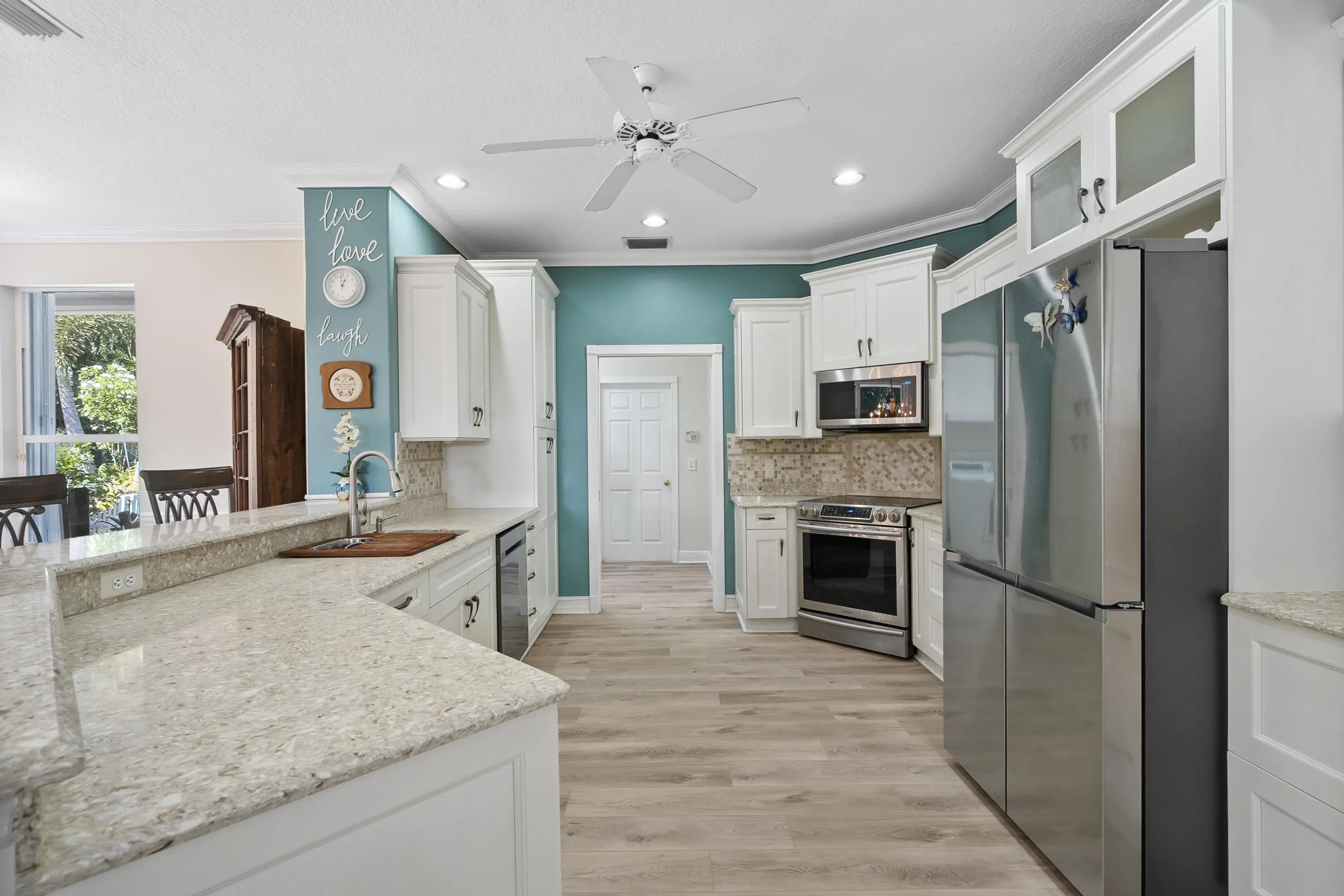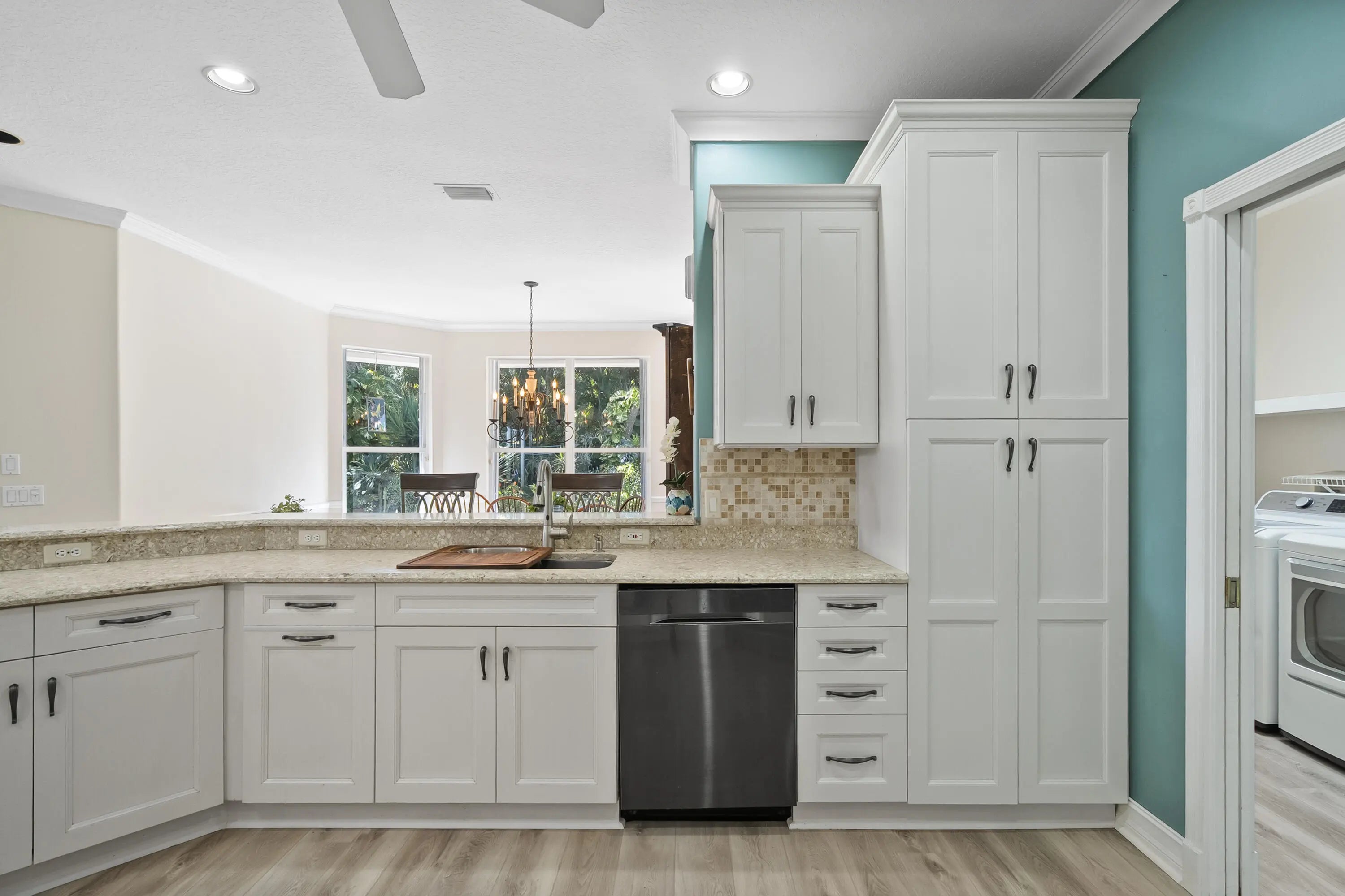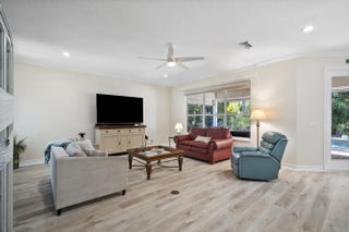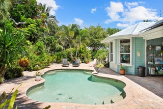 Nestled on a private, tree-lined street in Sewall's Point, this charming 4-bedroom plus den Key West-style home offers the perfect blend of comfort, style, and tropical elegance. The spacious open floor plan features brand new luxury vinyl flooring throughout the main living areas and new carpet upstairs, along with a desirable downstairs primary suite for added convenience and privacy. A welcoming wrap-around front porch sets the tone for relaxed Florida living. Out back, the property transforms into a true tropical oasis with lush landscaping and a stunning pool--ideal for entertaining or unwinding. Inside, enjoy a tastefully updated kitchen with granite counters and SS appliances and two beautifully updated bathrooms.