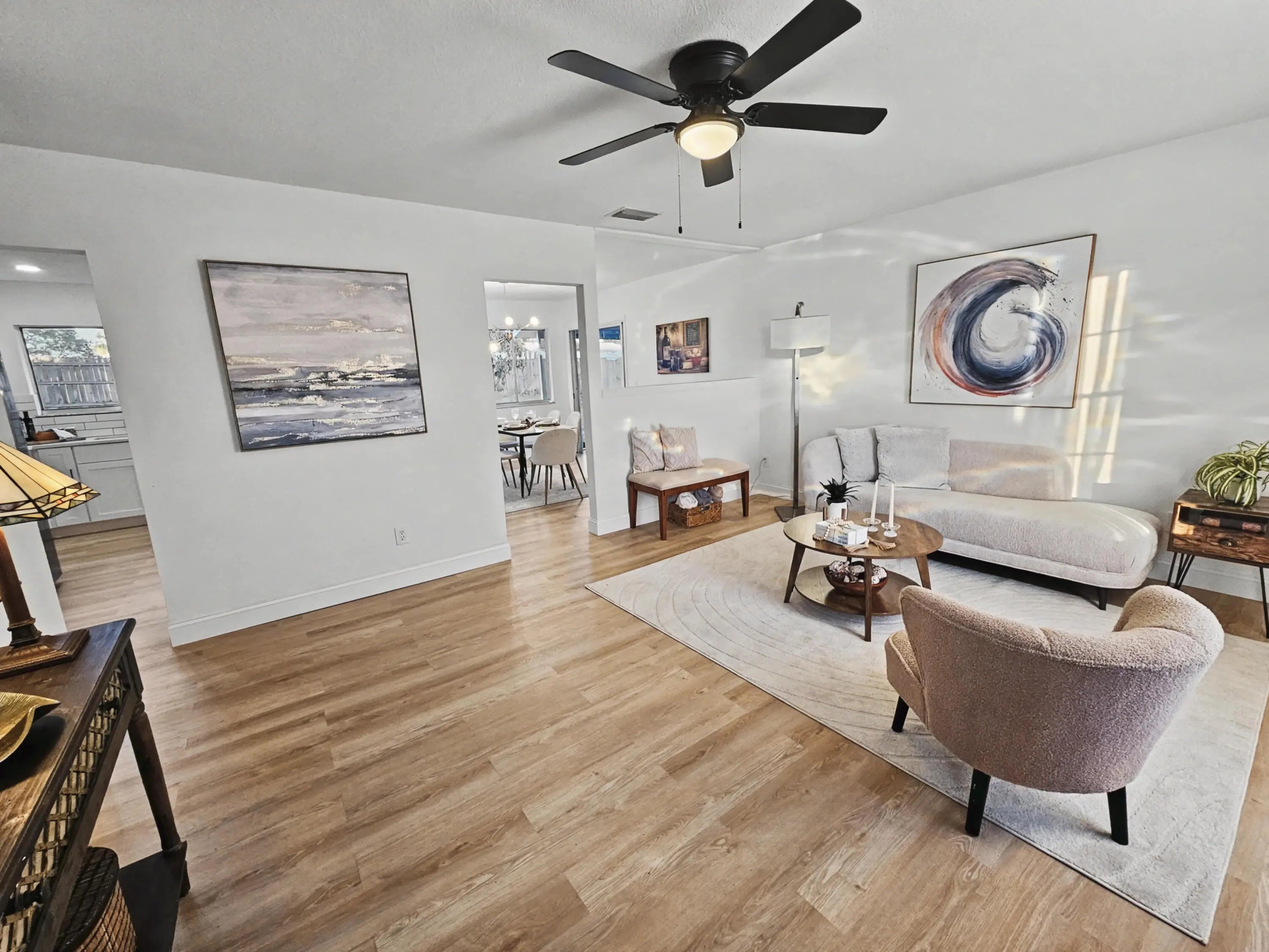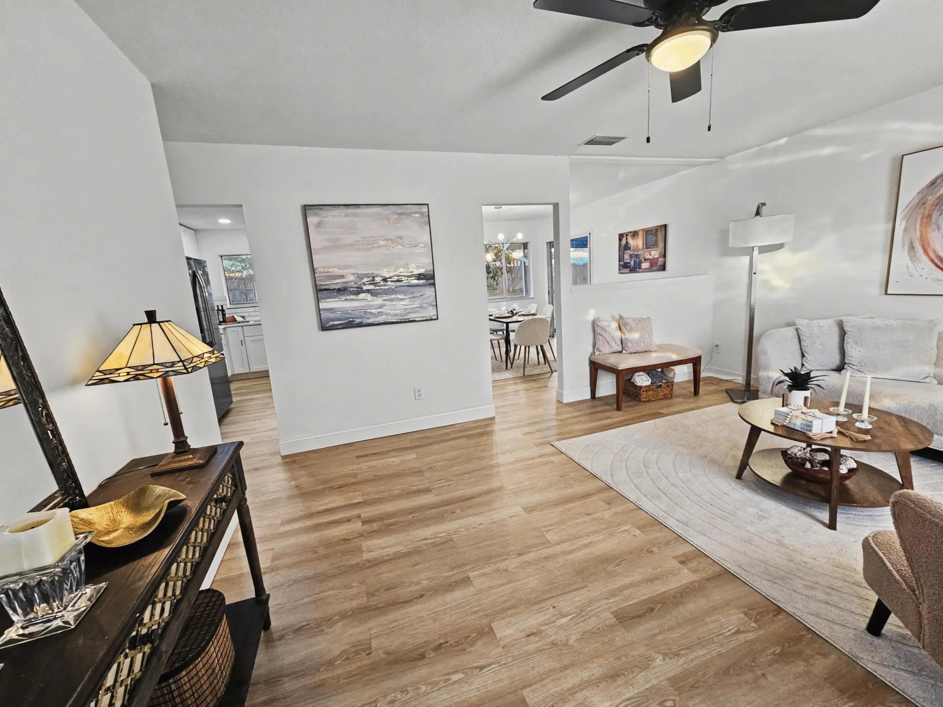 NEW AC, NEW Roof, NEW Appliances & More! Fully Renovated Stunner on 10,445 sq ft Lot! This move-in-ready home delivers space, style, luxury, and standout value with no HOA. From the moment you arrive, it's clear this home was designed to impress, blending modern finishes with a bright, open layout and an expansive backyard rarely found at this price point. Step through the front door and into a light-filled interior where freshly painted walls and wide-plank honey-toned luxury vinyl flooring create a warm, cohesive flow throughout the home. The spacious living area is enhanced by a modern ceiling fan and a large picture windows that brings in natural light. The living room flows seamlessly into the newly redesigned kitchen, where clean lines and thoughtful details elevate everyday living.