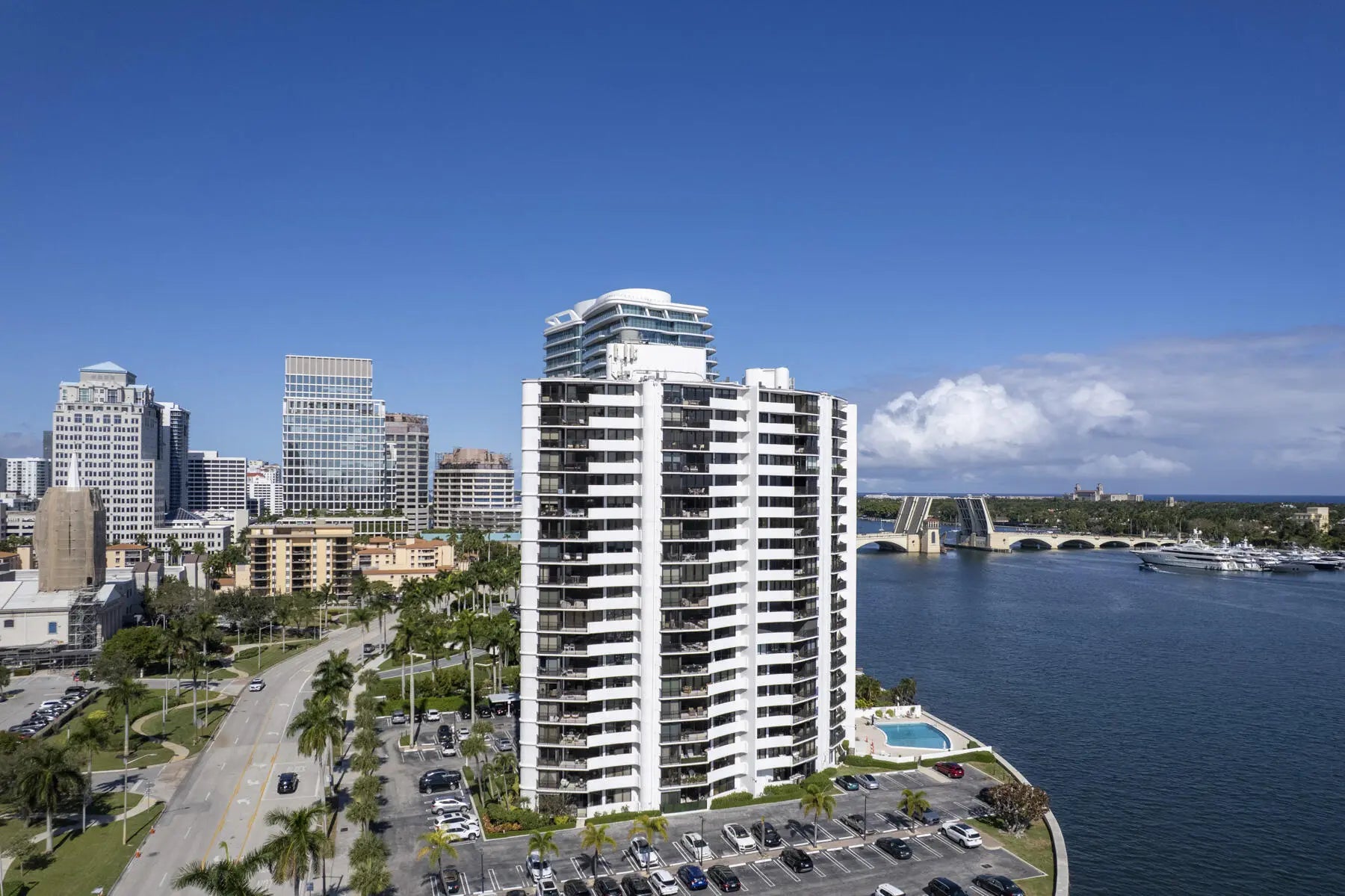 Stunning unit, renovated and directly located on the Intracoastal Waterway. This contemporary two bedroom, two bathroom condo opens up to amazing views of Palm Beach island and the Intracoastal. Its 1,587+\- total sq offers ultimate elegance and sophisticated comfort. Every room opens to the private balcony through floor to ceiling glass doors. Delight in its stunning modern kitchen adorned with a rare window. Relax in the primary suite or the guest room and their beautifully updated en-suite baths. Enjoy the convenience of an in-unit washer-dryer and the designated parking space just steps from the lobby entrance.