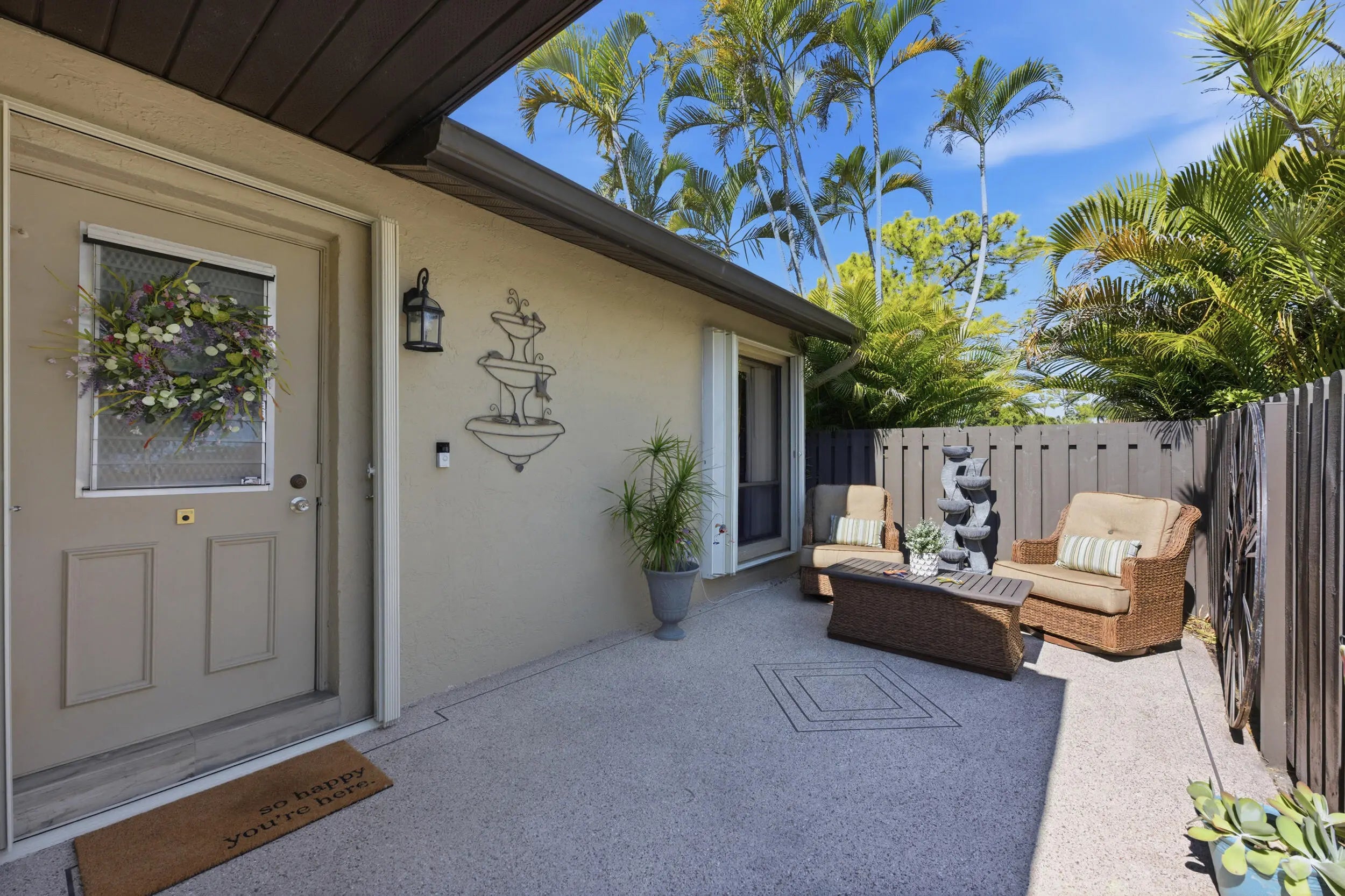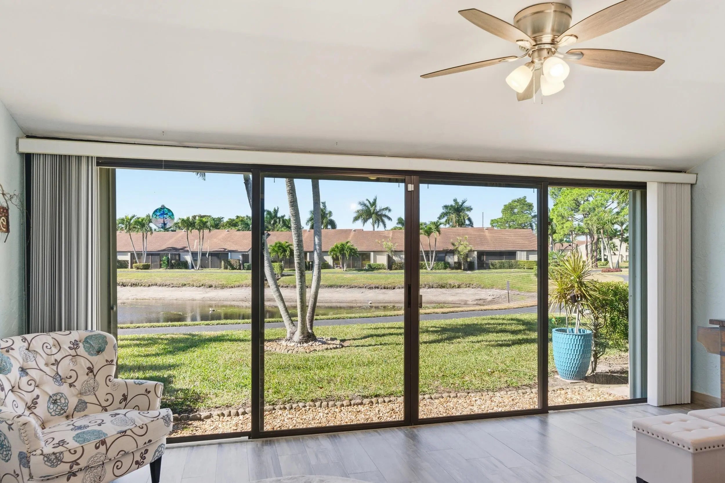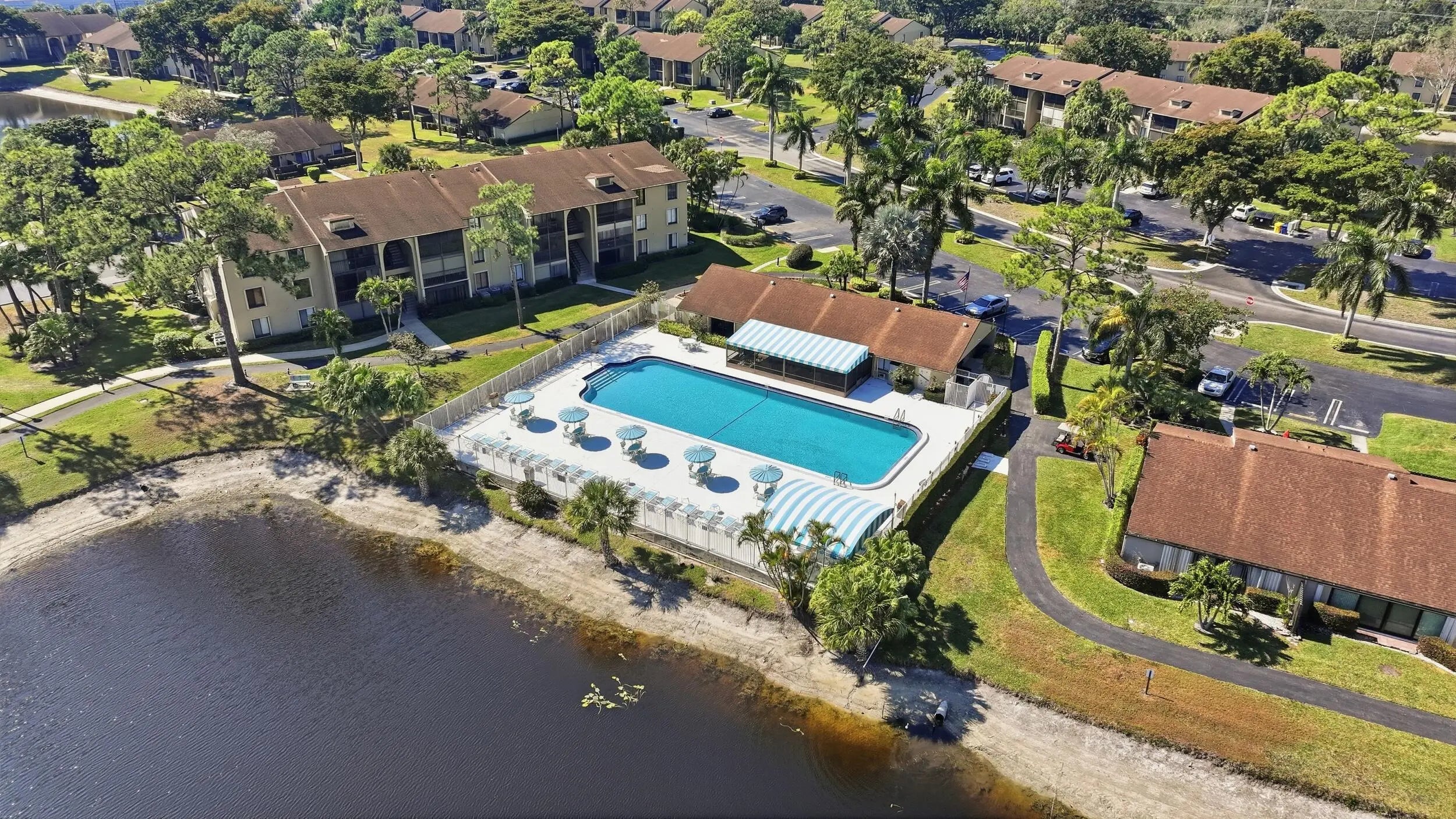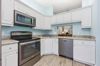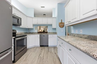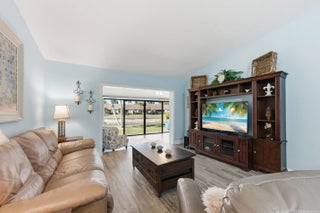 THIS HOME QUALIFIES FOR A $15K BUYER GRANT. Spacious lakefront corner villa that's truly move-in ready. 2 bedrooms, 2 baths, vaulted ceilings and abundant natural light with flowing wood-look porcelain tile throughout the living areas. The Florida room overlooks the water and large sliders make indoor outdoor living easy. Updated kitchen with granite counters, stainless appliances and brand new washer and dryer. A/C and hot water heater replaced in 2019. Primary suite offers a walk-in closet and private bath. Fenced courtyard, accordion shutters and assigned parking. Community pool, clubhouse and tennis. HOA covers insurance, roof and basic cable. All ages welcome in a peaceful setting,