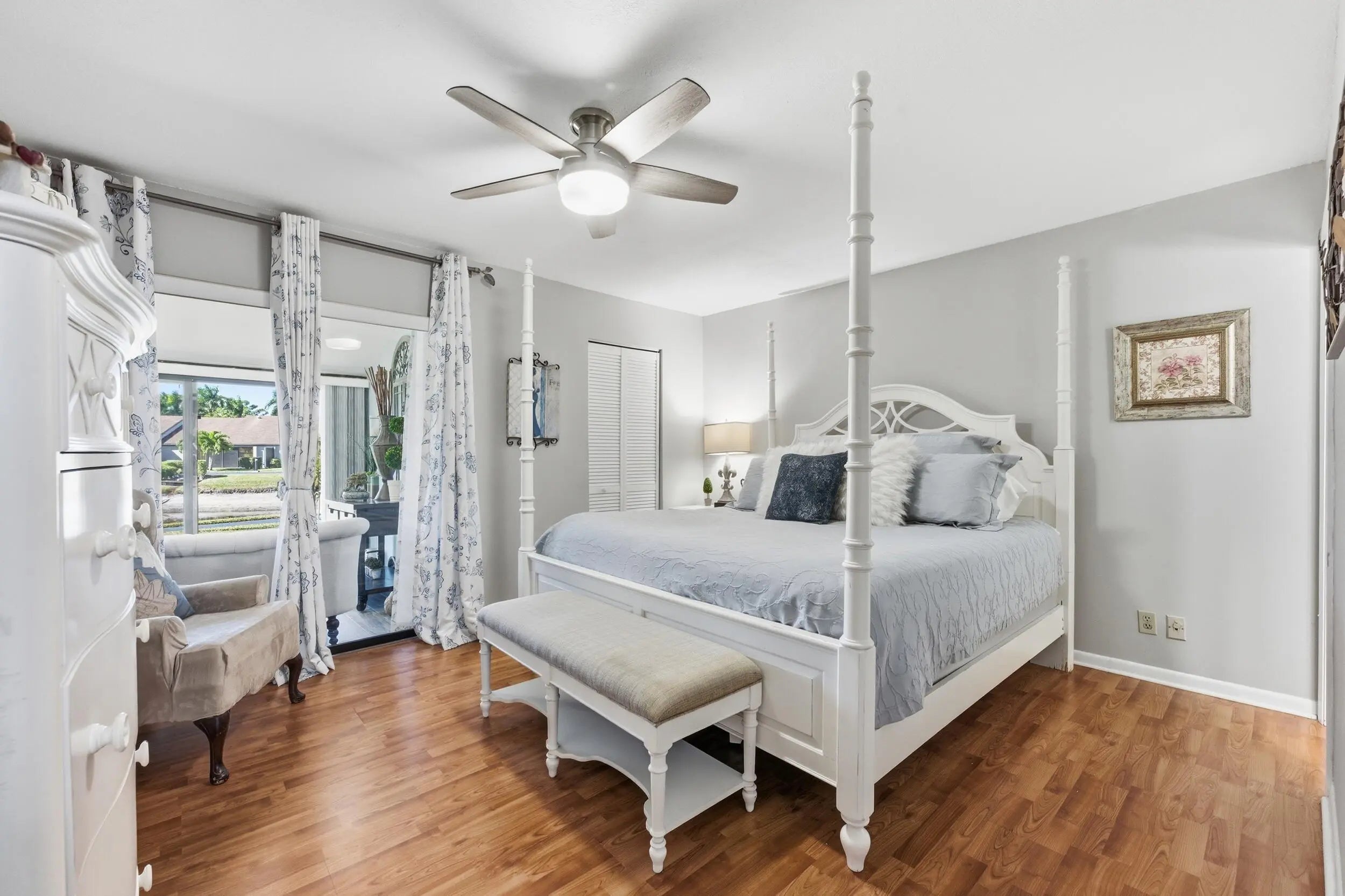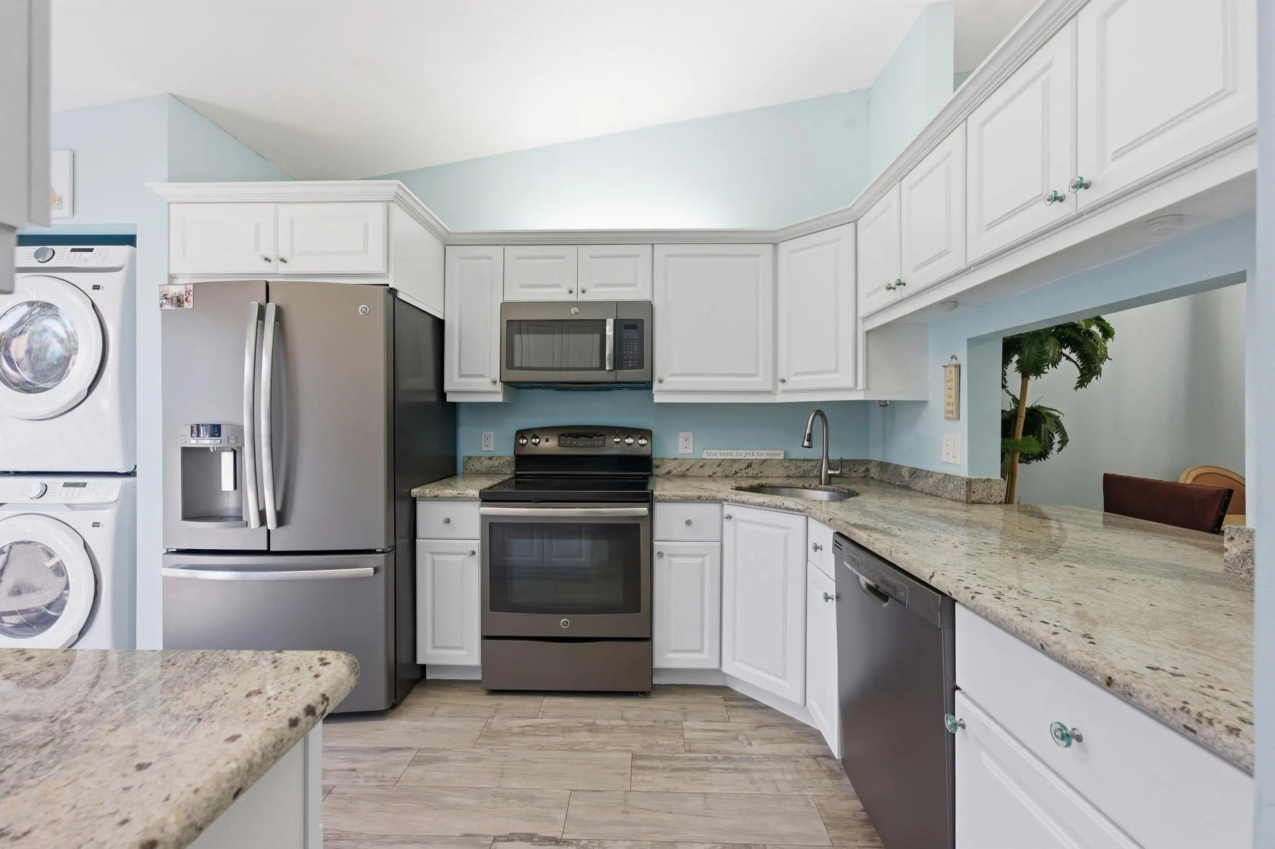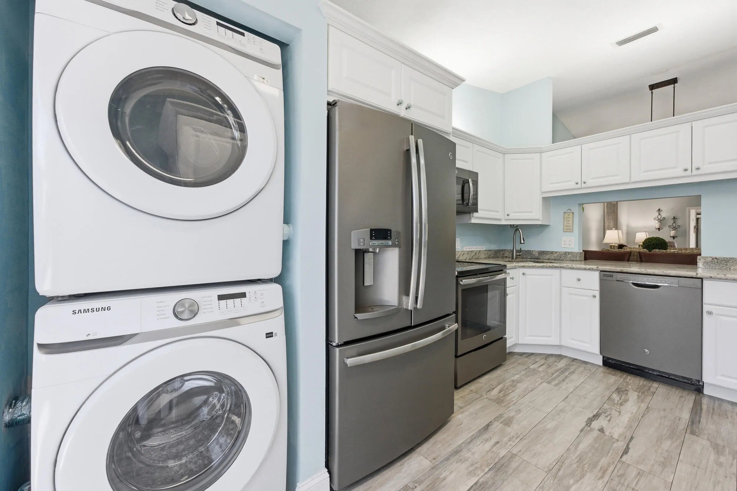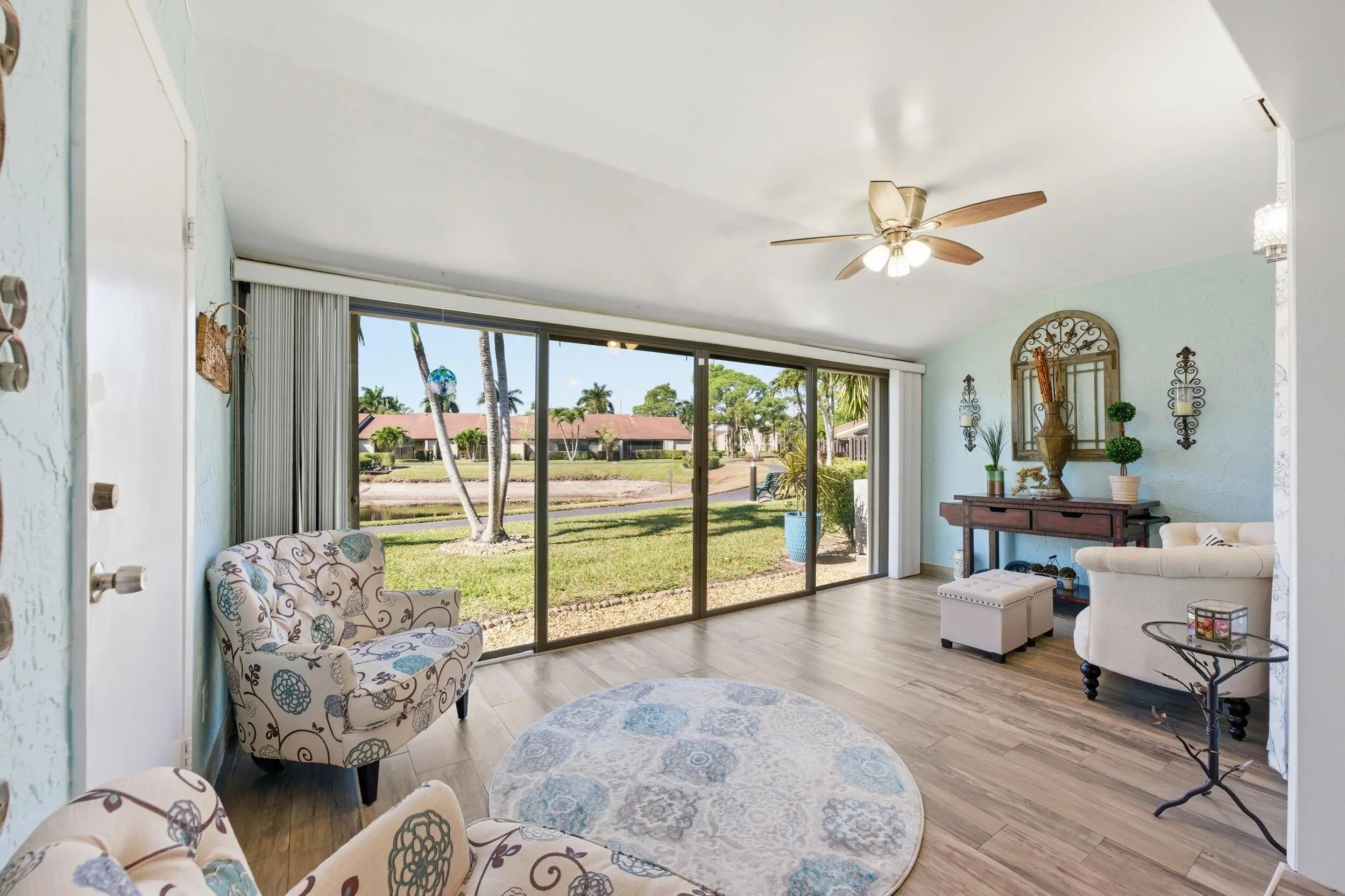 THIS HOME QUALIFIES FOR A $15K BUYER GRANT. Spacious lakefront corner villa that's truly move-in ready. 2 bedrooms, 2 baths, vaulted ceilings and abundant natural light with flowing wood-look porcelain tile throughout the living areas. The Florida room overlooks the water and large sliders make indoor outdoor living easy. Updated kitchen with granite counters, stainless appliances and brand new washer and dryer. A/C and hot water heater replaced in 2019. Primary suite offers a walk-in closet and private bath. Fenced courtyard, accordion shutters and assigned parking. Community pool, clubhouse and tennis. HOA covers insurance, roof and basic cable. All ages welcome in a peaceful setting,