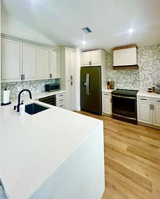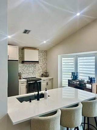 Welcome to your dream home in the secure, 24-hour manned gated community of River Bridge! This fully updated single-family residence features 3 bedrooms, 2 bathrooms, 2 car garage, all situated on a desirable corner lot. Big ticket upgrades include a 2017 roof, 2023 A/C, 2023 water heater and a rooftop SOLAR system for metering-low electric bills!! As you enter through the covered entryway, you're greeted by elevated ceilings, neutral fresh paint, recessed lighting, and luxury vinyl floors that enhance the open floor plan. The heart of this home is the remodeled kitchen boasting newer cabinets, quartz countertops with waterfall feature, stainless steel appliances, and a stylish hood.