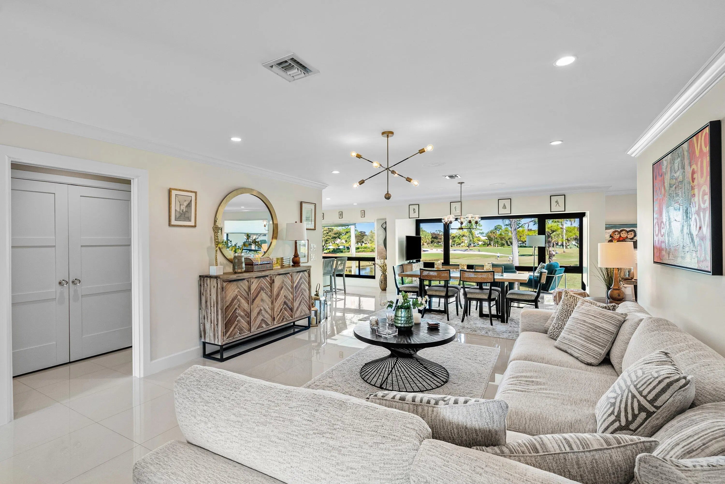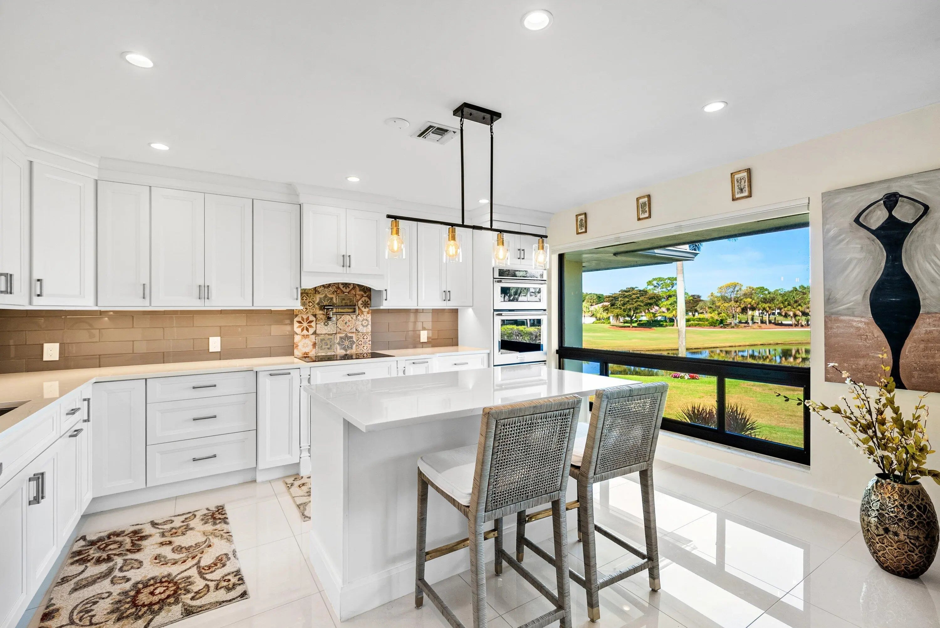 Beautifully reimagined 2-bedroom plus den residence, ideally positioned on the 2nd floor to capture sweeping lake & golf views of 17S located in the Bobwhite A area of Quail Ridge. This completely renovated home features tile flooring throughout & a bright, open-concept layout. The stunning kitchen has been relocated to the rear & serves as the heart of the home, showcasing a spacious center island, sleek finishes, and effortless flow into the living & dining areas. The rear-facing living spaces maximize the exceptional views. The expansive primary suite is a true retreat, offering a generous sitting area, dedicated office space, & an oversized walk-in closet. Impact glass throughout. Offered furnished for immediate enjoyment. Quail Ridge is a mandatory membership, private club community.