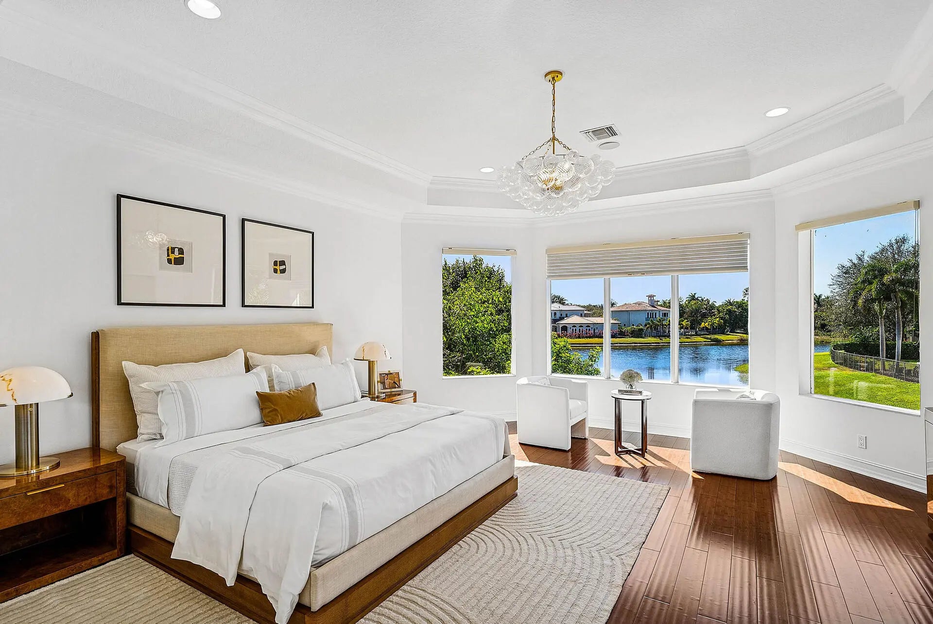 WELCOME HOME to this exceptional, newly reimagined estate in the coveted Oaks. A breathtaking lakefront setting frames the spectacular new backyard featuring porcelain pavers, lush turf, and a newly tiled pool creating a true private resort experience. With the signature touch of renowned designer Michael Gray, this residence is a sophisticated showpiece. Boasting 6 bedrooms, 5 full bathrooms, and 1 half bath, the home offers expansive, light filled interiors, impact windows throughout, and seamless indoor-outdoor living. An extraordinary opportunity to own a designer lakefront masterpiece in one of the area's most prestigious communities.The Oaks has award winning amenities such as tennis, a spa, gym, cafe and more!