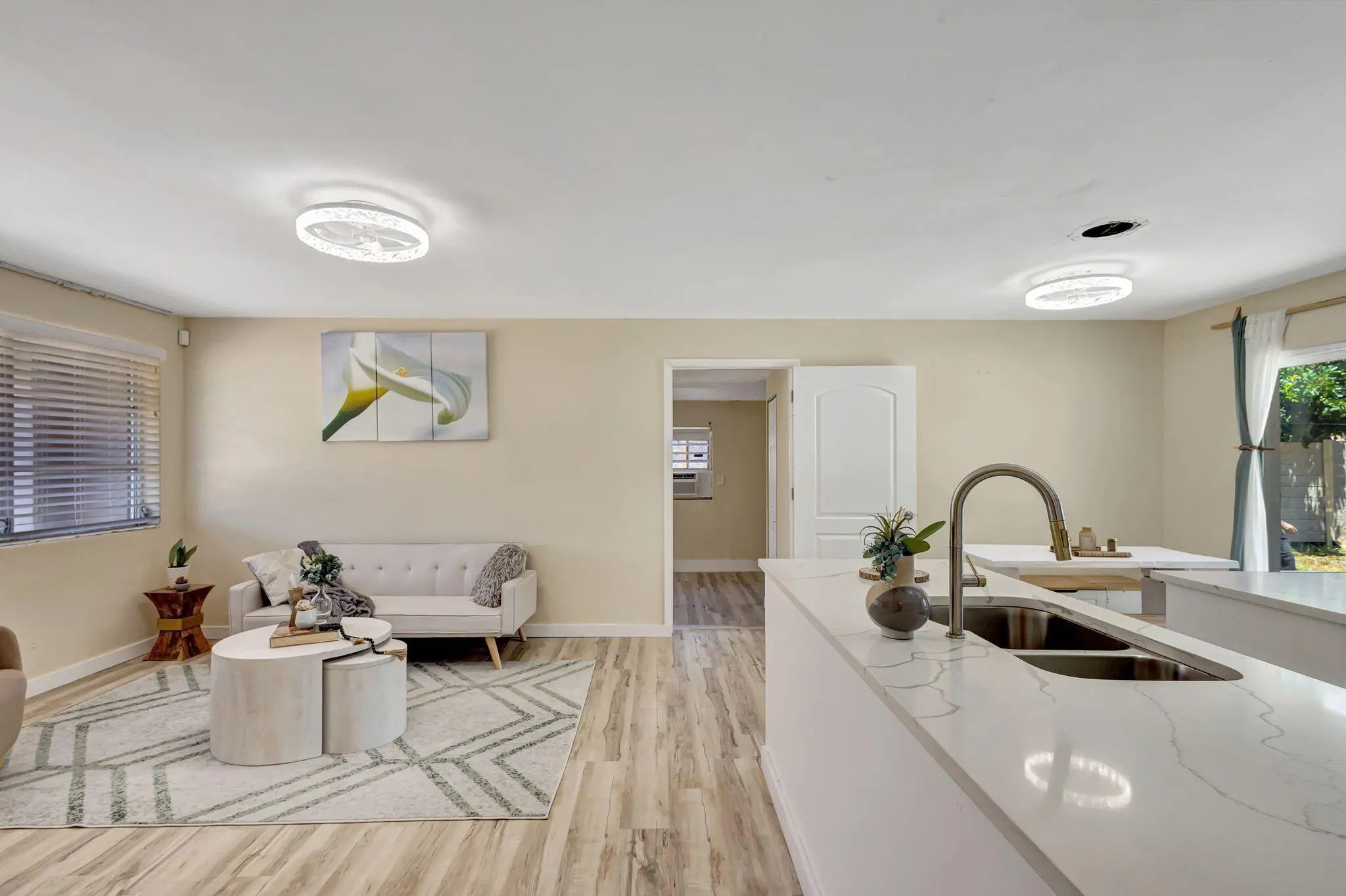 Welcome to this charming single-family home with 4 BR/2 BA. 1 huge room with an AC window unit can serve as another Master BR or an office. Newly Fully Updated Home located on a quiet street. Upon entering, you'll be greeted by a spacious central living room that opens to a split floor plan and a conveniently situated updated kitchen. With its enormous backyard, this home is perfect for those seeking a peaceful and comfortable Oasis Experience. Basketball area, updated design-inspired kitchen with island, stainless steel appliances, and microwave. Master bedroom with its own additional patio and seating area. Spa-inspired bathrooms. Full Laundry room with a Washer and Dryer.
