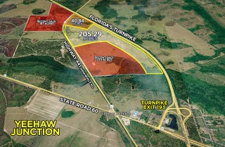 This expansive 40.84-acre property in Okeechobee is located at the Florida Turnpike/State Road 60 exit at Yeehaw Junction - only 30 minutes from Vero Beach and central to all major Florida markets. Currently zoned RMH residential with almost 6 acres of the property approved for commercial future land use. In addition to potential residential development, this property is in a prime location for various industrial and commercial uses such as distribution centers or mixed use. Features 1700 feet of frontage on the Turnpike with an income-generating billboard and 1700 feet of frontage on US 441/Kenansville Rd. Owned by the same family for over 50 years. The adjacent 205+ acre property is also available for purchase for a potential of 246+ acres combined.